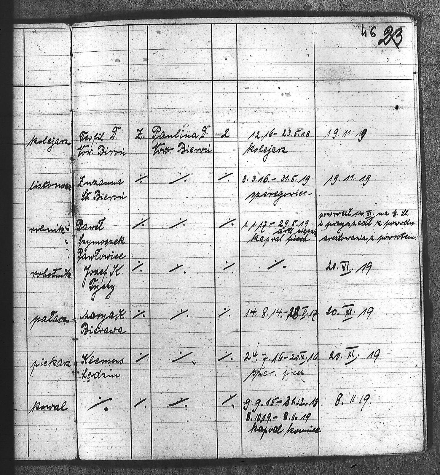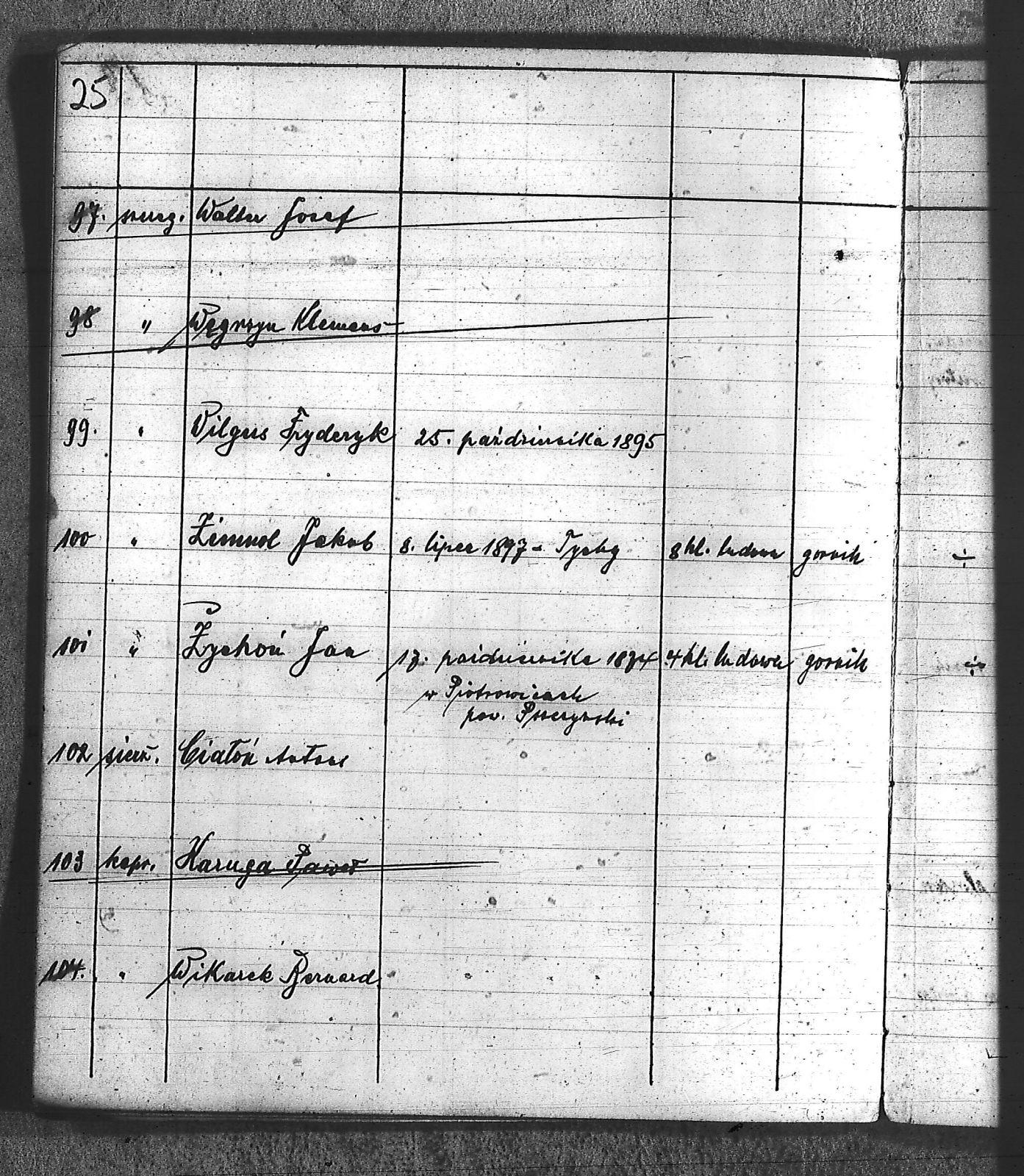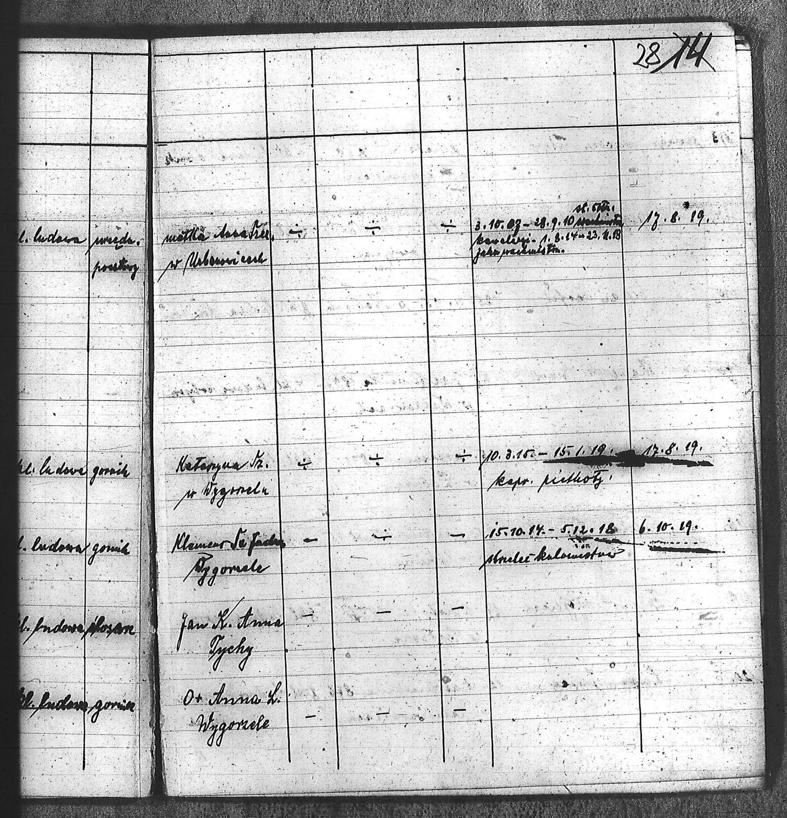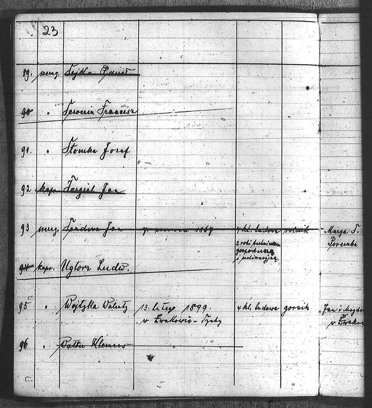 Bączyk, Józef; Bołdys, Teodor; Bończyk, Jan; Brandys, Jan; Buchalik, Franciszek; Carnynoga, Augustyn; Ciałoń, Antoni; Cimała, Augustyn; Cipa, Teofil; Czech, Franciszek; Czempas, Jan; Czernik, Alojzy; Czyba, Stefan; Drobik, Wilhelm; Drożdż, Igancy; Duka, Jan; Dziubany, Jan; Garncorz, Antoni; Giglok, Karol; Golda, Ludwik; Golda, Paweł; Gongor, Ludwik; Grajcarek, Adolf; Grzandziel, Adolf; Hachuła, Paweł; Horst, Paweł; Jakubowski, Stefan; Kapias, Franciszek; Karuga, Paweł; Kiełtyka, Teodor; Klisz, Aleksy; Kocurek, Walenty; Kołodziej, Wojciech; Kosman, Alfons; Kozyra, Klemens; Kret, Franciszek; Kret, Paweł; Krupa, Józef; Krzyżowski, Franciszek; Krzyżowski, Jan; Krzyżowski, Karol; Krzyżowski, Konrad; Krzyżyk, Karol; Kuc, Walenty; Kuchta, Andrzej; Kupiec, Robert; Latusek, Franciszek; Loska; Loska, Karol; Lubecki, Sylwester; Lysko, Paweł; Markiton, Jan; Martinus, Leopold; Mrozik, Maciej; Mucha, Wawrzyn; Mysior, Paweł; Nędza, Józef; Niesłańczy, Ludwik; Niezgoda, Franciszek; Nogły, Karol; Pala, Jakub; Pawełczyk, Jan; Piecha, Jan; Pierzak, Władysław; Pilszek, Jan; Piwałek, Franciszek; Prusek, Adam; Pustelnik, Jerzy; Pysz, Ludwik; Pyszka, Karol; Rózga, Józef; Ryt, Franciszek; Siekiera, Jan; Sitek, Jan; Skopczyk, Emil; Słomka, Józef; Staś, Teodor; Strüby, Fryderyk; Szafran, Jan; Szczygieł, Wiktor; Szczyrba, Tomasz; Szmajduch, Franciszek I; Szmajduch, Franciszek II; Ślosarczyk, Jan; Wencel, Franciszek; Wikarek, Bernard; Wilgus, Fryderyk; Wilk, Józef; Wojciech, Józef; Wojciech, Klemens; Wojtyka, Walenty; Wojtynek, Józef; Wrona, Mikołaj; Zajonc, Wojciech; Zimnol, Jakub; Zolich, Mateusz; Żmija, Józef; Żołna, Franciszek; Żurek, Jan; Żychon, Jan; |