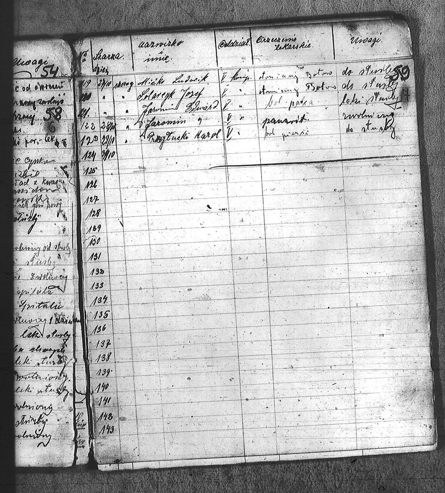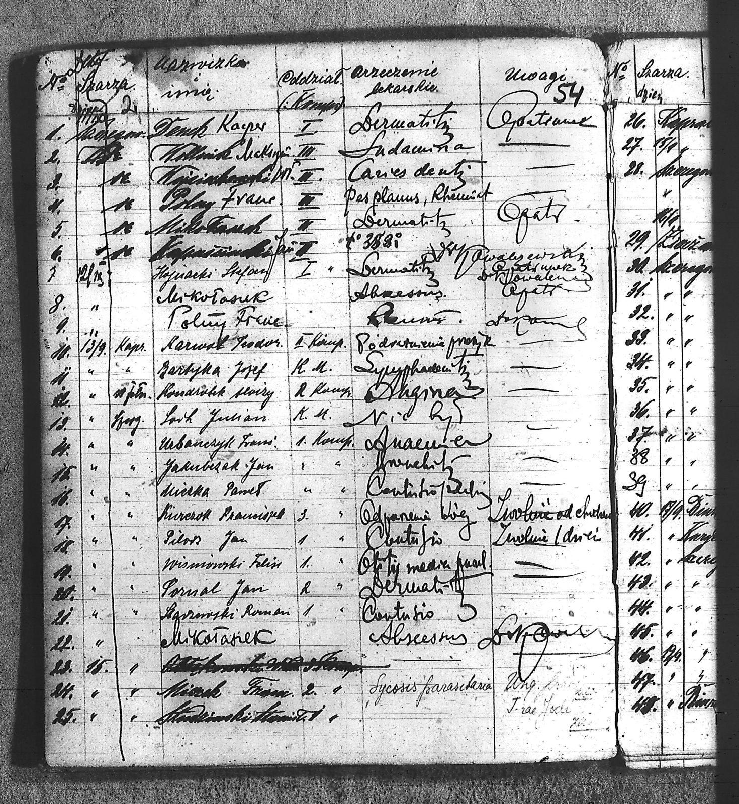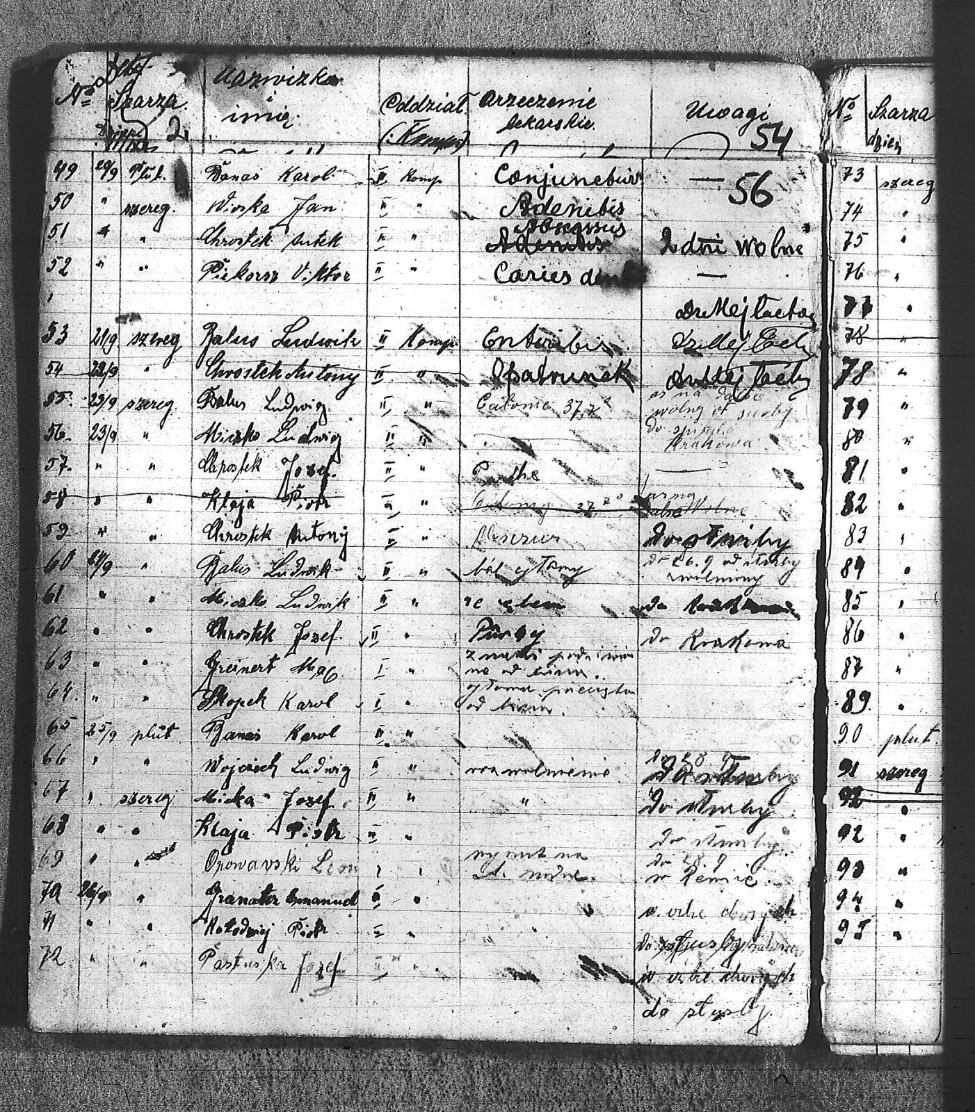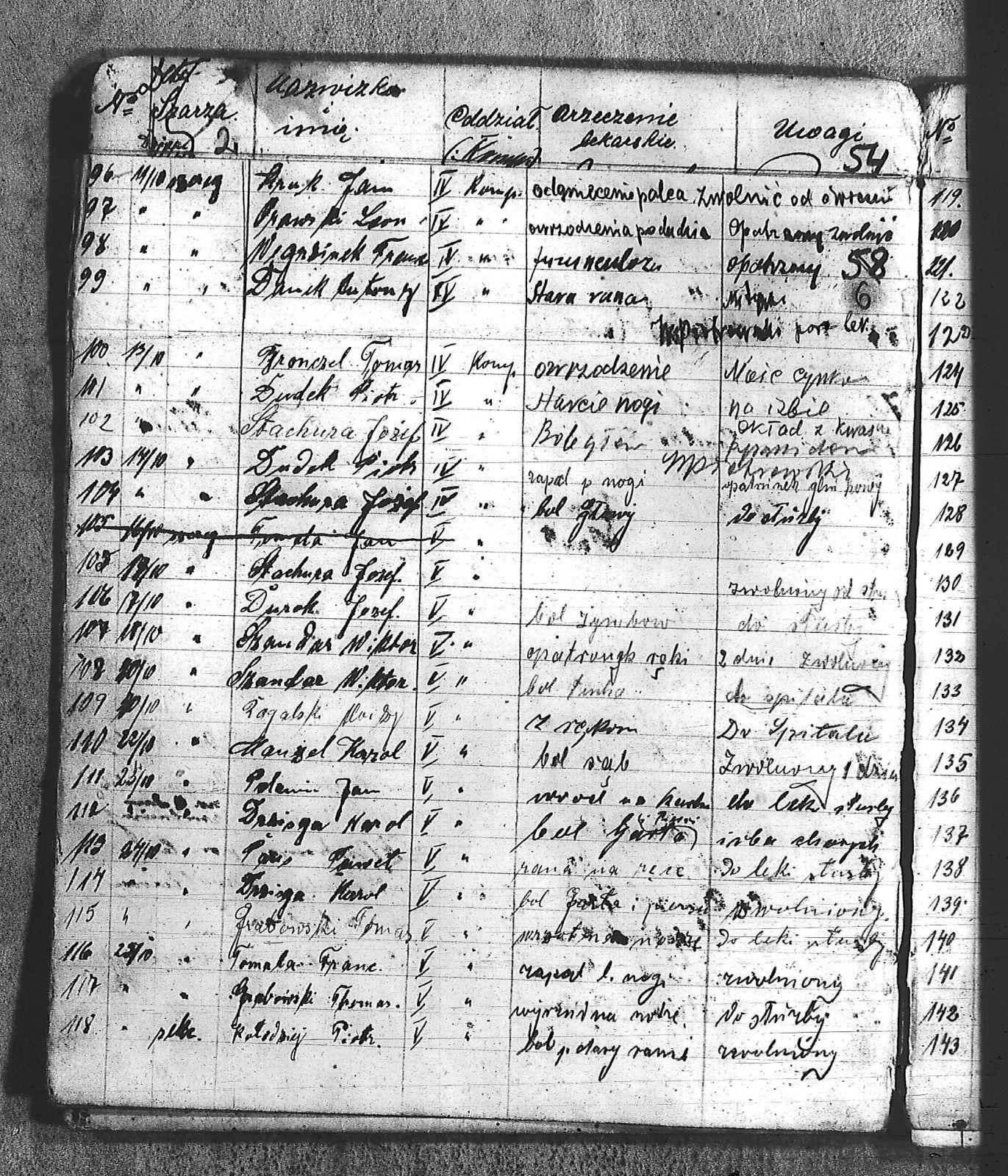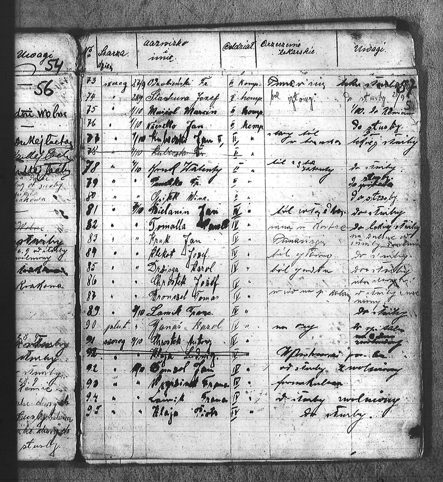 Balus, Ludwik; Banaś, Karol; Bartyka, Józef; Bąk, Edmund; Bielanin, Jan; Bronczel, Tomasz; Bronek, ; Cała, Mateusz III; Chrostek, Antoni; Chrostek, Józef; Danek, Antoni; Demk, Kacper; Długosz, Maksymilian; Domzol, Jan; Dronczel, Tomasz; Drzioga, Karol; Dudek, Piotr; Durek, Józef; Grabowski, Tomasz; Granater, Emanuel; Greinert, Maciej; Hercog, Józef; Hojnacki, Stefan; Jakubczak, Jan; Jaromin, Edward; Jeleń, Jan; Kapuściński, Jan; Karwol, Teodor; Kiczerok, Franciszek; Kisiński, Aleksander III; Klaja, Piotr; Klekot, Józef; Kołodziej, Piotr; Kondziołek, Alojzy; Konsek, Jan; Kruk, Jan; Kruk, Walenty; Kubeczko, Jan II; Lamik, Franciszek; Leśnik, Florian; Łaciński, Paweł III; Manżel, Karol; Marek, Jan; Miæko, Ludwik; Micka, Józef; Miczek, Franciszek; Miczek, Jan; Miczka, Paweł; Miczko, Ludwik; Mikołaszek; Mikołaszek, Jan; Miłek, Jan; Musioł, Marcin; Niesyto, Jan; Odarbieński, Feliks; Opitek, Wincenty; Orawski, Leon; Panetko; Pastuszko, Józef; Piekorsz, Wiktor; Piekorz, Wiktor; Pilorz, Jan; Polemin, Jan; Polny, Franciszek; Przyłucki, Karol; Rogalski, Alojzy; Skopek, Karol; Skowron, Wojciech; Solarczyk, Józef; Sorh, Julian; Stachura, Józef; Starzewski, Roman; Studzimski, Stanisław; Szander, Wiktor; Tomal, Jan; Tomala, Franciszek; Tomala, Paweł; Urbańczyk, Franciszek; Wacławski, Bolesław; Węgrzinek, Franciszek; Wioska, Jan; Wiśniowski, Feliks; Wiśniowski, Jan; Witnik, Maksymilian; Wojciech, Ludwig; Wojciechowski, Władysław; Woźniak, Marian I; |