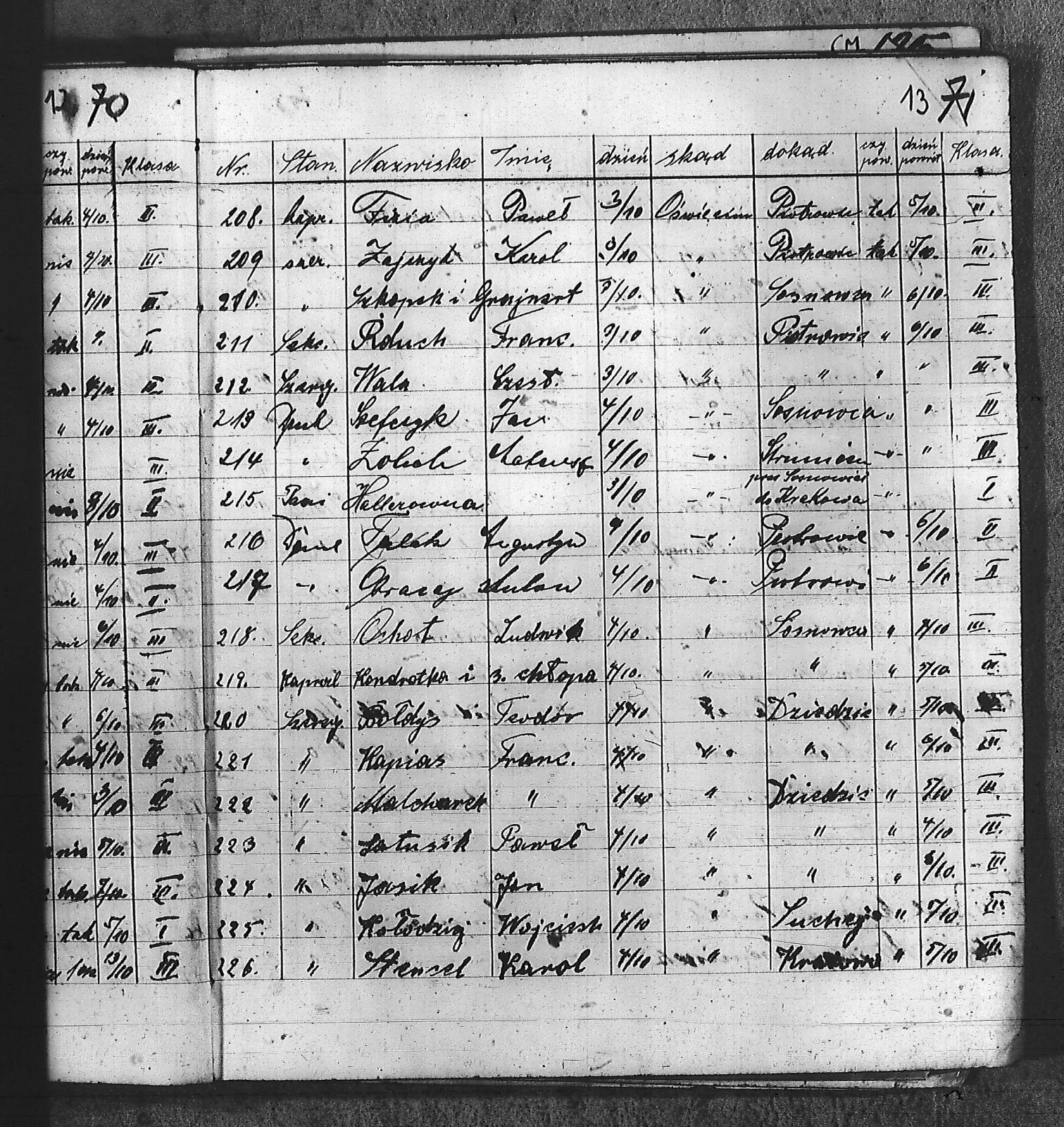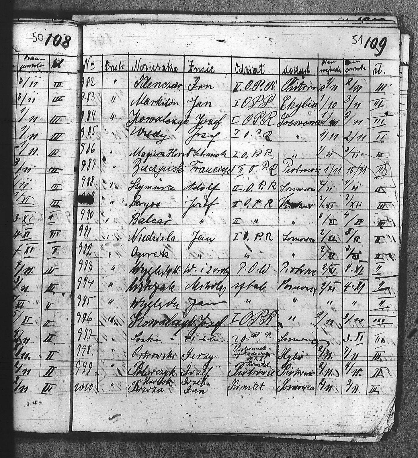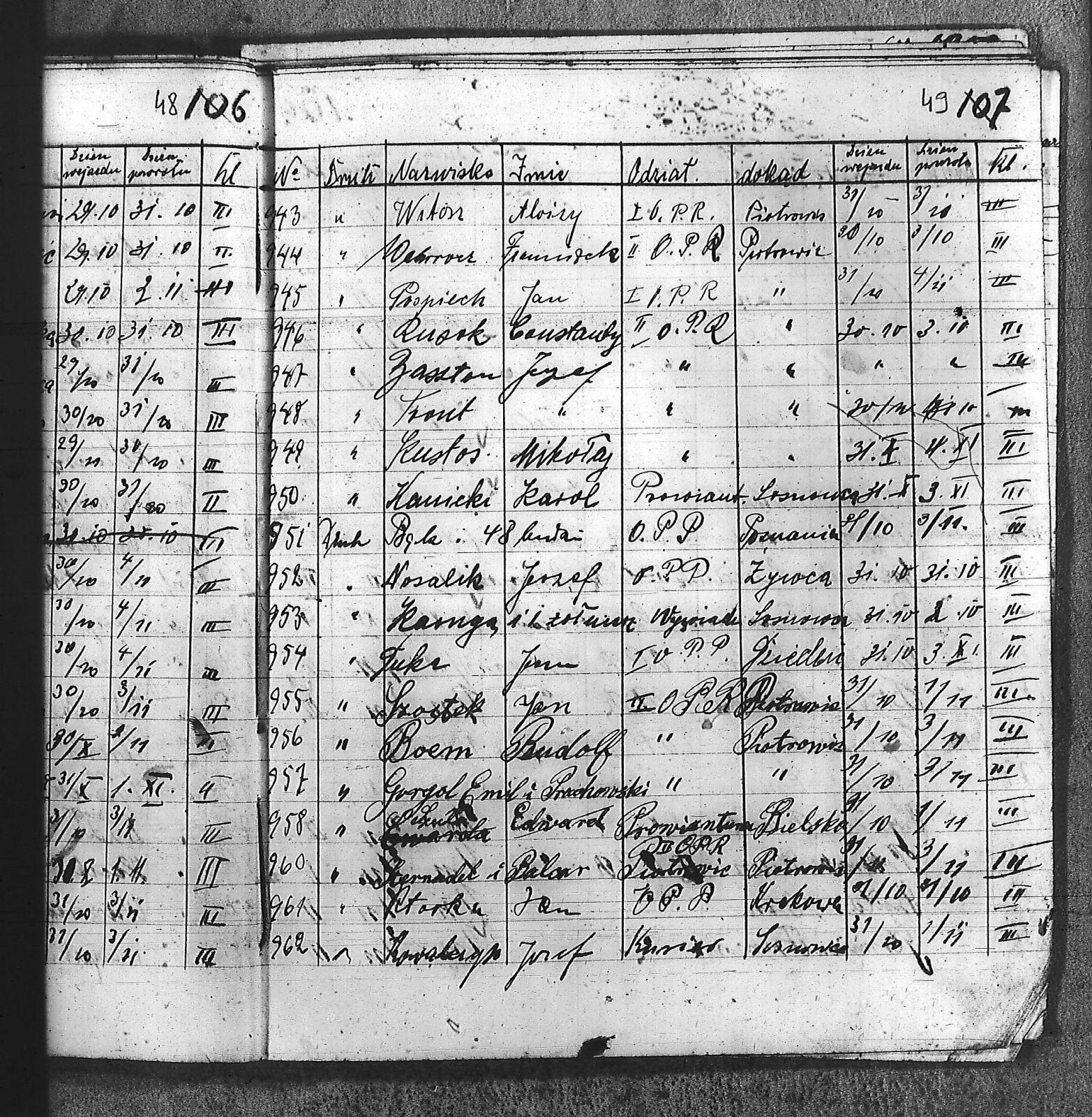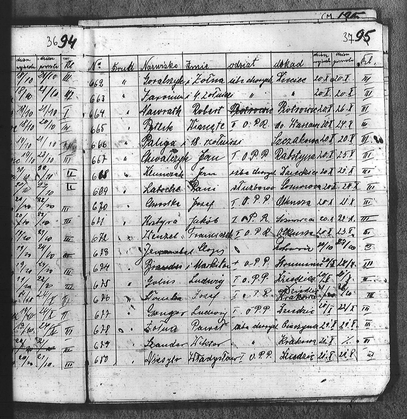 [nieczytelne], Andrzej; [nieczytelne], Józef; [nieczytelne], Ludwik; [nieczytelne], Martha; [nieczytelne], Stefan; [nieczytelnie], Alojzy; Adamczyk, Robert; Adamczyk, Zygfryd; Adamek, Klemens; Adamicki, Ludwig; Anas; Anas, Karol; Anderski, Karol; Andrzejewski; Anończyk, Aleksander; Antonczyk, Aleksander; Aturtowski; Babisek; Babisz; Babisz, Eugeniusz; Balcar; Balcar, Augustyn; Balcar, Józef; Balus, Jan; Bałecki, Józef; Banaś, Karol; Banerek; Banicki; Banisz, Jan; Banko, Józef; Baran; Barnabas, Franc.; Barnabas, Franciszek; Baron; Baron, Konrad; Basista; Basista, Jan; Basista, Maks; Basista, Paweł; Baszton, Józef; Batels; Bauerek; Bąk; Bąk, Emanuel; Belka, Wilem; Benedikt; Białecki, Józef; Biandes; Biela, Grzogorz; Biela, Teofil; Bielaczek; Bielaczek, Augustyn; Bielankówna, ; Bielas; Bienia; Bienia, Ignacy; Biermot, Franciszek; Biernat, Franc.; Biernot, Franc.; Binoszek, Mateusz; Birda, Theodor; Blacha; Blacha, Emanuel; Blałecki; Bluszcz; Bluszcz, Karol; Boak, Edmund; Bochynek, Alojzy; Bochynek, Walenty; Boczoń, Jan; Bodzinski, Adam; Bogalski, Edward; Bok, Paweł; Bokraba, Józef; Bołdys; Bołdys, Teodor; Borak, Karol; Borkowski; Borkowski, Edward; Bornisz; Bozowski; Brachamski; Brachmański; Brandes, Ludwik; Brandys; Brandys, Franciszek; Brandys, Ludwik; Brayer, Edward; Bromboszcz; Bromboszcz, Wincenty; Brzoza; Brzoza, Franc.; Brzoza, Franciszek; Brzoza, Jan; Brzozowski, Michał; Bśm, Rudolf; Buba, Jan; Buchalik; Buchta, Jakub; Buczeński; Buczeński, Franciszek; Buczęski, Rudolf; Buczkowny, Tomasz; Buczyński; Buczyński, Franciszek; Budzalik, Franciszek; Bugla, Jan; Bugla, Konstantyn; Bukaczek, Ludwik; Buła; Buła, Jan; Buła, Janusz; Buterek, Jan; Bytomski, Paweł; Canibol, Jan; Caniboł, Jan; Chłódek, Józef; Choławski, Tadeusz; Chrobok; Chrobok, Rudolf; Chrobok, Wilhelm; Chrocz, Józef; Chrocz, Wilem; Chrostek; Chrostka, Józef; Chroszcz, Wilhelm; Chroszcz, Wilhlem; Chroztek, Józef; Chwalczyk, Jan; Chybiński; Ciciński, Marian; Cienciała, Franc.; Cieńciała, Franciszek; Cieślik; Cieślik, Józef; Cofałka, Karol; Comiboł; Copalla, Franciszek; Cygan; Cysarek; Cysarek, Józef; Czaja, Wiktor; Czajka, Robert; Czaplewski; Czaplewski, Jan; Czarnecki, Wincenty; Czarnota, Piotr; Czarnynoga, Paweł; Czech; Czech, Emil; Czech, Józef; Czynecki, Walenty; Czysz, Franciszek; Czyż, Franciszek; Danek, Antoni; Daniecki; Danocki, Stanisław; De MehleN; Depta; Depta, Wincenty; Dębiński; Dilecki, Lucjan; Dinda, Stanisław; Dłubis, Franc.; Dłubis, Franciszek; Dobrzeński, Roman; Drodz, Ignacy; Drosdz, Ignacy; Drozda, Ignacy; Dróżdż; Drzewicki, Antoni; Drzyzga; Dubisz, Bolesław; Dubisz, Robert; Duda, Franciszek; Duda, Jan; Duda, Paweł; Dudek; Duka, Jan; Dymek; Dziczonowski; Dzider, Jan; Dzieda, Jan; Dziewok; Dzieżotrywski, Stanisław; Dzirkowski; Dziurosz, Antoni; Dziżka; Faber, Józef; Felman, Stefan; Ferenc; Ferenc, Franciszek; Filipek, Marian; Firot, Józef; Firut, Józef; Firuth, Józef; Fizia; Fizia, Aleksy; Fizia, Paweł; Foja, Emanuel; Fojcik; Fonin; Fridryk, Wincenty; Friedrich, Jan; Friedrych, ; Frohlich, Alojzy; Frotorz, Bronisław; Frydrych, Ignacy; Fuchng, Albin; Fulkowa, Zuzana; Fułyk; Furmanek, Michał; Furut, Józef; Gabor, Alojzy; Gaidar, Emil; Gaidas; Gajowy; Gajowy, Piotr; Gakan, Jan; Gałka, Jan; Gamich, Jan; Gamok, Jan; Ganel, Jan; Gangor, Ludwik; Garbas; Garbocz ; Garbocz, Fryderyk; Garbon, Alojzy; Garborz, Fryderyk; Garbosz, Franciszek; Garbosz, Fryderyk; Gasz, Adolf; Gauka, Henryk; Gaurok, Jan; Gawełczyk, Ludwik; Gawęda, Adolf; Gawęda, Paweł; Gawiek, Jan; Gawliczek, Jan; Gezrenta, Paweł; Glandan, Marian; Glenc; Glenc, Karol; Glenz, Karol; Gliwa, Józef; Głombina, ; Głombion, Franciszek; Głyk; Godek, Stanisław; Gojowy ; Gojowy, Teodor; Golędzinowski; Golug, Robert; Golus ; Golus, Ludwik; Gołembicki, Adam; Gomich ; Gorgal, Emil; Gorzawski; Gorzawski, August; Góralczyk; Góralczyk, Florian; Góralczyk, Franciszek; Górski; Górski, Janusz; Graborz, Jan; Graicarek, Adolf; Grajcarek, Adolf; Grajner, Emil; Grajnert; Gralak, Ludwik; Gralczyk, Florian; Gredmik; Grimm, Józef; Grobelny; Grobelny, Alojzy; Grobicki, Wacław; Grodnicki, Wacław; Grodon, Karol; Grumann; Gryblas, Czesław; Grychtoł, Herman; Grycmans, Marcinus; Grydlolik, Wincenty; Grym, Józef; Gryń, Józef; Grzesiok; Grzyb, Ludwik; Gul, Konrad; Gut, Karol; Gwóźdź; Hachuła; Hallerowa; Hallerowna; Hallerówna; Hałdys, Józef; Haman; Hamercok, Józef; Hanacz, Wilem; Hanak, Igancy; Hanurka, Franciszek; Haśnik, Leopold; Heblik; Heblik, Augustyn; Helmann, Jan; Hercog; Hercog, Andrzej; Hercog, Jan; Herman; Herman, Alojzy; Herman, Henryk; Herman, Ignacy; Hermann, Henryk; Herok, Antoni; Hilla, Walenty; Hocek, Ludwik; Hollek; Hoła; Hoła, Alojzy; Hoła, Franciszek; Horst; Hosde, Jan; Hotowko, Tadeusz; Howanies; Hranek; Hrazin, Jan; Hrobok, Józef; Hroscha, Wilim; Ikra, Maksymilian; Iksal, Maksymilian; Imielnicki; Iwanicki; Iwanicki, Franciszk; Jabor; Jabor, Alojzy; Jakubowski, Antoni; Jakubowski, Jędrzej; Jakubowski, Stefan; Janczyk, Hektor; Janeta, Franciszek; Jankrzyk; Janota, Franciszek; Jansz, Wiktor; Jarczyk, Franciszek; Jarczyński, Stefan; Jarczys, Franciszek; Jarkulski, Karol; Jaromin; Jaromin, Oton; Jarząbek; Jarząbek, Alojzy; Jarzombek, Alojzy; Jarzumtycki; Jarzyna; Jasik, Jan; Jasinta; Jasista, Alojzy; Jaworski, Wacław; Jaworski, Wiktor; Jendrzejczyk, Antoni; Jenszmyk; Jerkulski; Jerzembek; Joreminek, Piotr; Jorgen, Mateusz; Jukosz, Władysław; Julek, Augustyn; Juraszczyk, Jerzy; Jureczko, Karol; Jureczko, Wilem; Jureczko, Wilem, Marian; Jurkukowski; Jurzima; Kaczmarczyk; Kaczmarek, Stanisław; Kaczor, Wiktor; Kagioński, Stefan; Kaina, Alfred; Kaintroh; Kalemba, Henryk; Kalinowski; Kalinowski, Jan; Kama, Alfred; Kama, Alojzy; Kampik, Konstanty; Kamyk; Kanc, Alojzy; Kania, Alojzy; Kanicki, Karol; Kaniecki, Karol; Kanik; Kanniszala; Kapias; Kapias, Franc.; Kapias, Franciszek; Kapras; Kapuścicki, Józef; Karasel; Karasicki; Karciniarczyk, Józef; Karemarczyk, 