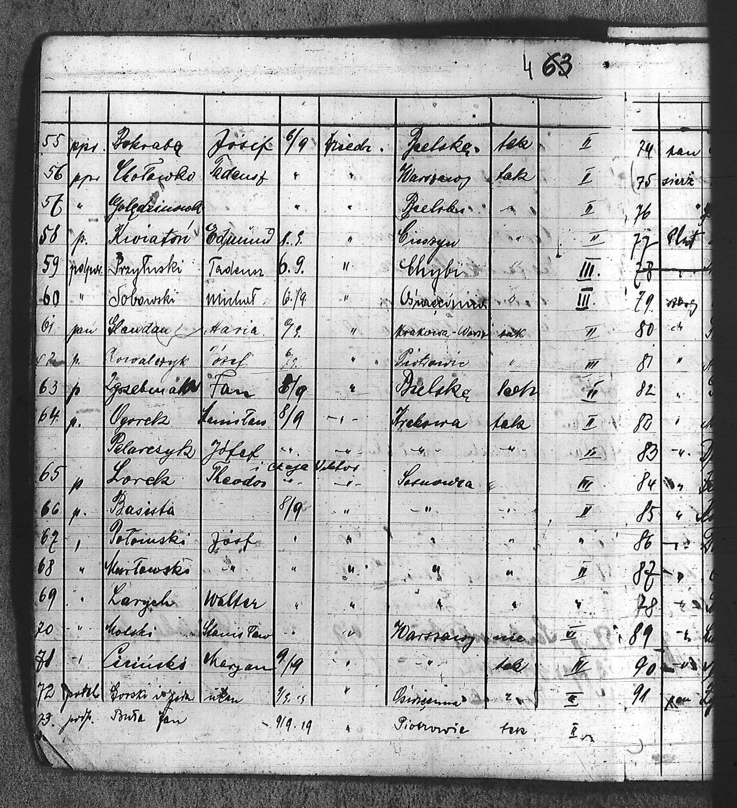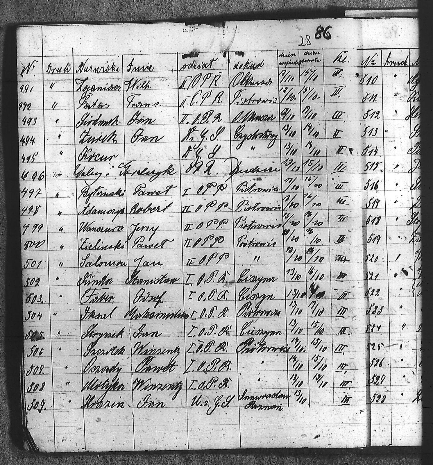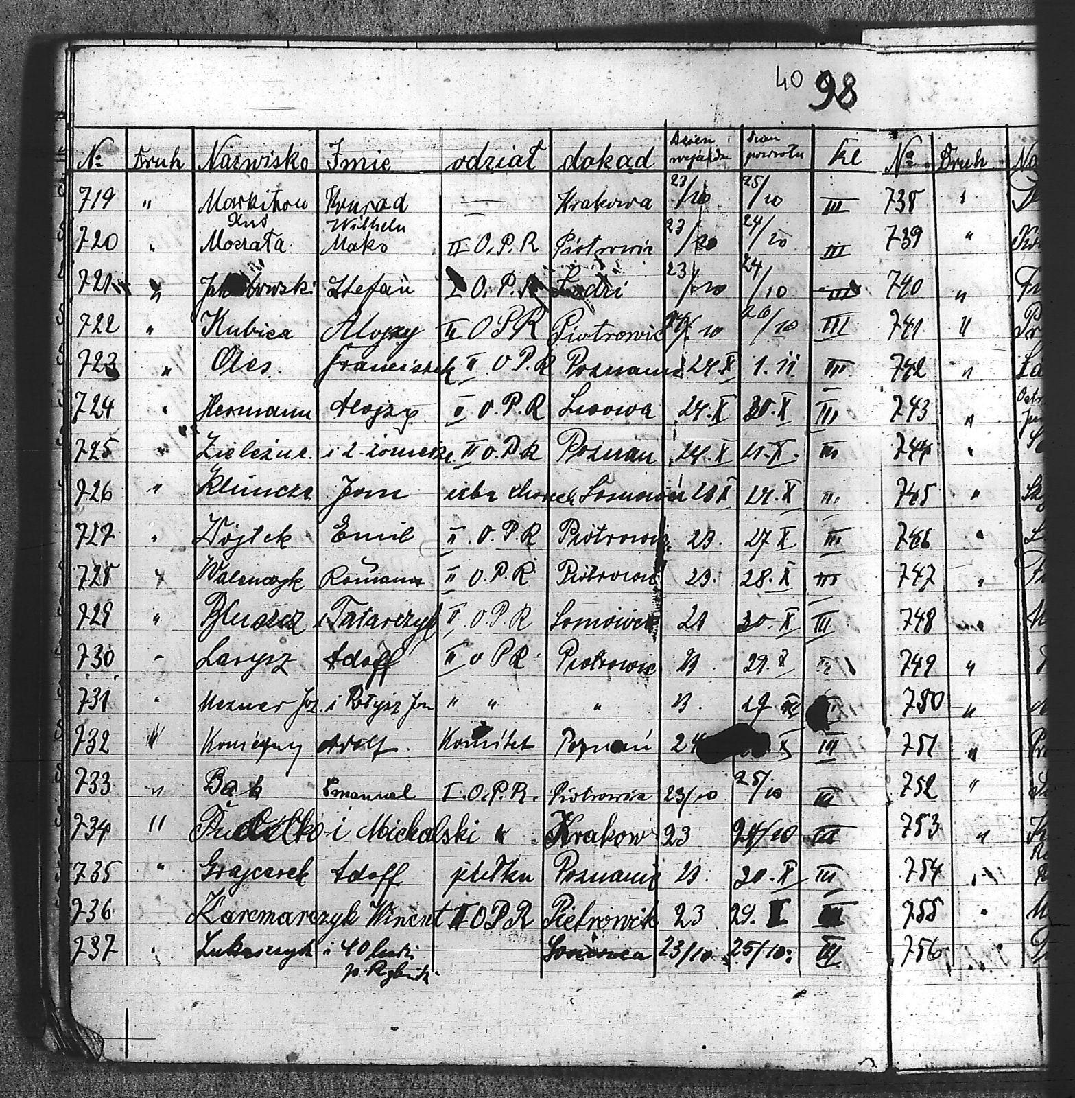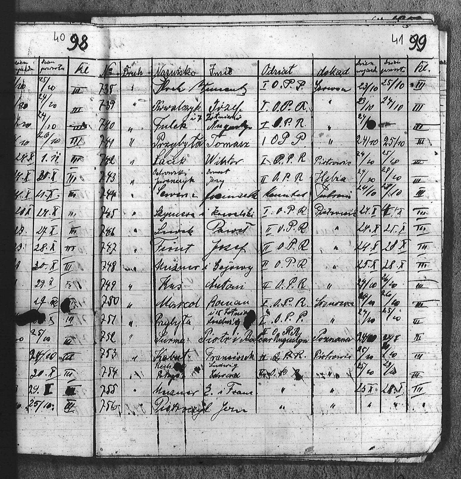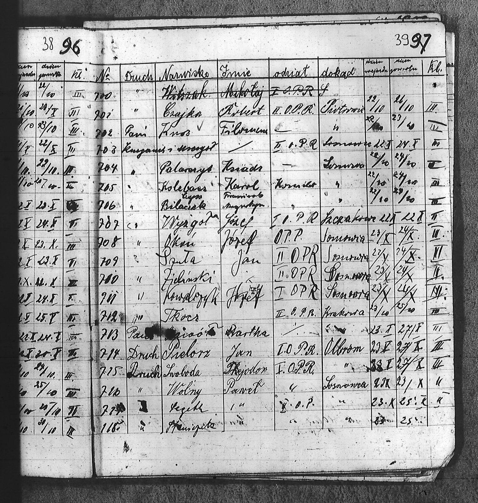 [nieczytelne], Andrzej; [nieczytelne], Józef; [nieczytelne], Ludwik; [nieczytelne], Martha; [nieczytelne], Stefan; [nieczytelnie], Alojzy; Adamczyk, Robert; Adamczyk, Zygfryd; Adamek, Klemens; Adamicki, Ludwig; Anas; Anas, Karol; Anderski, Karol; Andrzejewski; Anończyk, Aleksander; Antonczyk, Aleksander; Aturtowski; Babisek; Babisz; Babisz, Eugeniusz; Balcar; Balcar, Augustyn; Balcar, Józef; Balus, Jan; Bałecki, Józef; Banaś, Karol; Banerek; Banicki; Banisz, Jan; Banko, Józef; Baran; Barnabas, Franc.; Barnabas, Franciszek; Baron; Baron, Konrad; Basista; Basista, Jan; Basista, Maks; Basista, Paweł; Baszton, Józef; Batels; Bauerek; Bąk; Bąk, Emanuel; Belka, Wilem; Benedikt; Białecki, Józef; Biandes; Biela, Grzogorz; Biela, Teofil; Bielaczek; Bielaczek, Augustyn; Bielankówna, ; Bielas; Bienia; Bienia, Ignacy; Biermot, Franciszek; Biernat, Franc.; Biernot, Franc.; Binoszek, Mateusz; Birda, Theodor; Blacha; Blacha, Emanuel; Blałecki; Bluszcz; Bluszcz, Karol; Boak, Edmund; Bochynek, Alojzy; Bochynek, Walenty; Boczoń, Jan; Bodzinski, Adam; Bogalski, Edward; Bok, Paweł; Bokraba, Józef; Bołdys; Bołdys, Teodor; Borak, Karol; Borkowski; Borkowski, Edward; Bornisz; Bozowski; Brachamski; Brachmański; Brandes, Ludwik; Brandys; Brandys, Franciszek; Brandys, Ludwik; Brayer, Edward; Bromboszcz; Bromboszcz, Wincenty; Brzoza; Brzoza, Franc.; Brzoza, Franciszek; Brzoza, Jan; Brzozowski, Michał; Bśm, Rudolf; Buba, Jan; Buchalik; Buchta, Jakub; Buczeński; Buczeński, Franciszek; Buczęski, Rudolf; Buczkowny, Tomasz; Buczyński; Buczyński, Franciszek; Budzalik, Franciszek; Bugla, Jan; Bugla, Konstantyn; Bukaczek, Ludwik; Buła; Buła, Jan; Buła, Janusz; Buterek, Jan; Bytomski, Paweł; Canibol, Jan; Caniboł, Jan; Chłódek, Józef; Choławski, Tadeusz; Chrobok; Chrobok, Rudolf; Chrobok, Wilhelm; Chrocz, Józef; Chrocz, Wilem; Chrostek; Chrostka, Józef; Chroszcz, Wilhelm; Chroszcz, Wilhlem; Chroztek, Józef; Chwalczyk, Jan; Chybiński; Ciciński, Marian; Cienciała, Franc.; Cieńciała, Franciszek; Cieślik; Cieślik, Józef; Cofałka, Karol; Comiboł; Copalla, Franciszek; Cygan; Cysarek; Cysarek, Józef; Czaja, Wiktor; Czajka, Robert; Czaplewski; Czaplewski, Jan; Czarnecki, Wincenty; Czarnota, Piotr; Czarnynoga, Paweł; Czech; Czech, Emil; Czech, Józef; Czynecki, Walenty; Czysz, Franciszek; Czyż, Franciszek; Danek, Antoni; Daniecki; Danocki, Stanisław; De MehleN; Depta; Depta, Wincenty; Dębiński; Dilecki, Lucjan; Dinda, Stanisław; Dłubis, Franc.; Dłubis, Franciszek; Dobrzeński, Roman; Drodz, Ignacy; Drosdz, Ignacy; Drozda, Ignacy; Dróżdż; Drzewicki, Antoni; Drzyzga; Dubisz, Bolesław; Dubisz, Robert; Duda, Franciszek; Duda, Jan; Duda, Paweł; Dudek; Duka, Jan; Dymek; Dziczonowski; Dzider, Jan; Dzieda, Jan; Dziewok; Dzieżotrywski, Stanisław; Dzirkowski; Dziurosz, Antoni; Dziżka; Faber, Józef; Felman, Stefan; Ferenc; Ferenc, Franciszek; Filipek, Marian; Firot, Józef; Firut, Józef; Firuth, Józef; Fizia; Fizia, Aleksy; Fizia, Paweł; Foja, Emanuel; Fojcik; Fonin; Fridryk, Wincenty; Friedrich, Jan; Friedrych, ; Frohlich, Alojzy; Frotorz, Bronisław; Frydrych, Ignacy; Fuchng, Albin; Fulkowa, Zuzana; Fułyk; Furmanek, Michał; Furut, Józef; Gabor, Alojzy; Gaidar, Emil; Gaidas; Gajowy; Gajowy, Piotr; Gakan, Jan; Gałka, Jan; Gamich, Jan; Gamok, Jan; Ganel, Jan; Gangor, Ludwik; Garbas; Garbocz ; Garbocz, Fryderyk; Garbon, Alojzy; Garborz, Fryderyk; Garbosz, Franciszek; Garbosz, Fryderyk; Gasz, Adolf; Gauka, Henryk; Gaurok, Jan; Gawełczyk, Ludwik; Gawęda, Adolf; Gawęda, Paweł; Gawiek, Jan; Gawliczek, Jan; Gezrenta, Paweł; Glandan, Marian; Glenc; Glenc, Karol; Glenz, Karol; Gliwa, Józef; Głombina, ; Głombion, Franciszek; Głyk; Godek, Stanisław; Gojowy ; Gojowy, Teodor; Golędzinowski; Golug, Robert; Golus ; Golus, Ludwik; Gołembicki, Adam; Gomich ; Gorgal, Emil; Gorzawski; Gorzawski, August; Góralczyk; Góralczyk, Florian; Góralczyk, Franciszek; Górski; Górski, Janusz; Graborz, Jan; Graicarek, Adolf; Grajcarek, Adolf; Grajner, Emil; Grajnert; Gralak, Ludwik; Gralczyk, Florian; Gredmik; Grimm, Józef; Grobelny; Grobelny, Alojzy; Grobicki, Wacław; Grodnicki, Wacław; Grodon, Karol; Grumann; Gryblas, Czesław; Grychtoł, Herman; Grycmans, Marcinus; Grydlolik, Wincenty; Grym, Józef; Gryń, Józef; Grzesiok; Grzyb, Ludwik; Gul, Konrad; Gut, Karol; Gwóźdź; Hachuła; Hallerowa; Hallerowna; Hallerówna; Hałdys, Józef; Haman; Hamercok, Józef; Hanacz, Wilem; Hanak, Igancy; Hanurka, Franciszek; Haśnik, Leopold; Heblik; Heblik, Augustyn; Helmann, Jan; Hercog; Hercog, Andrzej; Hercog, Jan; Herman; Herman, Alojzy; Herman, Henryk; Herman, Ignacy; Hermann, Henryk; Herok, Antoni; Hilla, Walenty; Hocek, Ludwik; Hollek; Hoła; Hoła, Alojzy; Hoła, Franciszek; Horst; Hosde, Jan; Hotowko, Tadeusz; Howanies; Hranek; Hrazin, Jan; Hrobok, Józef; Hroscha, Wilim; Ikra, Maksymilian; Iksal, Maksymilian; Imielnicki; Iwanicki; Iwanicki, Franciszk; Jabor; Jabor, Alojzy; Jakubowski, Antoni; Jakubowski, Jędrzej; Jakubowski, Stefan; Janczyk, Hektor; Janeta, Franciszek; Jankrzyk; Janota, Franciszek; Jansz, Wiktor; Jarczyk, Franciszek; Jarczyński, Stefan; Jarczys, Franciszek; Jarkulski, Karol; Jaromin; Jaromin, Oton; Jarząbek; Jarząbek, Alojzy; Jarzombek, Alojzy; Jarzumtycki; Jarzyna; Jasik, Jan; Jasinta; Jasista, Alojzy; Jaworski, Wacław; Jaworski, Wiktor; Jendrzejczyk, Antoni; Jenszmyk; Jerkulski; Jerzembek; Joreminek, Piotr; Jorgen, Mateusz; Jukosz, Władysław; Julek, Augustyn; Juraszczyk, Jerzy; Jureczko, Karol; Jureczko, Wilem; Jureczko, Wilem, Marian; Jurkukowski; Jurzima; Kaczmarczyk; Kaczmarek, Stanisław; Kaczor, Wiktor; Kagioński, Stefan; Kaina, Alfred; Kaintroh; Kalemba, Henryk; Kalinowski; Kalinowski, Jan; Kama, Alfred; Kama, Alojzy; Kampik, Konstanty; Kamyk; Kanc, Alojzy; Kania, Alojzy; Kanicki, Karol; Kaniecki, Karol; Kanik; Kanniszala; Kapias; Kapias, Franc.; Kapias, Franciszek; Kapras; Kapuścicki, Józef; Karasel; Karasicki; Karciniarczyk, Józef; Karemarczyk, 