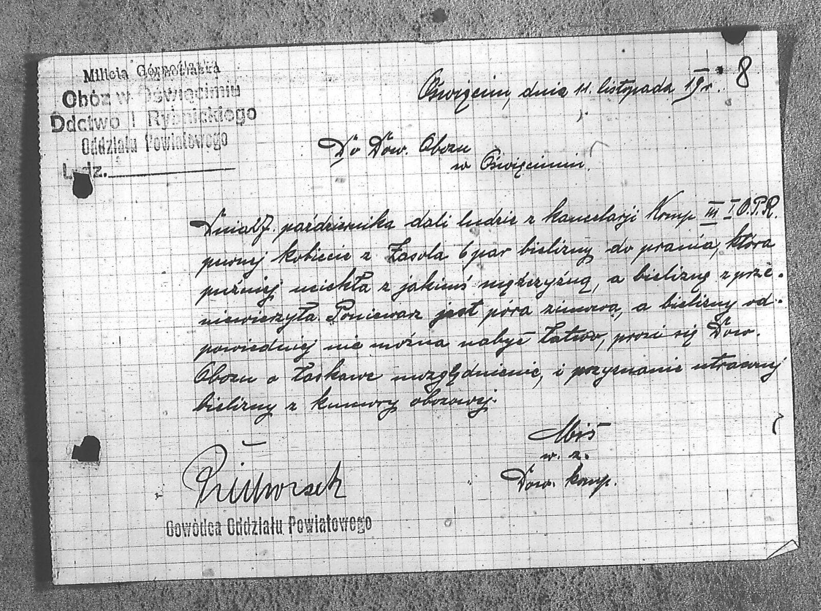 Tytuł Do dowództwa obozu Oświęcim