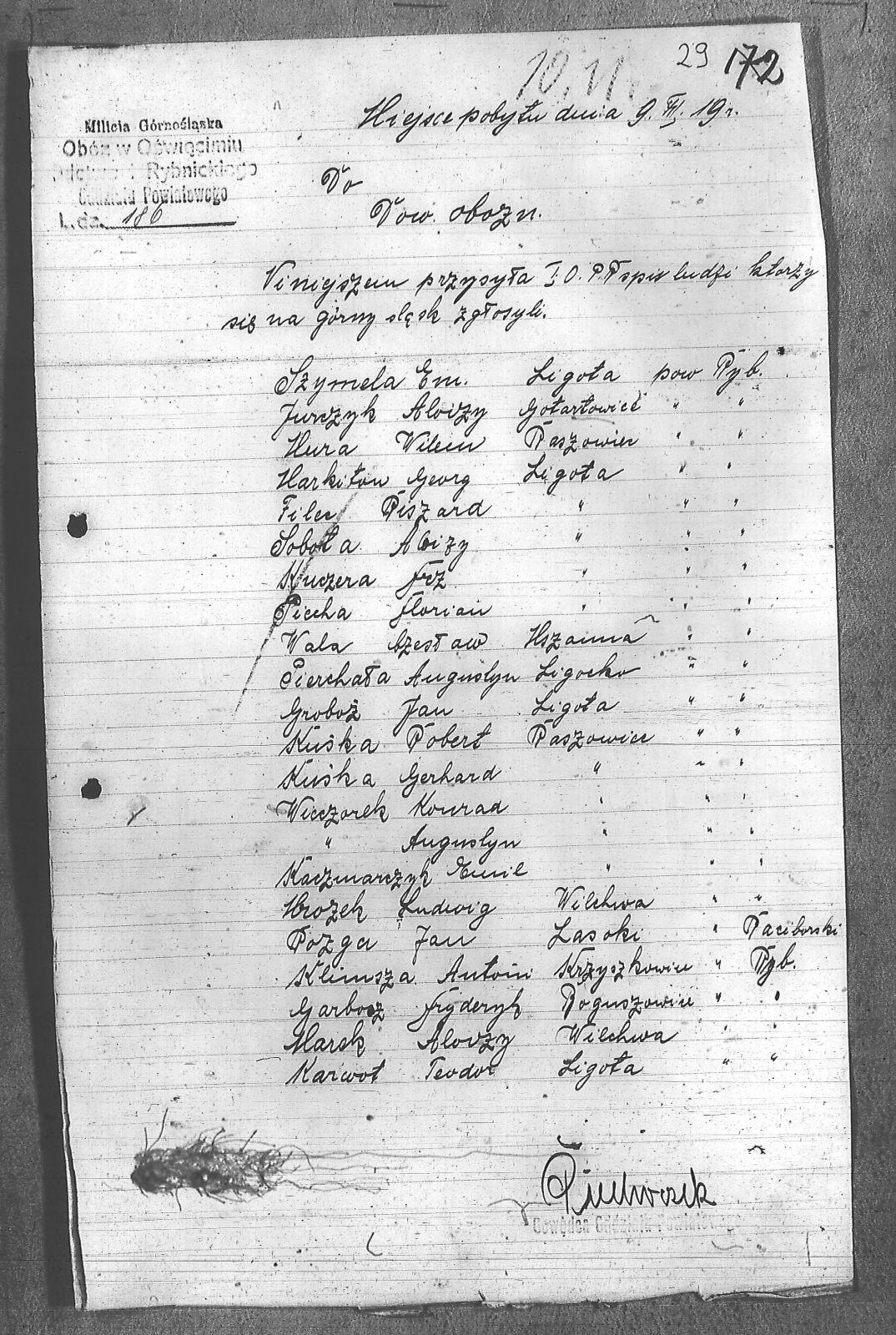 | Instytucje | Dowództwo I Rybnickiego Oddziału Powiatowego; Milicja Górnośląska; Milicja Górnośląska. Obóz w Oświęcimiu |