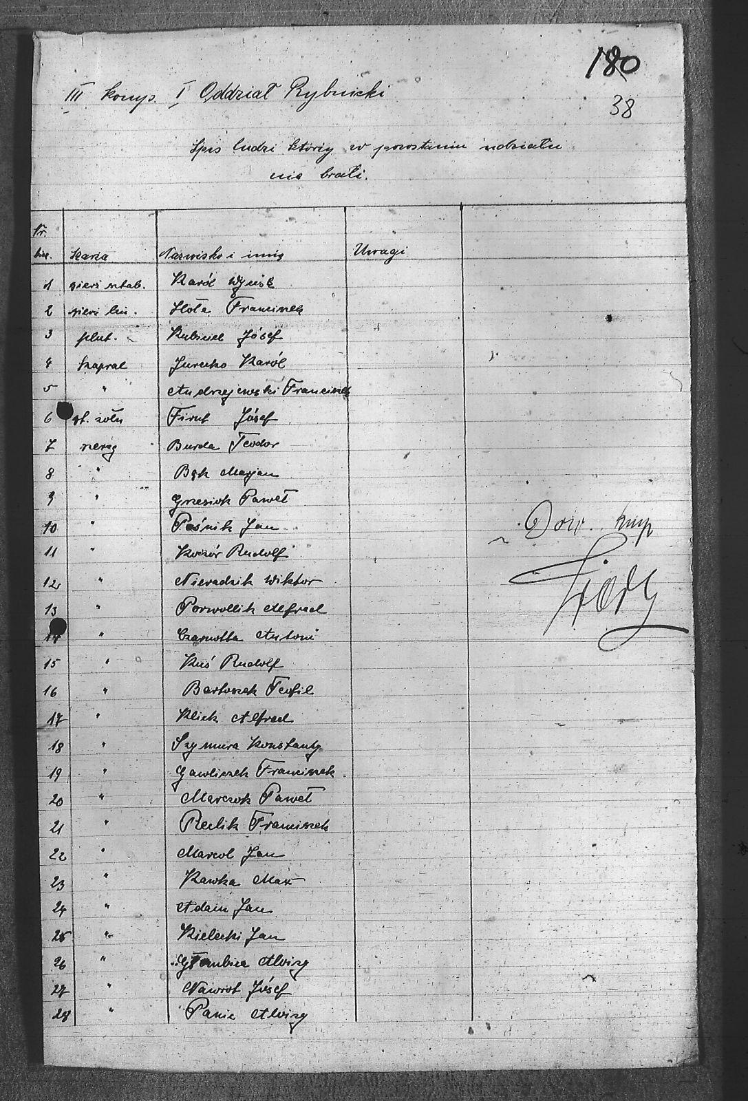 Adam, Jan; Andrzejewski, Franciszek; Bartoszek, Teofil; Bąk, Marian; Burda, Teodor; Czarnota, Antoni; Czysz, Wiktor; Fellman, Stefan; Firut, Józef; Gawliczek, Franciszek; Głombica, Alojzy; Grzesiok, Paweł; Hoła, Franciszek; Jureczko, Karol; Kawka, Maksymilian; Kielecki, Jan; Klich, Alfred; Koczór, Rudolf; Kubiciel, Józef; Kuś, Rudolf; Marcol, Jan; Marczok, Paweł; Moczała, Antoni; Nawrot, Józef; Nieradzik, Wiktor; Panic, Alojzy; Paśnik, Jan; Porwolik, Alfred; Reclik, Franciszek; Szymura, Konstanty; Wycisk, Karol; |