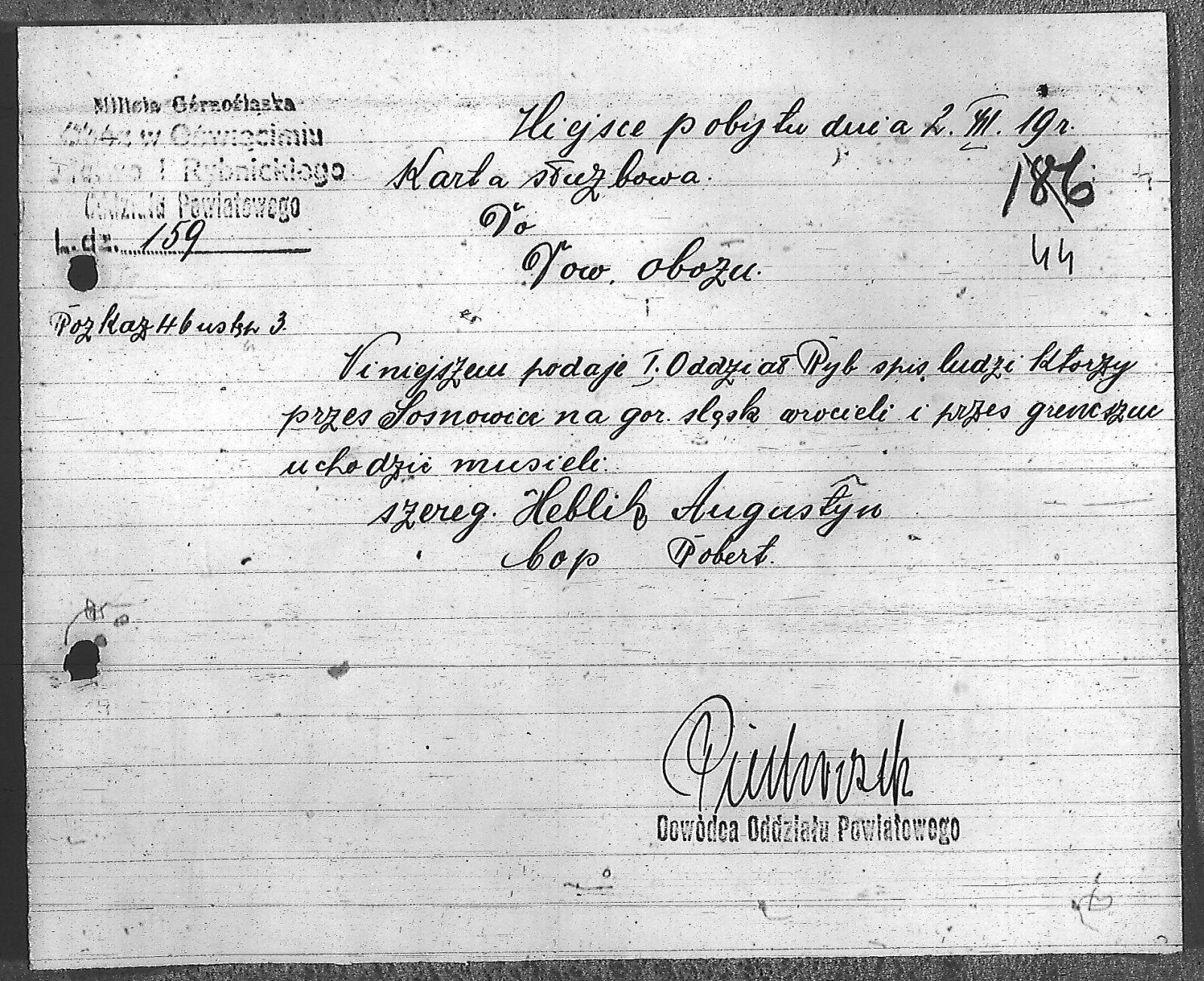 Instytucje Dowództwo I Rybnickiego Oddziału Powiatowego; Milicja Górnośląska; Milicja Górnośląska. Obóz w Oświęcimiu