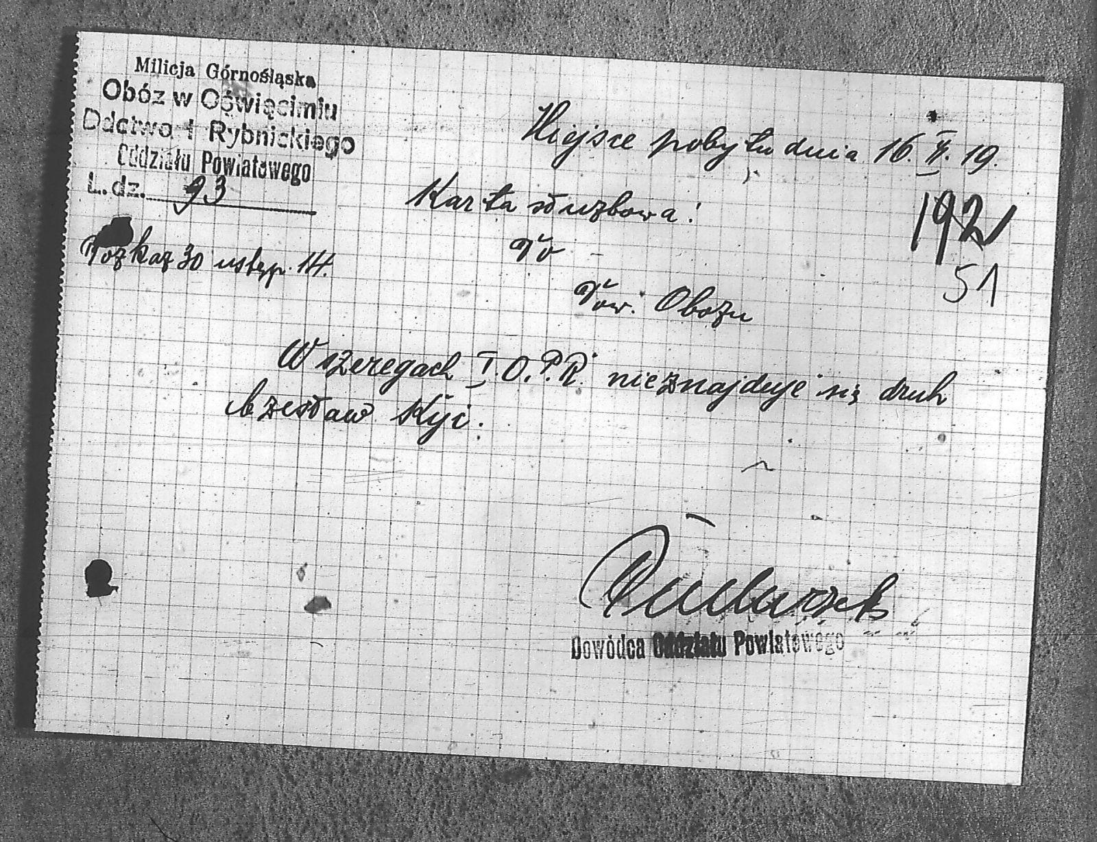 Instytucje Dowództwo I Rybnickiego Oddziału Powiatowego; Milicja Górnośląska; Milicja Górnośląska. Obóz w Oświęcimiu