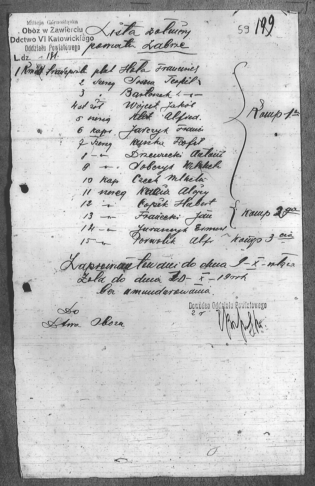 | Instytucje | Dowództwo IV Katowickiego Oddziału Powiatowego; Milicja Górnośląska; Milicja Górnośląska. Obóz w Zawierciu |