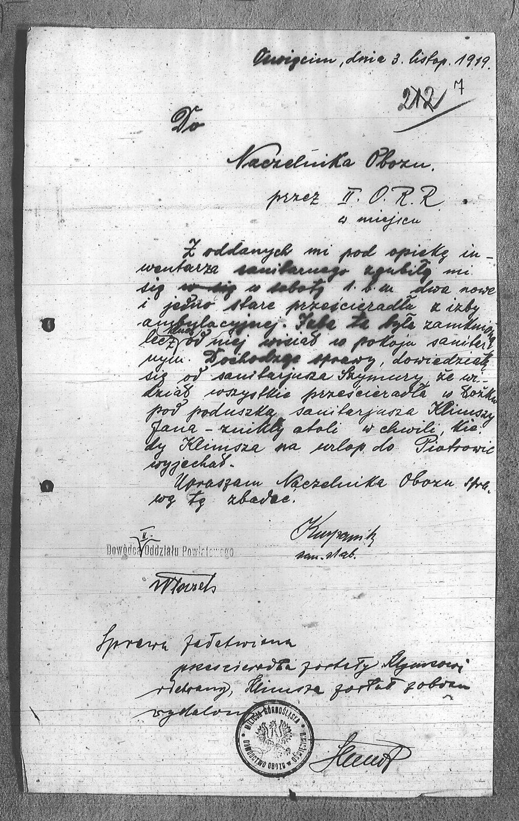 Tytuł Dokument do Naczelnika Obozu