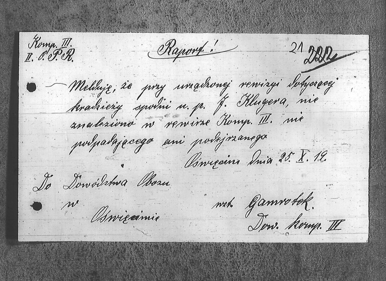 Tytuł teczki[Raporty dzienne II O.P. Rybnicki, obóz Oświęcim]