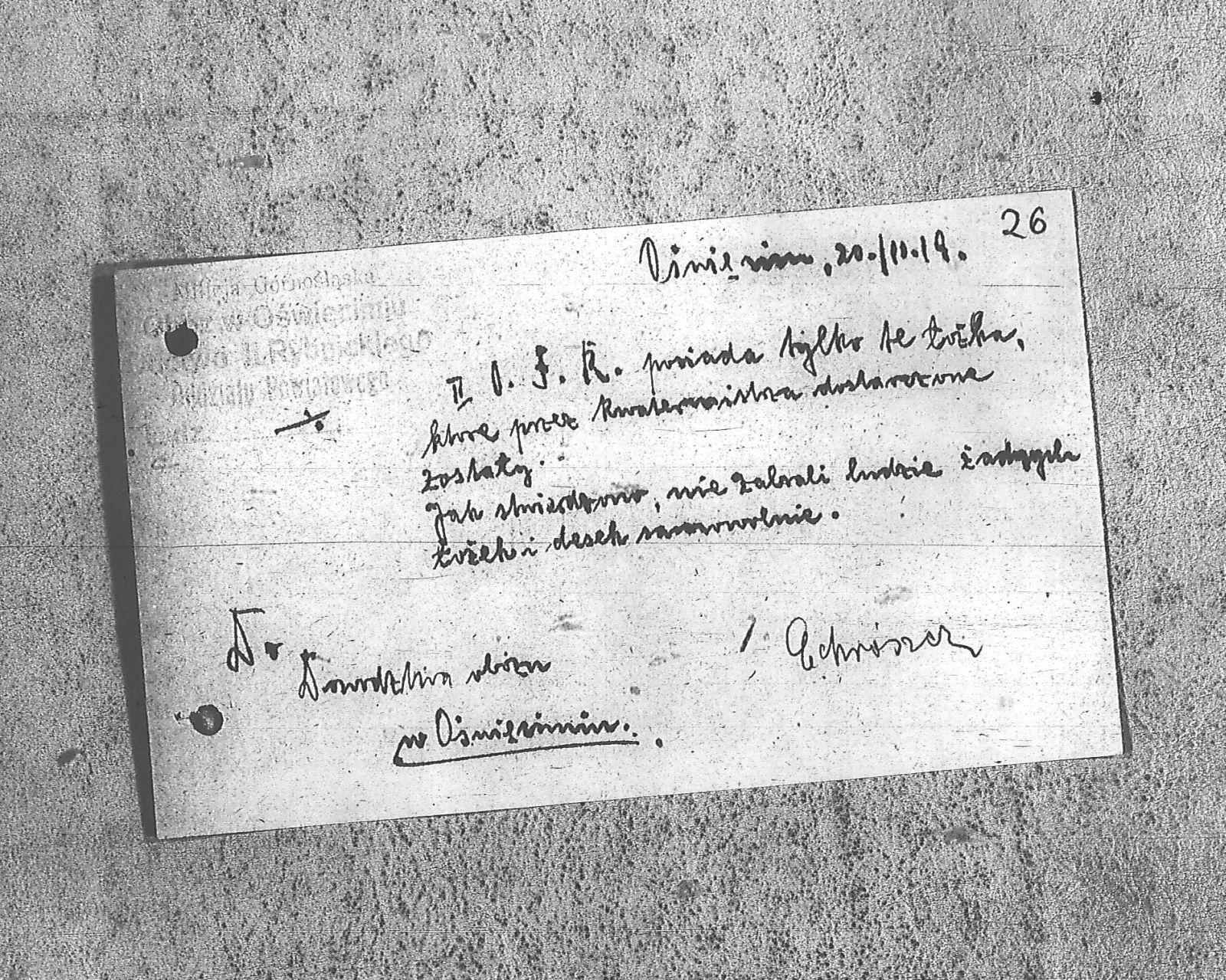 | Tytuł | Notatka do D-cy obozu w Oświęcimiu |
