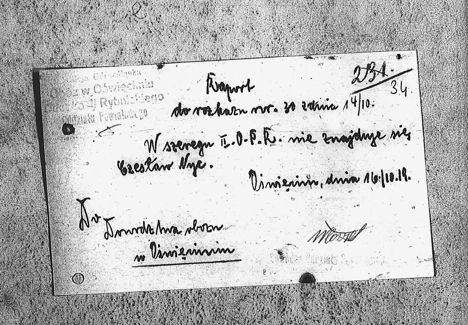 | Tytuł teczki | [Raporty dzienne II O.P. Rybnicki, obóz Oświęcim] |