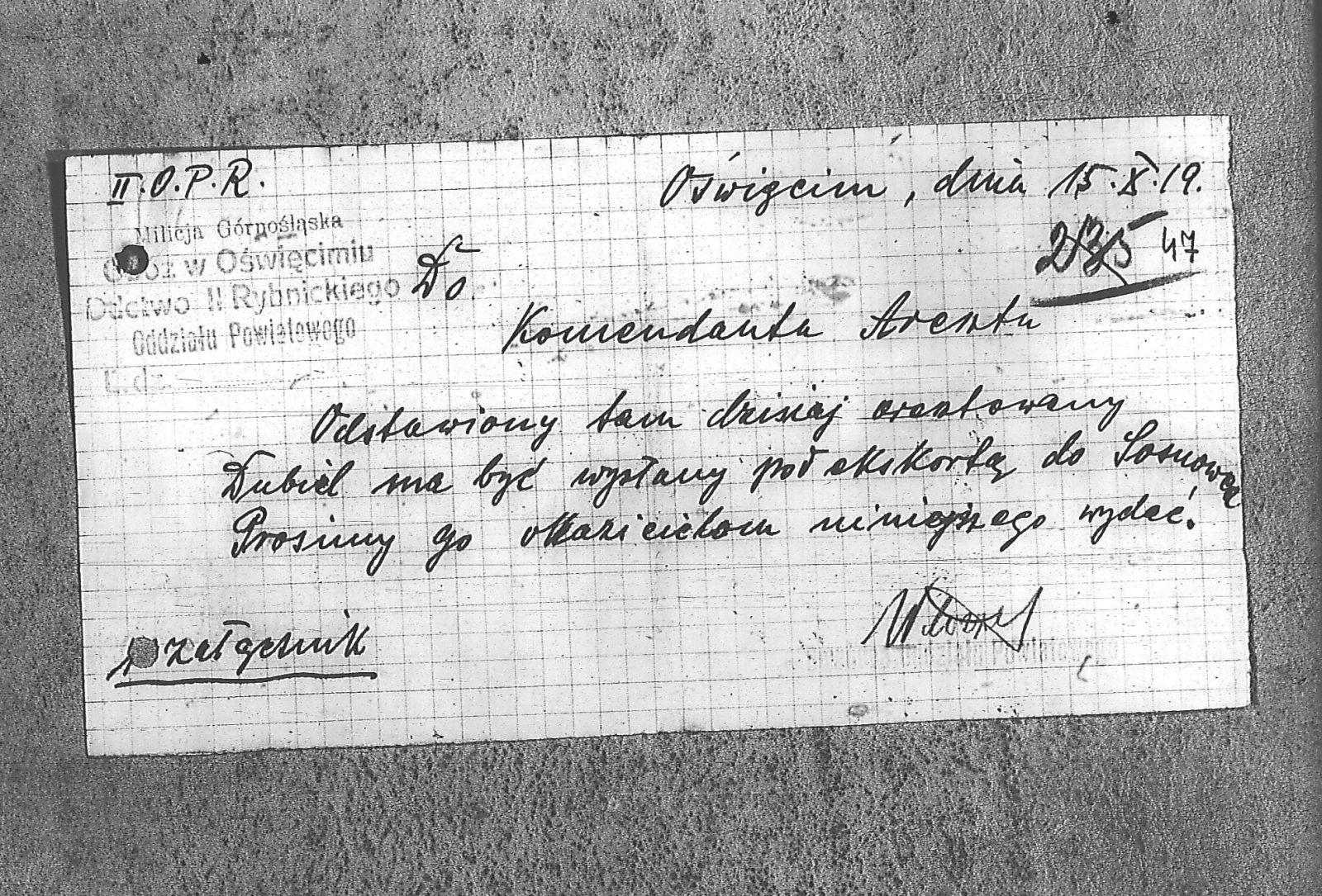 | Instytucje | Dowództwo II Rybnickiego Oddziału Powiatowego; Milicja Górnośląska; Milicja Górnośląska. Obóz w Oświęcimiu |