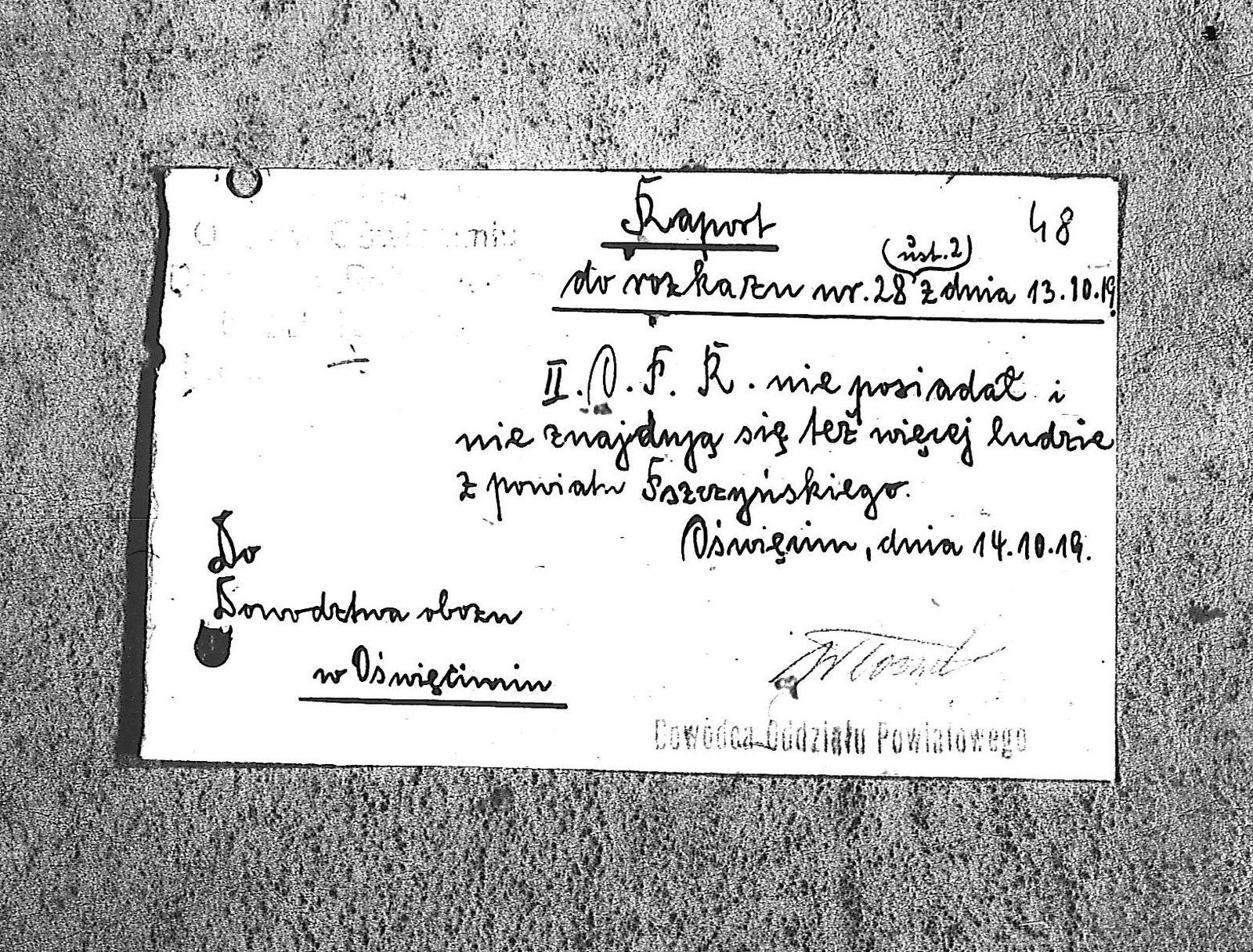 Tytuł teczki[Raporty dzienne II O.P. Rybnicki, obóz Oświęcim]