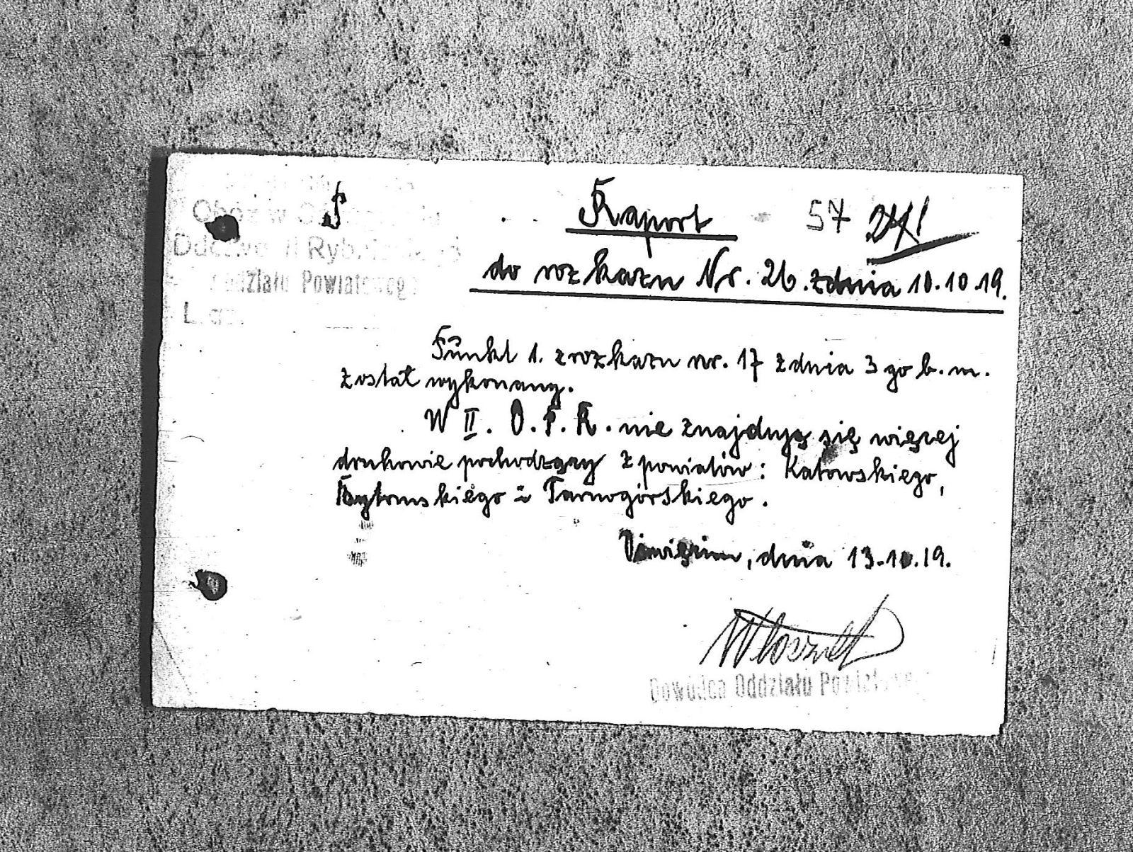 | Tytuł | Raport do rozkazu nr.26 z dnia 10 października 1919r. |