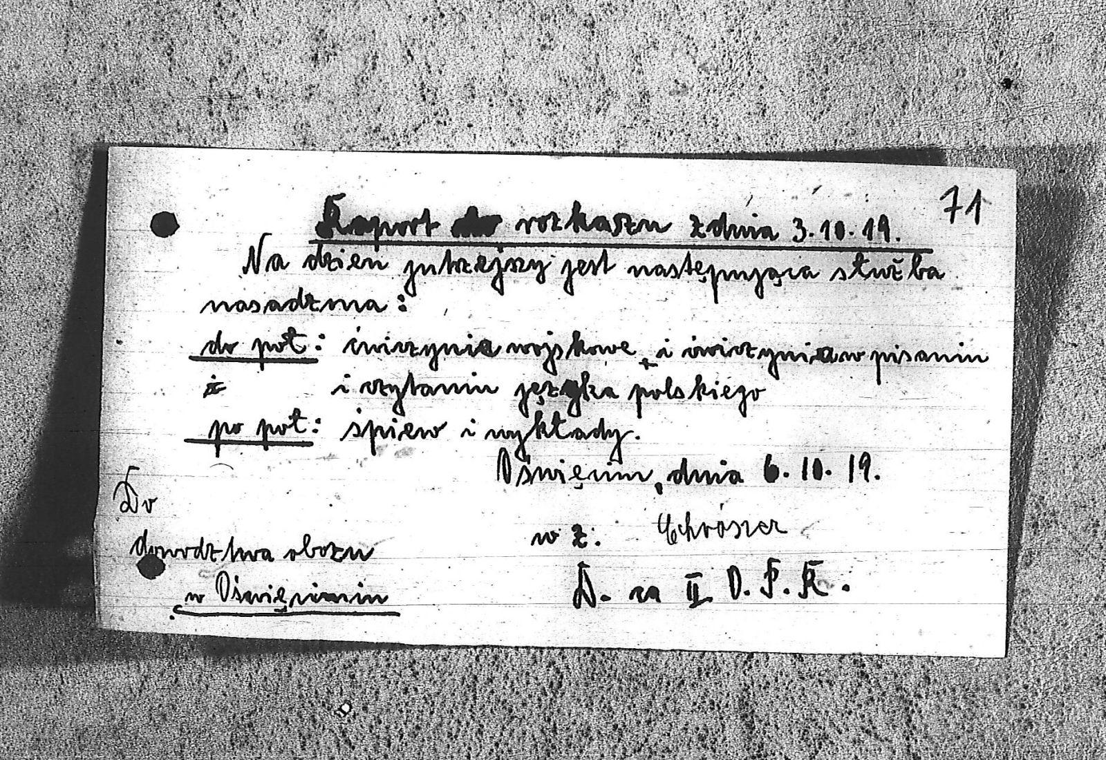 Tytuł Raport do rozkazu z dnia 3 października 1919