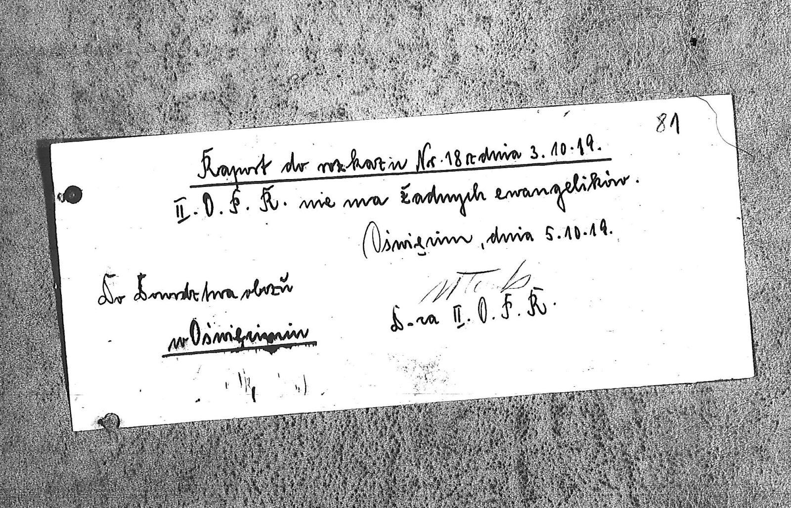 Tytuł Raport do rozkazu nr.18 z dnia 3 października 1919r.