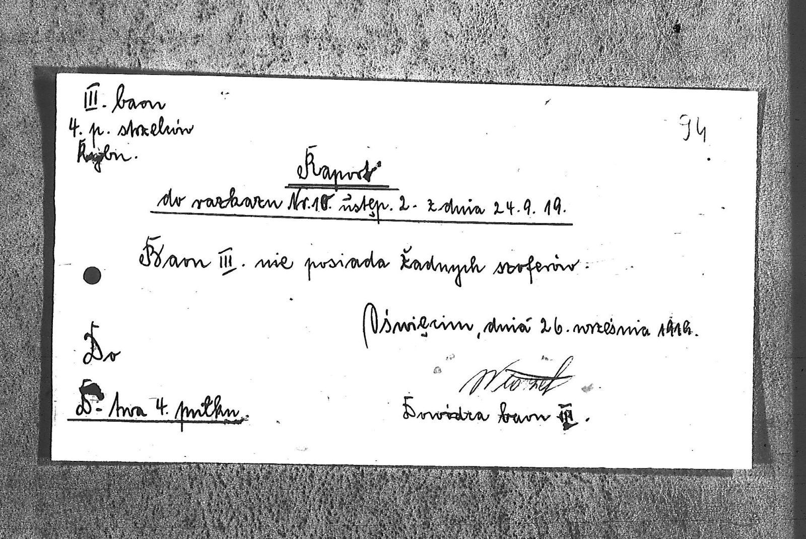 Tytuł Raport do rozkazu nr. 10, ustęp 2 z dnia 24 września 1919r.