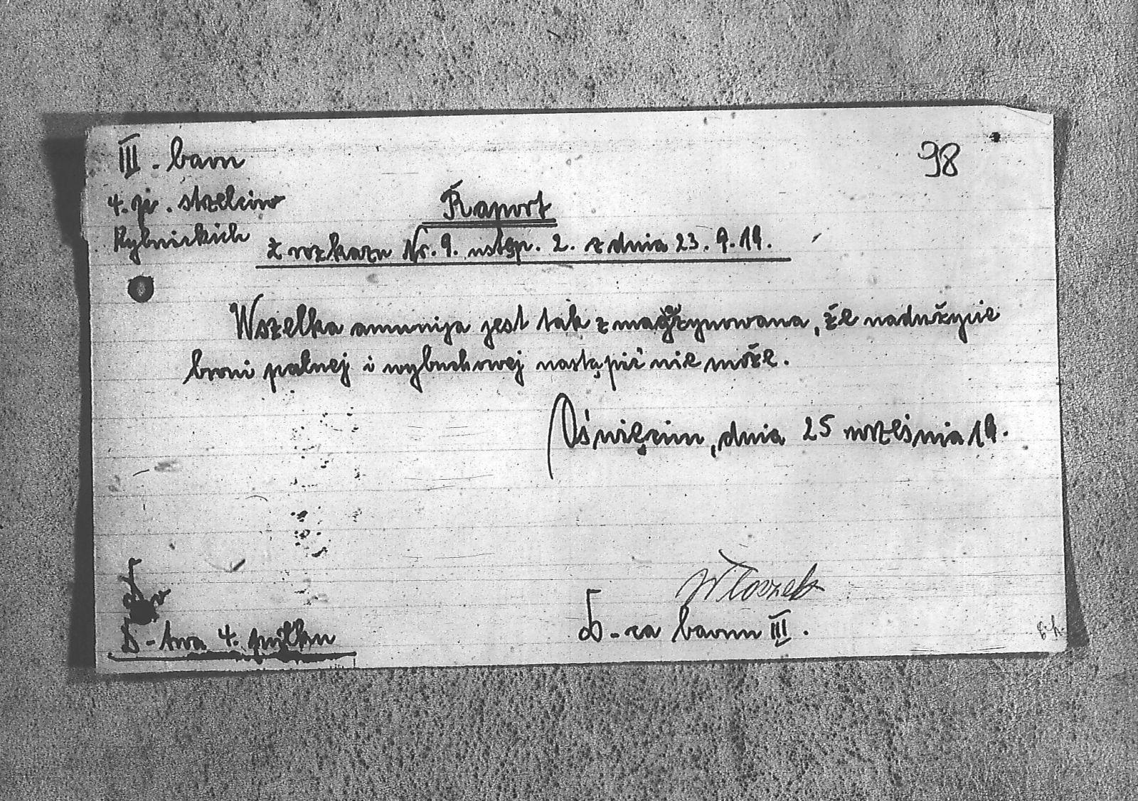 Tytuł Raport z rozkazu nr.9, ustęp nr.2 z dnia 23 września 1919r.