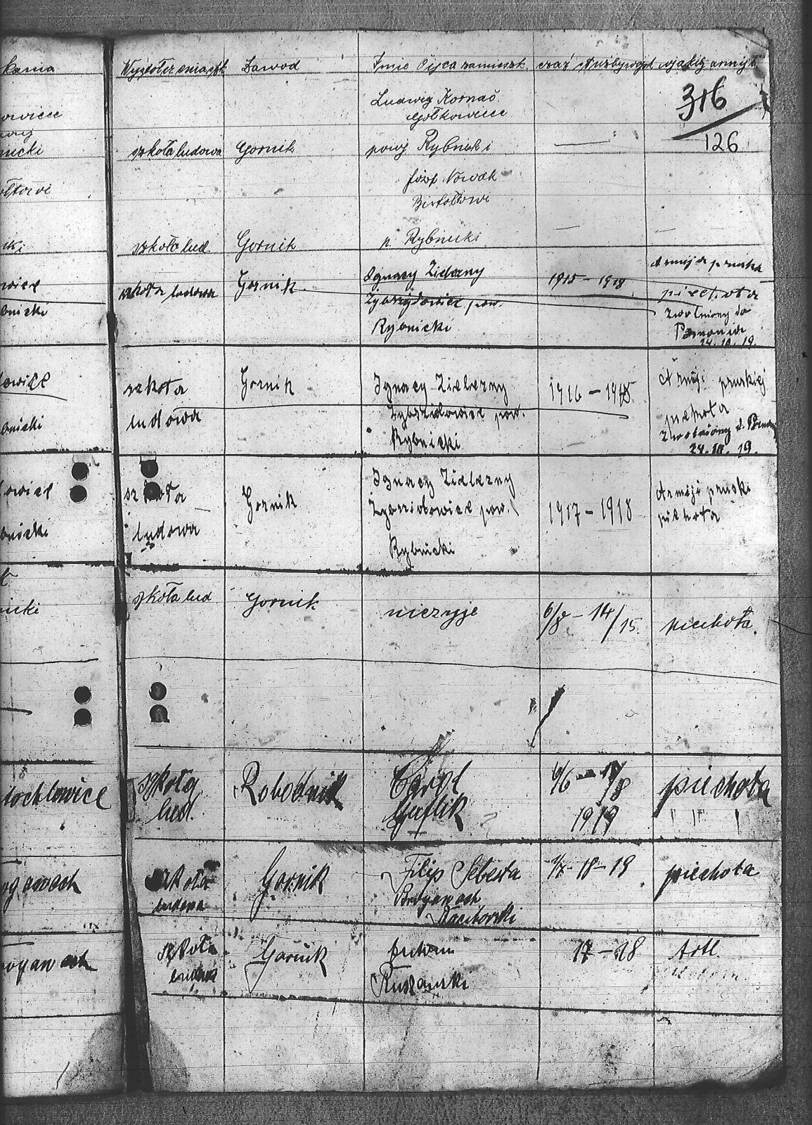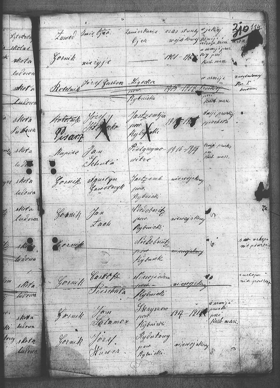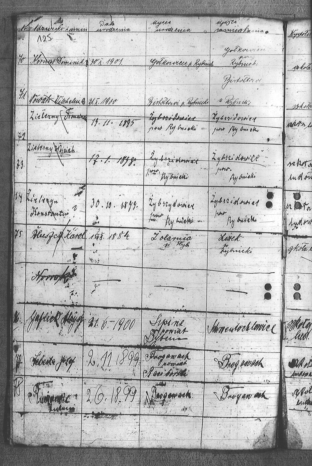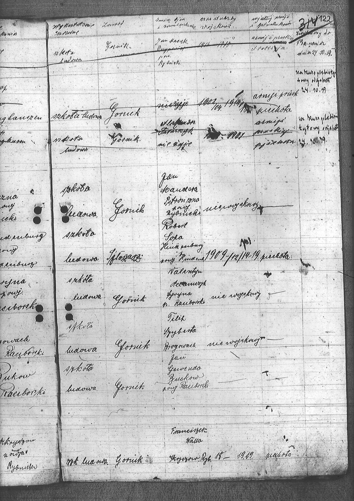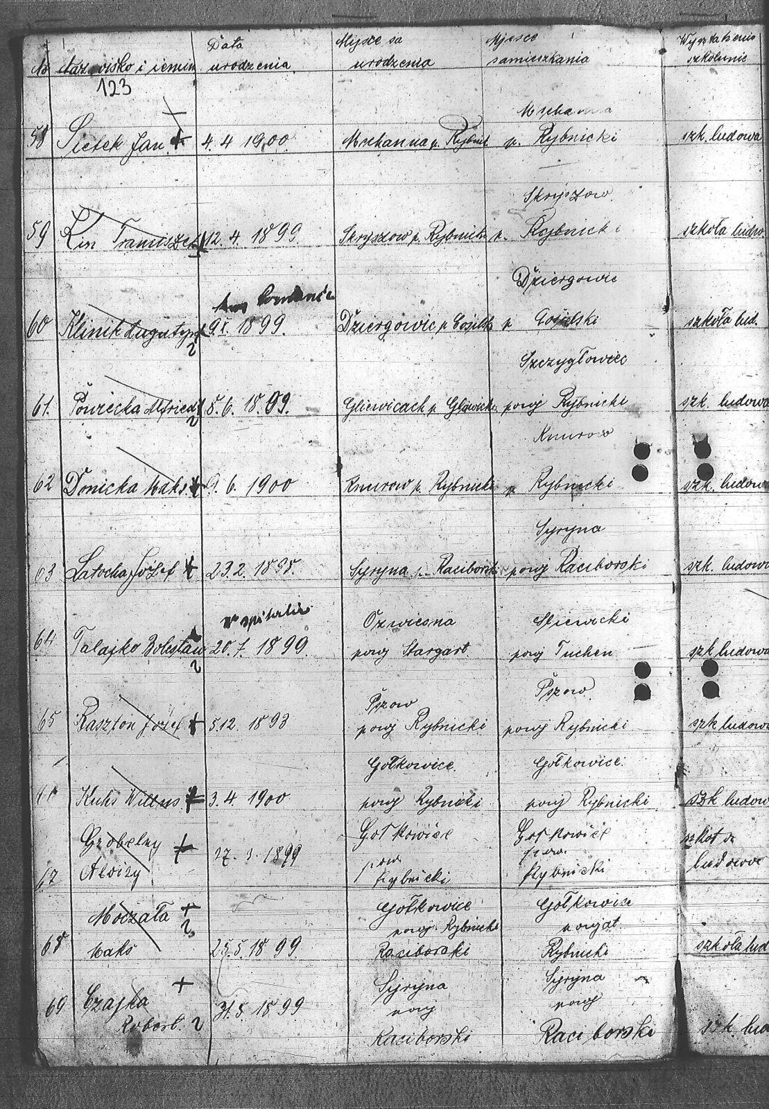 Adamczyk, Walenty; Adamczyk, Zygfryd; Baszton, Józef; Bluszcz, Karol; Bugla, Jan; Chrobok, Rudolf; Chwałczyk, Paweł; Czajka, Robert; Donicka, Maksymilian; Faber, Józef; Firut, Piotr; Fridrich, Wincenty; Frysz, Joachim; Gabor, Alojzy; Gaflik, Augustyn; Garbas, Józef; Gawełczyk, Ludwig; Gawenda, Adolf; Grobelny, Aloizy; Henzel, Franciszek; Herok, Antoni; Hoła, Alojzy; Huwer, Feliks; Jakub, Karol; Jarzyna, Ottoń; Kiełkowski, Ludwig; Kiełkowski, Wojciech; Kinda, Stanisław; Kisz, Franciszek; Klepek, Izydor; Klinik, Augustyn; Kłosek, Józef; Kołeczko, Stefan; Kornas, Dominik; Kornas, Mikołaj; Kuhs, Willus; Latocha, Józef; Łach, Antoni; Mandera, Paweł; Matuszek, Alojzy; Moczała, Maksymilian; Nowak, Wilhelm; Powiecka, Alfons; Powiecka, Alfred; Rusok, Constantin; Ruszański, Antoni; Salamon, Jan; Schäefer, Józef; Sietek, Jan; Sopa, Ignacy; Stania, Paweł; Stasiowski, Jan; Suchota, Izydor; Szebesta, Józef; Szybesta, Wiktor; Talajko, Bolesła; Tomaszek, Leopold; Walla, Antoni; Wieczorek, Józef; Zielezny, Konstantyn; Zniszcoł, Jan; |