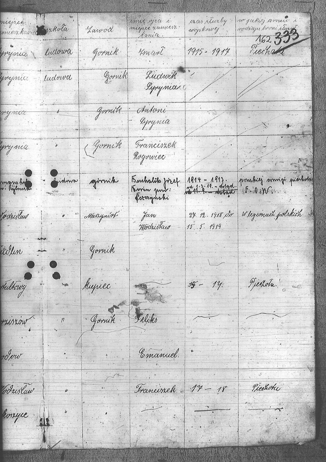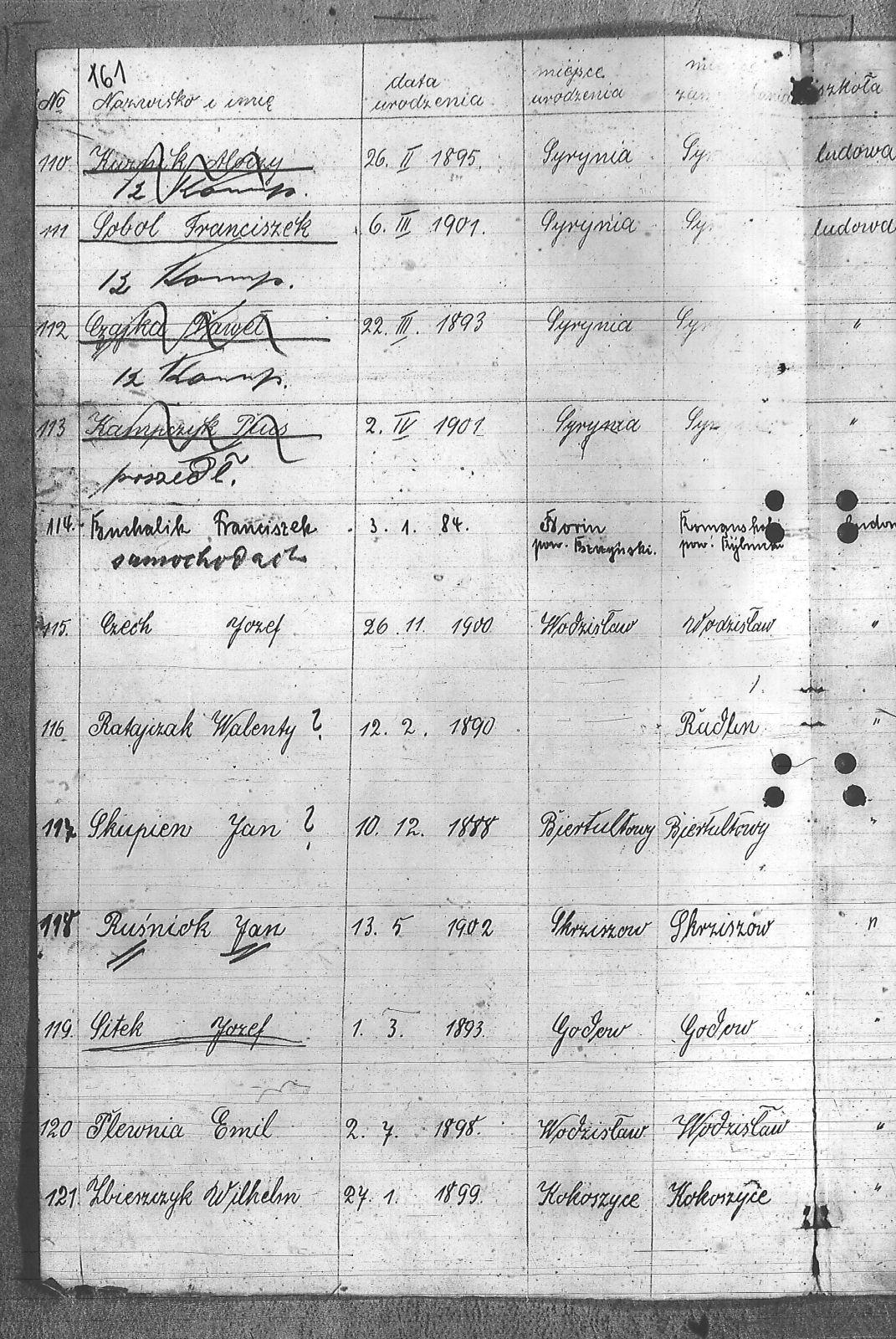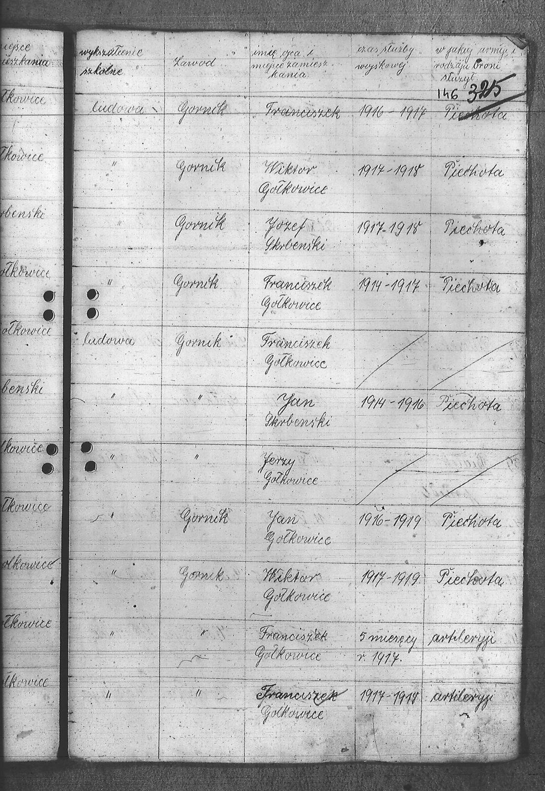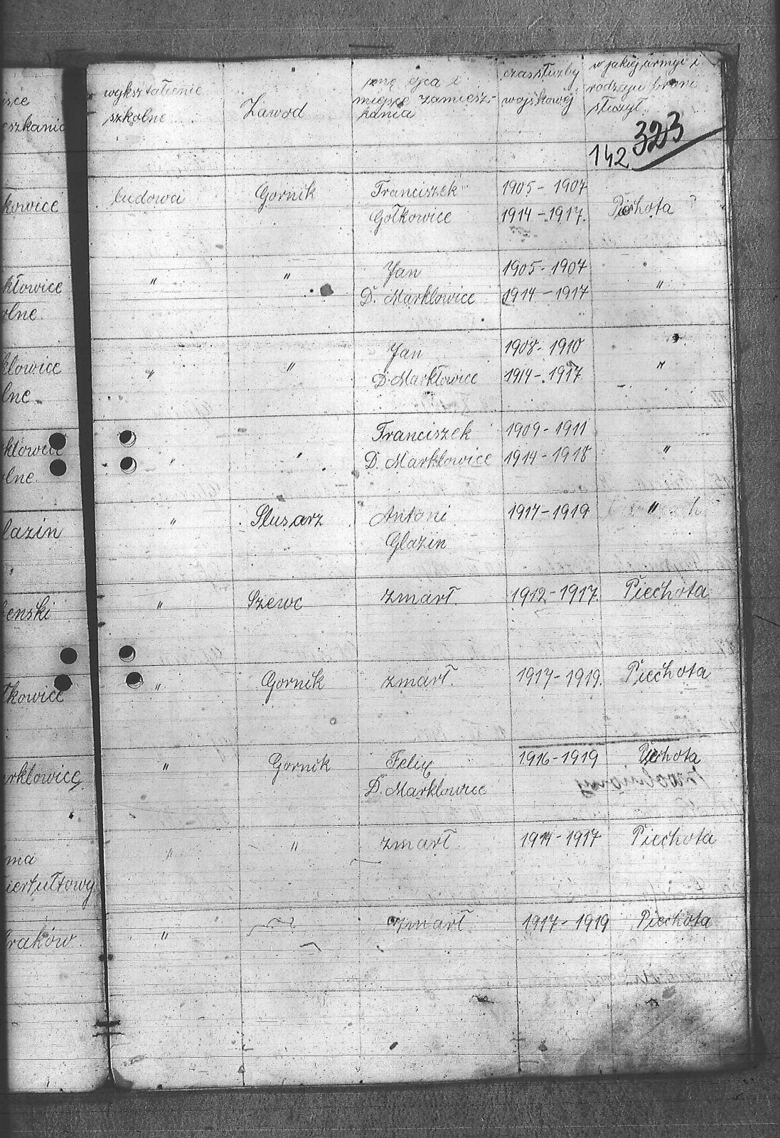 Adamczyk, Dominik; Adamczyk, Ludwik; Balcar, Augustyn; Balcar, Wilhelm; Bania, Stanisław; Benda, Henryk; Białek, Jan; Bohm, Rudolf; Brachmański, Mikołaj; Brachmański, Roman; Brzoza, Franciszek; Brzoza, Józef; Buchalik, Franciszek; Byszek, Władysław; Caniboł, Franciszek; Czajka, Paweł; Czarnota, Aloizy; Czarnota, Piotr; Czech, Józef; Dawiec, Stanisław; Drechsler, Wilhelm; Ferenc, Franciszek; Ferenc, Józef; Foicik, Roman; Foicik, Wincenty; Fulek, Augustyn; Gajowy, Piotr; Glassner, Tradel; Gojowy, Teodor; Gorgol, Emil; Góra, Marcin; Grobelny, Józef; Guzikowski, Jan; Herman, Aloizy; Janetta, Franciszek; Janulek, Antoni; Jęczmionka, Karol; Kampczyk, Pius; Kawałkiewicz, Stefan; Kawik, Jan; Klimsza, Jan; Kłosek, Karol; Kłosek, Ludwik; Kłosek, Mateusz; Konsek, Robert; Kozielski, Jan; Krenzel, Julian; Krótki, Augustyn; Krótki, Wincenty; Kubica, Aloizy; Kuźnik, Aloizy; Łaciak, Ernest; Madej, Brunon; Maizner, Emil; Maizner, Józef; Meizner, Franciszek; Meizner, Karol; Michalski, Jakub; Michałek, Karol; Mitko, Emil; Moczała, Józef; Moczała, Maksymilian; Musioł, Augustyn; Musioł, Franciszek; Myszkowski, Mieczysław; Nagrabka, Stanisław; Nendza, Józef; Nogły, Karol; Nowak, Teodor; Patas, Franciszek; Penkalla, Alojzy; Pietraszek, Alex; Pietraszek, Józef; Plewnia, Emil; Płaczek, Felix; Płaczek, Józef; Popek, Ernest; Potysz, Jan; Potysz, Rudolf; Prachowski, Aloizy; Ratajczak, Walenty; Reclik, Józef; Ruśniok, Jan; Salamon, Aloizy; Sanecznik, Jan; Siejak, Aleksander; Sieroszyński, Jan; Sikora, Henryk; Sitek, Józef; Sittek, Jan; Sittek, Max; Skupień, Jan; Smietana, Wawrzyn; Smołka, Józef; Sobol, Franciszek; Sondel, Karol; Staniczek, Paweł; Sternadel, Ernest; Stopiński, Karol; Sulewski, Stanisław; Surma, Piotr; Szefer, Aloizy; Szendzielorz, Karol; Szostek, Jan; Szotek, Wincenty; Szymiczek, Józef; Wajda, Kazimierz; Wala, Antoni; Warzecha, Szymon; Wawrosz, Franciszek; Wawrosz, Jan; Witosz, Alojzy; Wojtek, Emil; Zając, Edward; Zając, Jan; Zając, Józef; Zbieszczyk, Wilhelm; Zimocha, Jakub; Zych, Stanisław; |