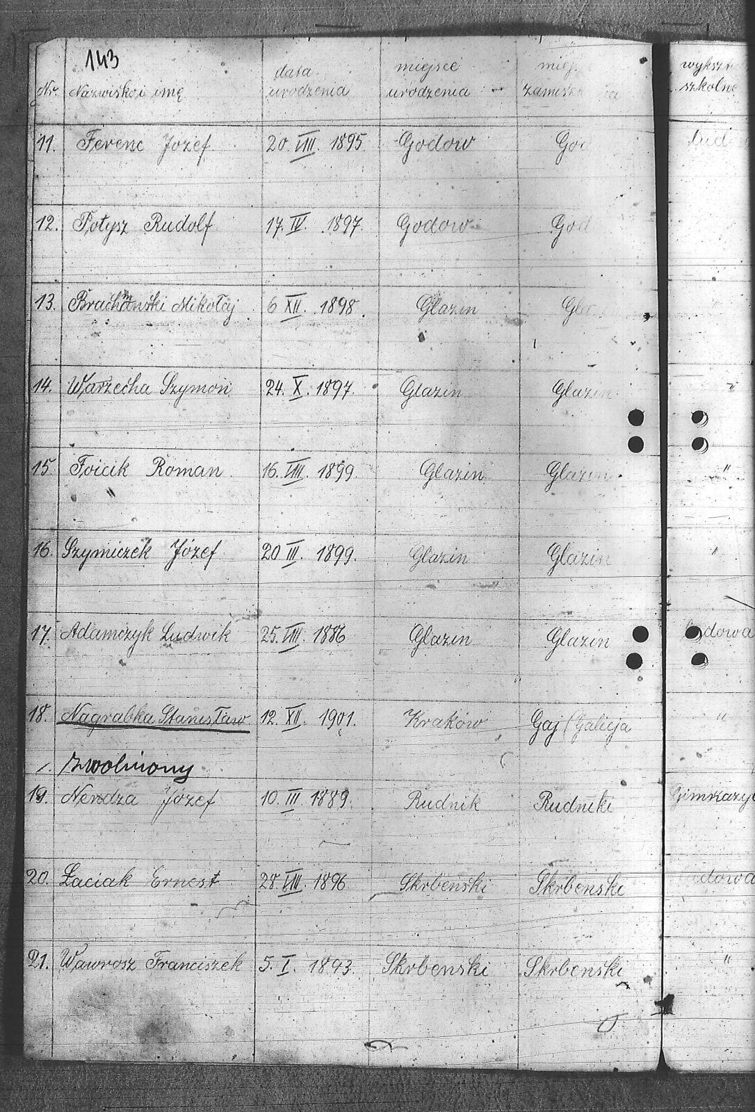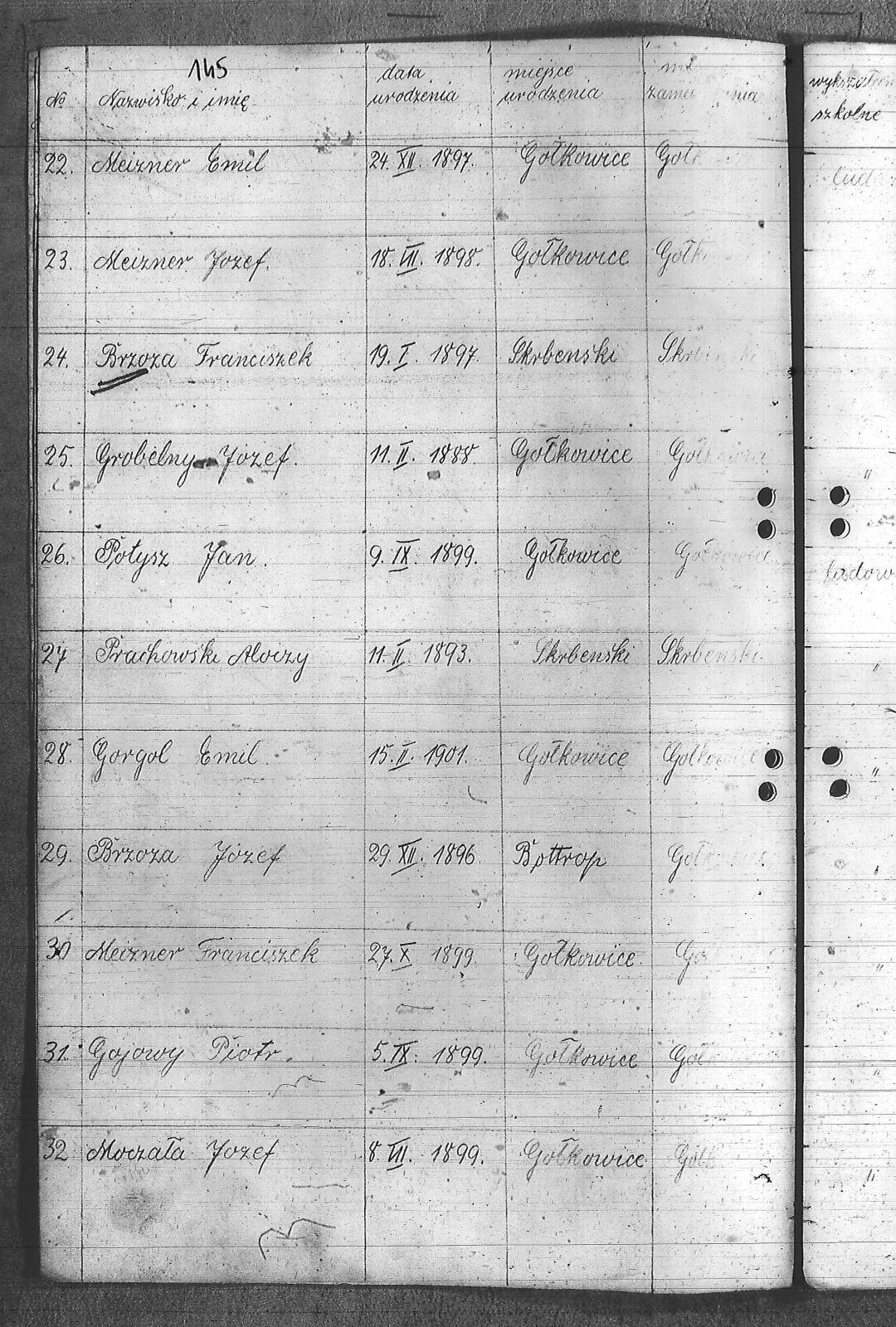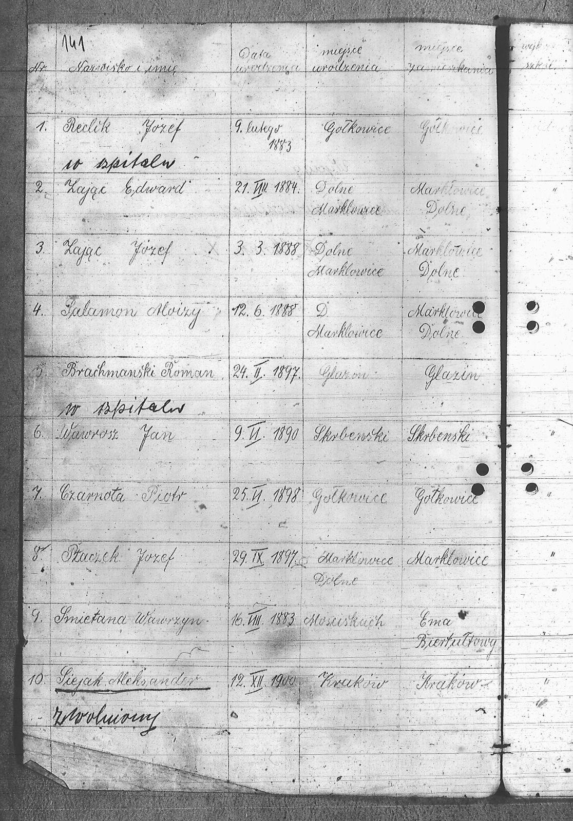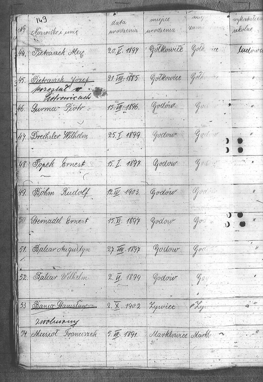 Adamczyk, Dominik; Adamczyk, Ludwik; Balcar, Augustyn; Balcar, Wilhelm; Bania, Stanisław; Benda, Henryk; Białek, Jan; Bohm, Rudolf; Brachmański, Mikołaj; Brachmański, Roman; Brzoza, Franciszek; Brzoza, Józef; Buchalik, Franciszek; Byszek, Władysław; Caniboł, Franciszek; Czajka, Paweł; Czarnota, Aloizy; Czarnota, Piotr; Czech, Józef; Dawiec, Stanisław; Drechsler, Wilhelm; Ferenc, Franciszek; Ferenc, Józef; Foicik, Roman; Foicik, Wincenty; Fulek, Augustyn; Gajowy, Piotr; Glassner, Tradel; Gojowy, Teodor; Gorgol, Emil; Góra, Marcin; Grobelny, Józef; Guzikowski, Jan; Herman, Aloizy; Janetta, Franciszek; Janulek, Antoni; Jęczmionka, Karol; Kampczyk, Pius; Kawałkiewicz, Stefan; Kawik, Jan; Klimsza, Jan; Kłosek, Karol; Kłosek, Ludwik; Kłosek, Mateusz; Konsek, Robert; Kozielski, Jan; Krenzel, Julian; Krótki, Augustyn; Krótki, Wincenty; Kubica, Aloizy; Kuźnik, Aloizy; Łaciak, Ernest; Madej, Brunon; Maizner, Emil; Maizner, Józef; Meizner, Franciszek; Meizner, Karol; Michalski, Jakub; Michałek, Karol; Mitko, Emil; Moczała, Józef; Moczała, Maksymilian; Musioł, Augustyn; Musioł, Franciszek; Myszkowski, Mieczysław; Nagrabka, Stanisław; Nendza, Józef; Nogły, Karol; Nowak, Teodor; Patas, Franciszek; Penkalla, Alojzy; Pietraszek, Alex; Pietraszek, Józef; Plewnia, Emil; Płaczek, Felix; Płaczek, Józef; Popek, Ernest; Potysz, Jan; Potysz, Rudolf; Prachowski, Aloizy; Ratajczak, Walenty; Reclik, Józef; Ruśniok, Jan; Salamon, Aloizy; Sanecznik, Jan; Siejak, Aleksander; Sieroszyński, Jan; Sikora, Henryk; Sitek, Józef; Sittek, Jan; Sittek, Max; Skupień, Jan; Smietana, Wawrzyn; Smołka, Józef; Sobol, Franciszek; Sondel, Karol; Staniczek, Paweł; Sternadel, Ernest; Stopiński, Karol; Sulewski, Stanisław; Surma, Piotr; Szefer, Aloizy; Szendzielorz, Karol; Szostek, Jan; Szotek, Wincenty; Szymiczek, Józef; Wajda, Kazimierz; Wala, Antoni; Warzecha, Szymon; Wawrosz, Franciszek; Wawrosz, Jan; Witosz, Alojzy; Wojtek, Emil; Zając, Edward; Zając, Jan; Zając, Józef; Zbieszczyk, Wilhelm; Zimocha, Jakub; Zych, Stanisław; |