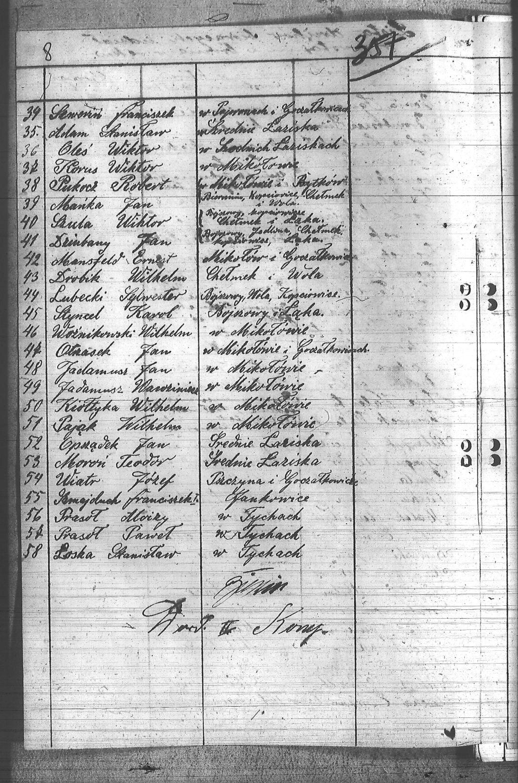 Adam, Stanisław; Badura, Alojzy; Baron, Tomasz; Bienia, Ignacy; Bojdoł, Wilhelm; Borowski, Jan; Bromboszcz, Wincenty; Cebula, Franciszek; Cofała, Franciszek; Czympas, Teodor; Drobik, Wilhelm; Dziubany, Jan; Golus, Ludwik; Jadamusz, Jan; Jadamusz, Wawrzyniec; Kiołtyka, Wilhelm; Kłoska, Jan; Kocima, Leopold; Kocurek, Franc.; Kocurek, Jan; Kocurek, Józef; Kocurek, Klemens; Kocurek, Walenty; Korus, Wiktor; Kuc, Walenty; Lubecki, Sylwester; Łoska, Stanisław; Małek, Augustyn; Mansfeld, Ernest; Mańka, Jan; Moroń, Teodor; Oleś, Wiktor; Oprządek, Jan; Otrząsek, Jan; Pająk, Wilhelm; Piecha, Emanuel; Piecha, Jan; Piecha, Julian; Piekarczyk, Franciszek; Piszczek, Robert; Płoch, Wincenty; Prasoł, Alojzy; Prasoł, Paweł; Pukocz, Jan; Pukocz, Paweł; Pukocz, Robert; Rajnoga, Karol; Seweryn, Franciszek; Sikora, Józef; Staś, Teodor; Stawowy, Teodor; Styncel, Karol; Szmajduch, Franciszek I; Szula, Wiktor; Wiatr, Józef; Wita, Emil; Woźnikowski, Wilhelm; Wrona, Mikołaj; |
