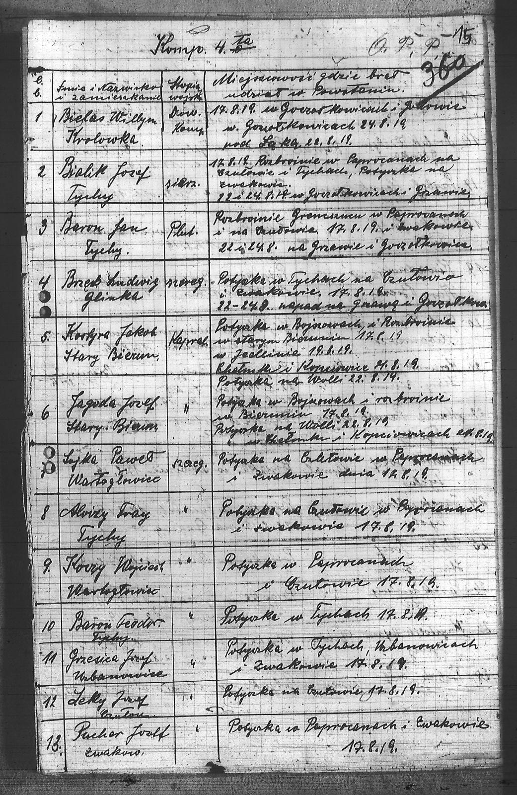 | Tytuł | Spis ludzi, którzy brali udział w powstaniu i gdzie - IV Kompania |