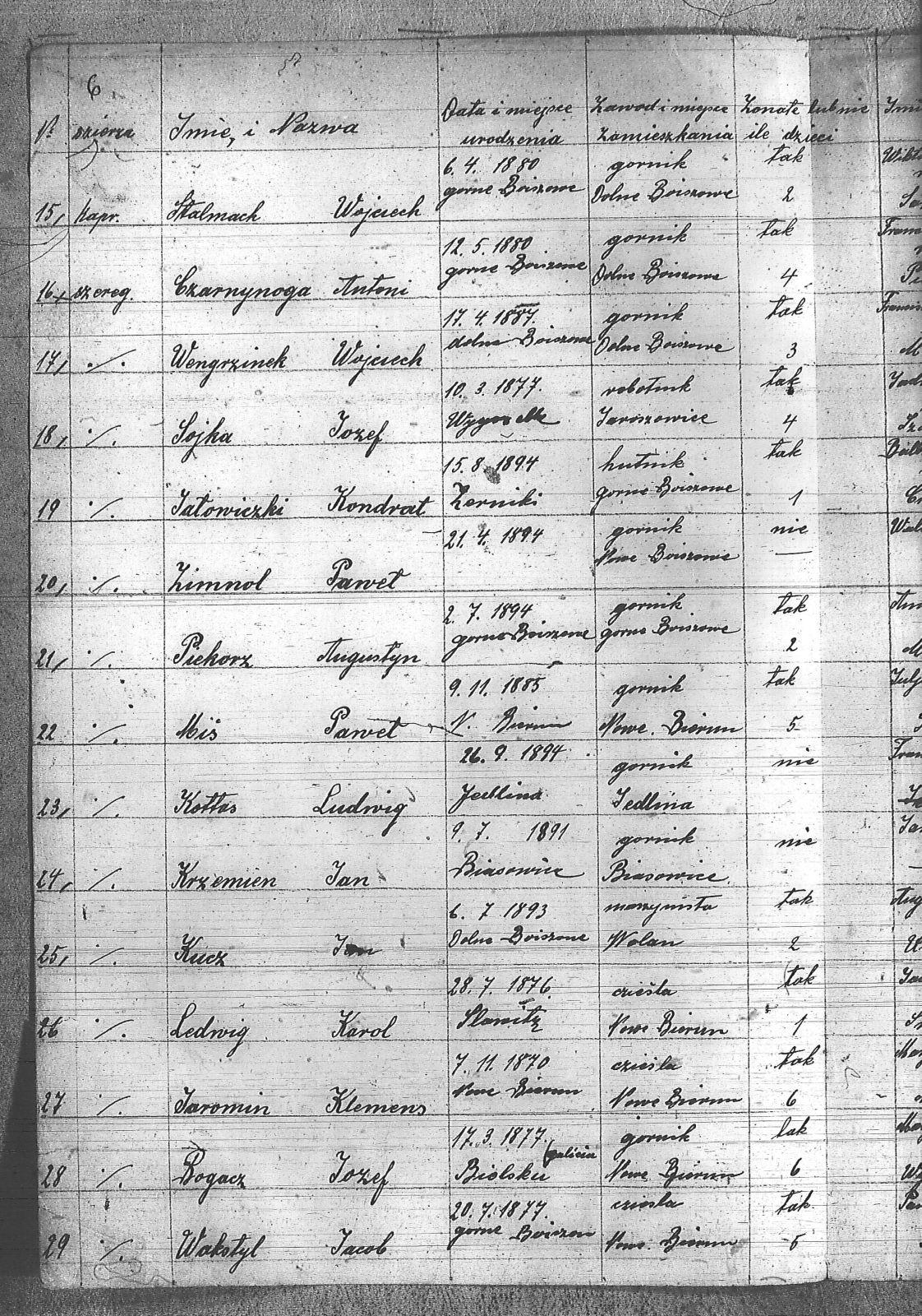 Bogacz, Józef; Czarnynoga, Antoni; Danek, Antoni; Gwóźdź, Józef; Hachuła, Alojzy; Jałowiecki, Konrad; Jaromin, Klemens; Kołczyk, Karol; Kotas, Ludwik; Kruk, Walenty; Krzemień, Jan; Kucz, Jan; Kulka, Jan; Ledwig, Karol; Lubowiecki, Paweł; Magiera, Franciszek; Miś, Paweł; Niezgoda, Franciszek; Piekorz, Augustyn; Ryguła, Jan; Sojka, Józef; Solich, Mateusz; Stalmach, Wojciech; Standura, Paweł; Szewczyk, Jan; Wakotyl, Jakub; Wanżura, Józef; Węgrzynek, Wojciech; Wziętek, Franciszek; Zimnol, Paweł; |