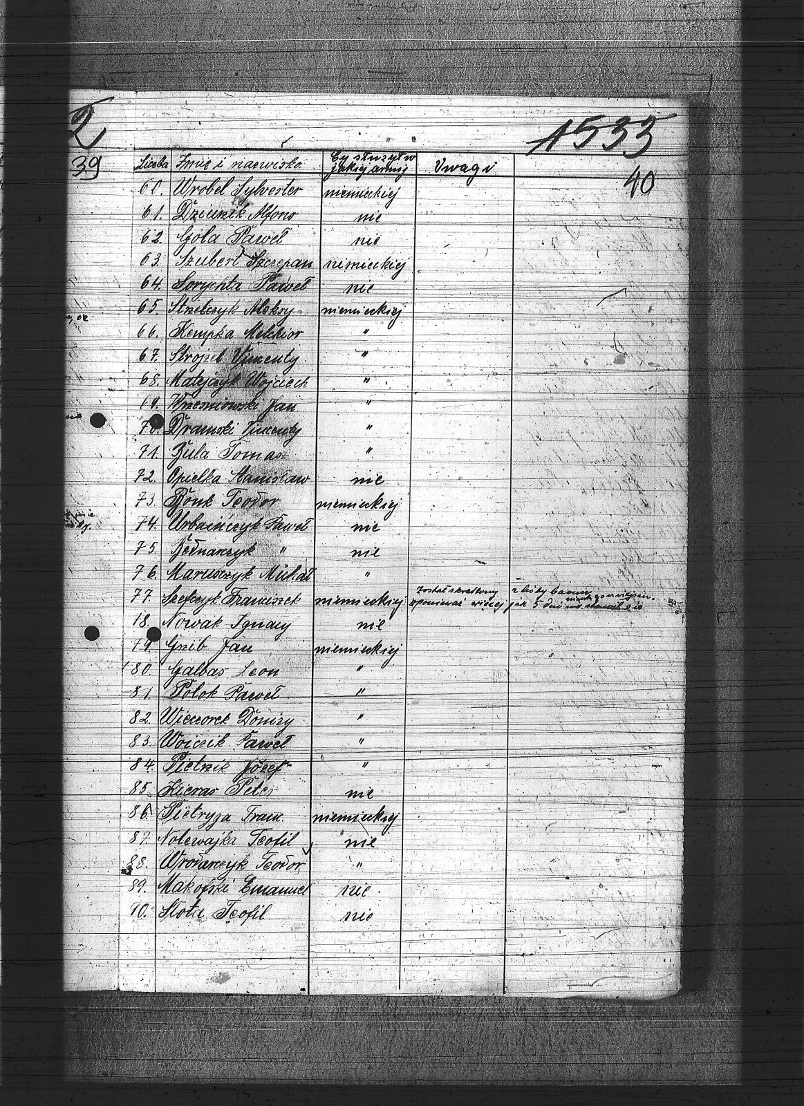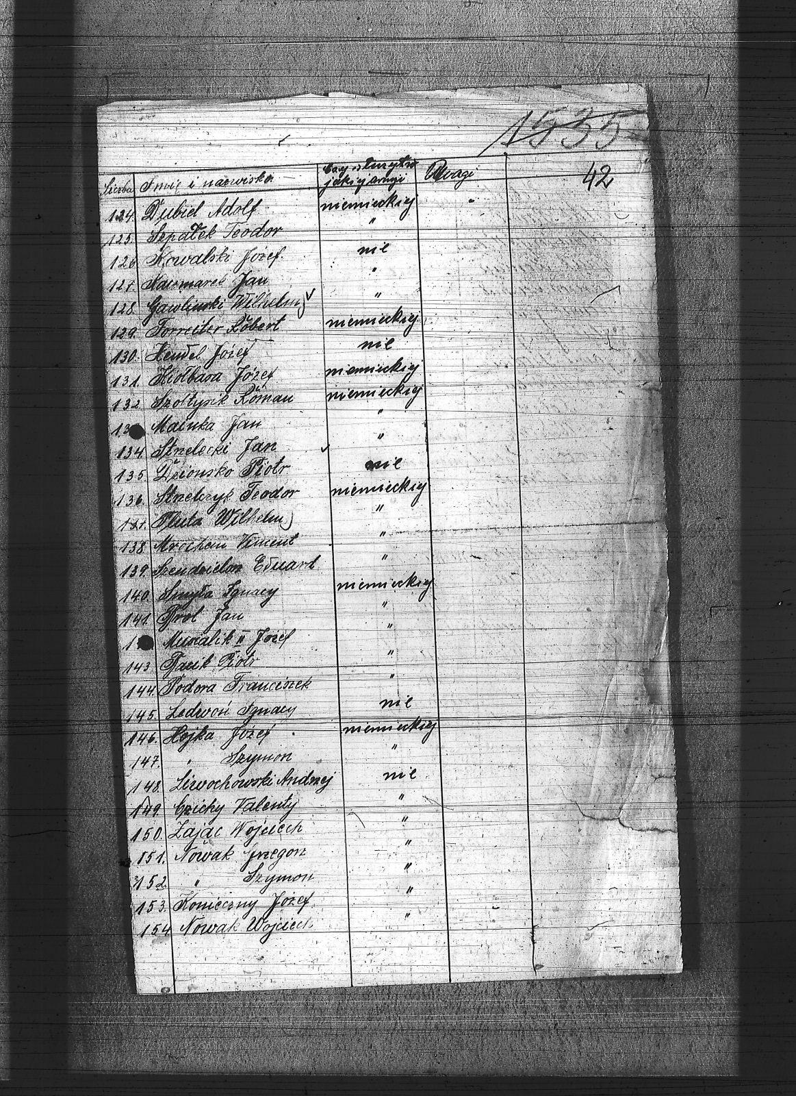 Adamiec, Ludwik; Bacik, Piotr; Bacik, Roman; Bednarczyk, Paweł; Bendkowski, Piotr; Bonk, Teodor; Brol, Jan; Bryłka, Adolf; Bryłka, Jan; Buchacz, Jan; Bula, Tomasz; Cichosz, Robert; Czaja, Robert; Czerniecki, Robert; Czerniecki, Teofil; Czerniecki, Wincenty; Czichy, Robert; Czichy, Walenty; Domaiński, Wilhelm; Don, Józef; Doner, Karol; Dramski, Wincenty; Dubiel, Adolf; Dymarczyk, Franciszek; Dziębała, Franciszek; Dzionsko, Piotr; Dziuszik, Alfons; Fiala, Jan; Flak, Jerzy; Flak, Paweł; Flak, Robert; Flak, Wilhelm; Flak, Wojciech; Forreiter, Robert; Franiel, Agustyn; Frej, Filip; Gaida, Franciszek; Galbas, Leon; Gałeniorok, Jan; Gałuszka, Jakub; Gaweł, Ludwik; Gawliński, Wilhelm; Giera, Alfons; Gnida, Ryszard; Gnot, Jan; Gola, Paweł; Graupner, Martin; Grojpner, Franciszek; Grzib, Jan; Haida, Ryszard; Hanzel, Paweł; Hendel, Józef; Hetmańczyk, Wilhelm; Hoika, Tomasz; Hoima, Paweł; Hojka, Ignacy; Hojka, Józef; Hojka, Szymon; Horzela, Józef; Jakotechce, Tomasz; Jakotochce, Józef; Jany, Agustyn; Jany, Robert; Jasiok, Wincenty; Jaworek, Wojciech; Jochlik, Piotr; Jończyk, Jakub; Judas, Agustyn; Kaczmarek, Jan; Kadłubek, Paweł; Kalyta, Piotr; Kapuszowski, Bartosz; Kempka, Melchior; Kiełbasa, Józef; Kieras, Peter; Klimar, Szymon; Knop, Piotr; Kocot, Antoni; Konieczny, Józef; Konieczny, Szczepan; Koronek, Józef; Koronowski, Alojzy; Kowalski, Józef; Krzykawski, Florian; Kużaj, Bernard; Kwarniok, Piotr; Labus, Ryszard; Ledwoń, Ignacy; Liwochowski, Andrzej; Lukoszek, Szymon; Lusek, Tomasz; Luszczyk, Augustyn; Luszczyk, Teodor; Machura, Andrzej; Mainka, Jan; Mainka, Ryszard; Makofski, Emanuel; Markusik, Franciszek; Maruszczyk, Michał; Matejczyk, Jan; Matejczyk, Wilhelm; Matejczyk, Wojciech; Miodek, Franciszek; Miodek, Józef; Miś, Augustyn; Miś, Robert; Mitas, Tomasz; Mitrenga, Franciszek; Mrochem, Wincent; Musiali, Józef III; Musialik, Józef II; Musiol, Józef; Nalewajka, Teofil; Nowak, Grzegorz; Nowak, Ignacy; Nowak, Jan; Nowak, Piotr; Nowak, Szymon; Nowak, Wojciech; Ochman, Robert; Opielka, Stanisław; Patoń, Franciszek; Patoń, Piotr; Patoń, Ryszarf; Piekarczyk, Piotr; Pietryga, Franciszek; Pietryga, Paweł; Pietrzik, Józef; Pluta, Wilhelm; Podora, Franciszek; Polok, Paweł; Pustelnik, Roman; Rapstejn, Leopold; Reichel, Jan; Renka, Franciszek; Rozkosz, Jan; Rożek, Jerzy; Rudy, Jan; Sikora, Franciszek; Skutnik, Józef; Słota, Jakub; Słota, Teofil; Smyła, Ignacy; Sorychta, Paweł; Sowa, Jan; Strauch, Józef; Strojzel, Wincenty; Strzelczyk, Aleksy; Strzelczyk, Teodor; Strzelecki, Jan; Szefczyk, Franciszek; Szendzielorz, Edward; Szewczyk, Józef; Szołtysik, Józef; Szołtysik, Roman; Szołtysik, Szymon; Szpałek, Teodor; Szubert, Szczepan; Szulc, Piotr; Tobór, Józef; Tobór, Roman; Tobór, Tomasz II; Tomys, Walenty; Urbańczyk, Paweł; Warczok, Augustyn; Warczok, Karol; Warczok, Michał; Wichary, Wilhelm; Wieczorek, Dionizy; Wirtuba, Alojzy; Woiczik, Paweł; Wolski, Szymon; Wostal, Paweł; Wrodarczyk, Teodor; Wróbel, Sylwester; Wrześniowski, Jan; Wyrwoł, Józef; Zając, Agustyn; Zając, Wojciech; Zakrzowski, Teodor; Zochor, Jan; Żydek, Paweł; |