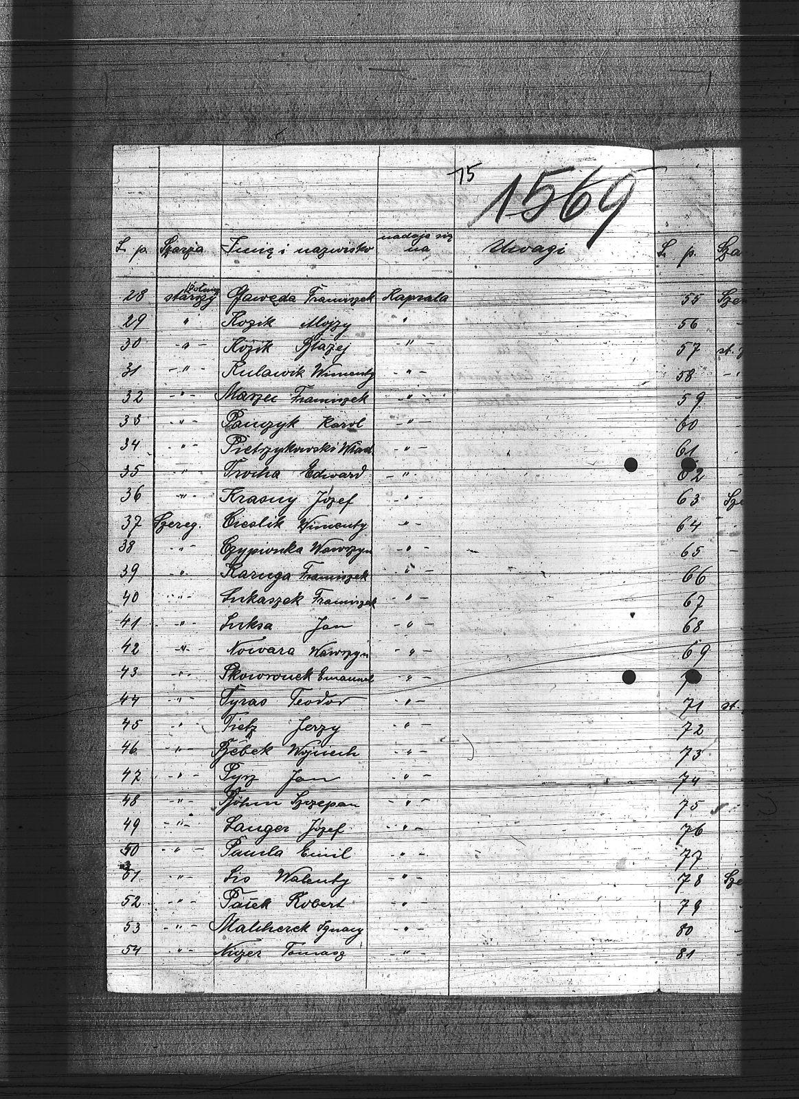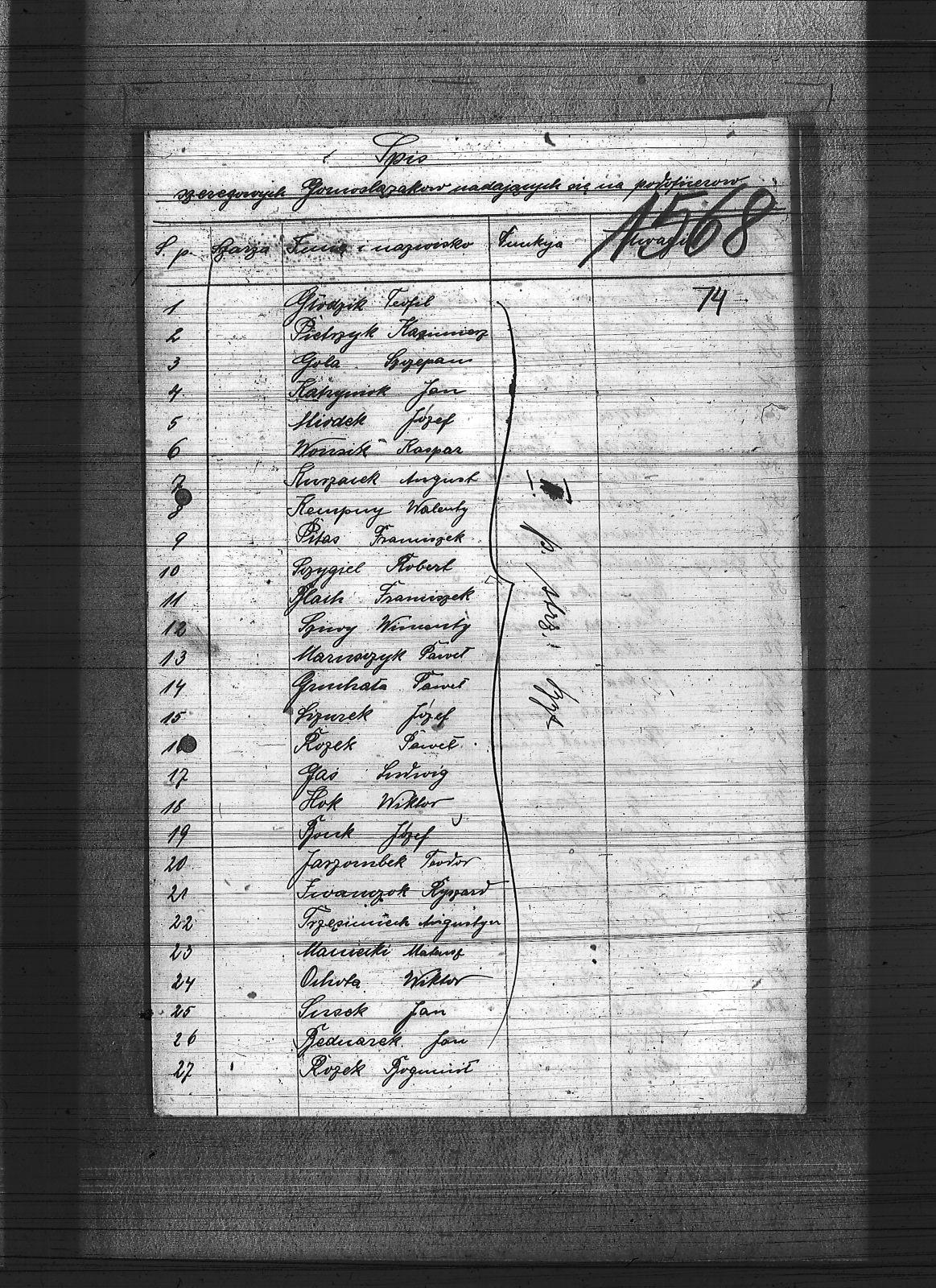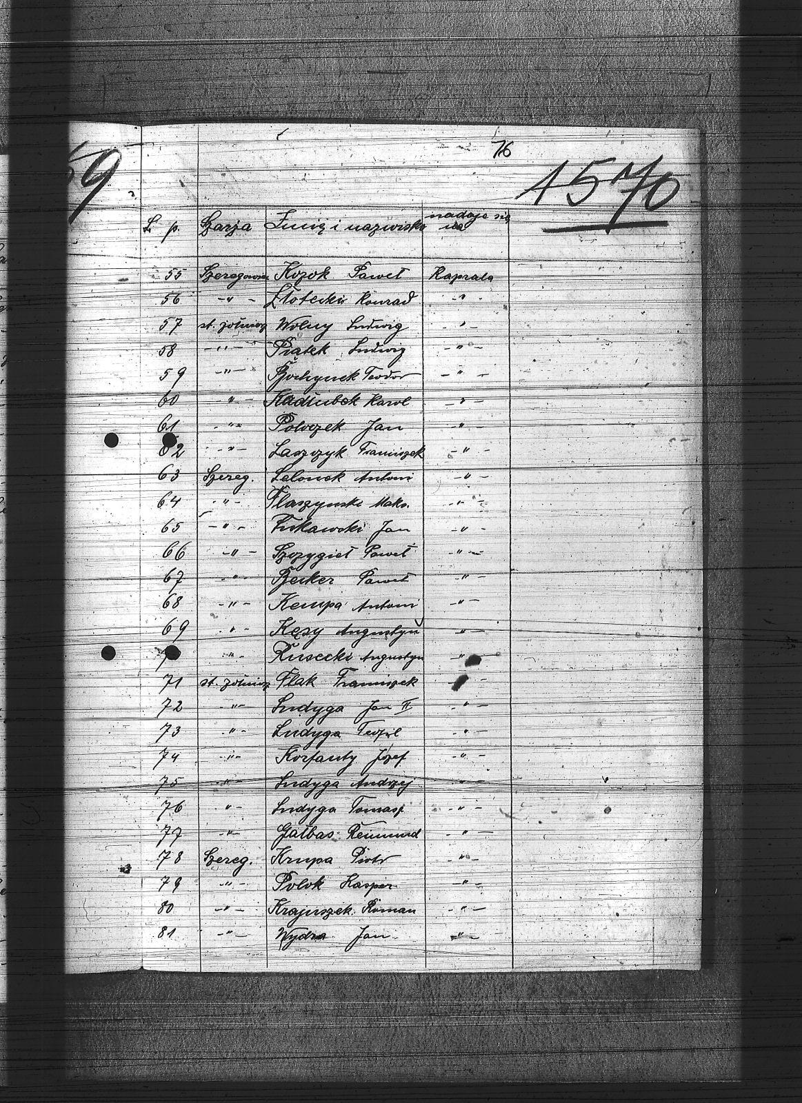 Bebek, Wojciech; Becker, Paweł; Bednarek, Jan; Blach, Franciszek; Bochynek, Teodor; Bohen, Szczepan; Bonk, Józef; Cieślik, Wincenty; Czypionka, Wawrzyniec; Flak, Franciszek; Flaszyński, Maks; Gałbas, Rajmund; Gas, Ludwik; Gawęda, Franciszek; Głodzik, Teofil; Gola, Szczepan; Gruchała, Paweł; Hok, Wiktor; Iwanczok, Ryszard; Jarzombek, Teodor; Kadłubok, Karol; Karuga, Franciszek; Katryniok, Jan; Kempa, Antoni; Kempny, Walenty; Kęsy, Ausustyn; Korfanty, Józef; Kozok, Paweł; Krajuszek, Roman; Krasny, Józef; Krupa, Piotr; Kurzacek, August; Langer, Józef; Laszczyk, Franciszek; Lelonek, Antoni; Lis, Walenty; Lizurek, Józef; Ludyga, Andrzej; Ludyga, Jan II; Ludyga, Teofil; Ludyga, Tomasz; Lukaszek, Franciszek; Luksa, Jan; Malcherek, Ignacy; Maniecki, Mateusz; Maruszczyk, Paweł; Marzec, Franciszek; Mirdek, Józef; Młotecki, Konrad; Niczer, Franciszek; Nowara, Wawrzyn; Ochmanczyk, Wojciech; Ochota, Wiktor; Pacula, Emil; Pająk, Alfons; Pałek, Robert; Pańczyk, Karol; Piątek, Ludwik; Pietrzyk, Kazimierz; Pietrzykowski, Władysław; Pitas, Franciszek; Plonka, Bartłomiej; Poloczek, Jan; Polok, Kasper; Przygiel, Robert; Pyrz, Jan; Rojik, Błażej; Rozek, Bogumił; Rozek, Paweł; Rozik, Alojzy; Rulawik, Wincenty; Rusecki, Augustyn; Skowronek, Emanule; Susok, Jan; Szczygieł, Paweł; Sziwy, Wincenty; Szoja, Franciszek; Tietz, Jerzy; Torkowski, Jan; Trocha, Edward; Trzęsimiech, Augustyn; Tyras, Teodor; Wolny, Ludwik; Wonsik, Kasper; Wydra, Jan; |