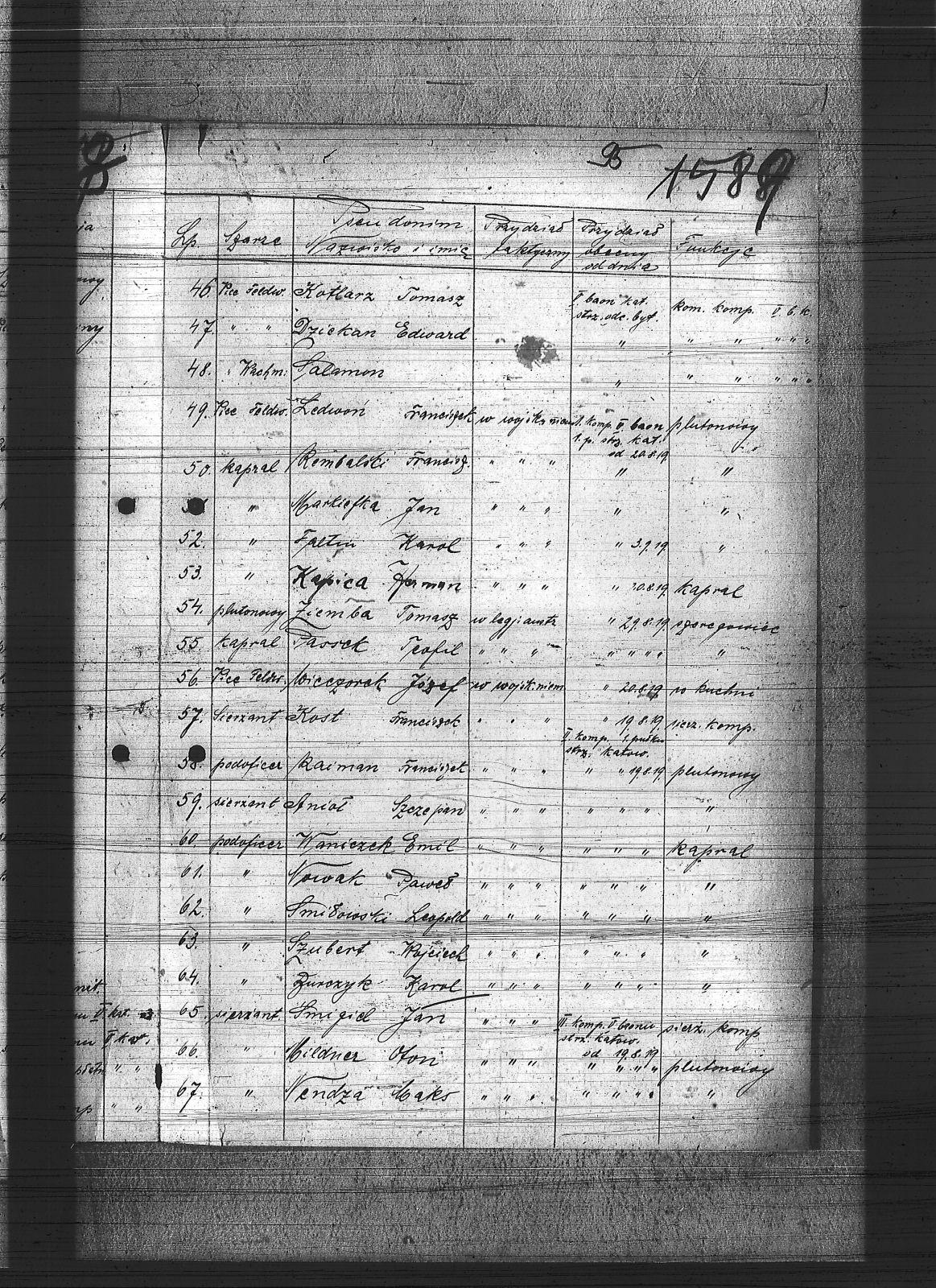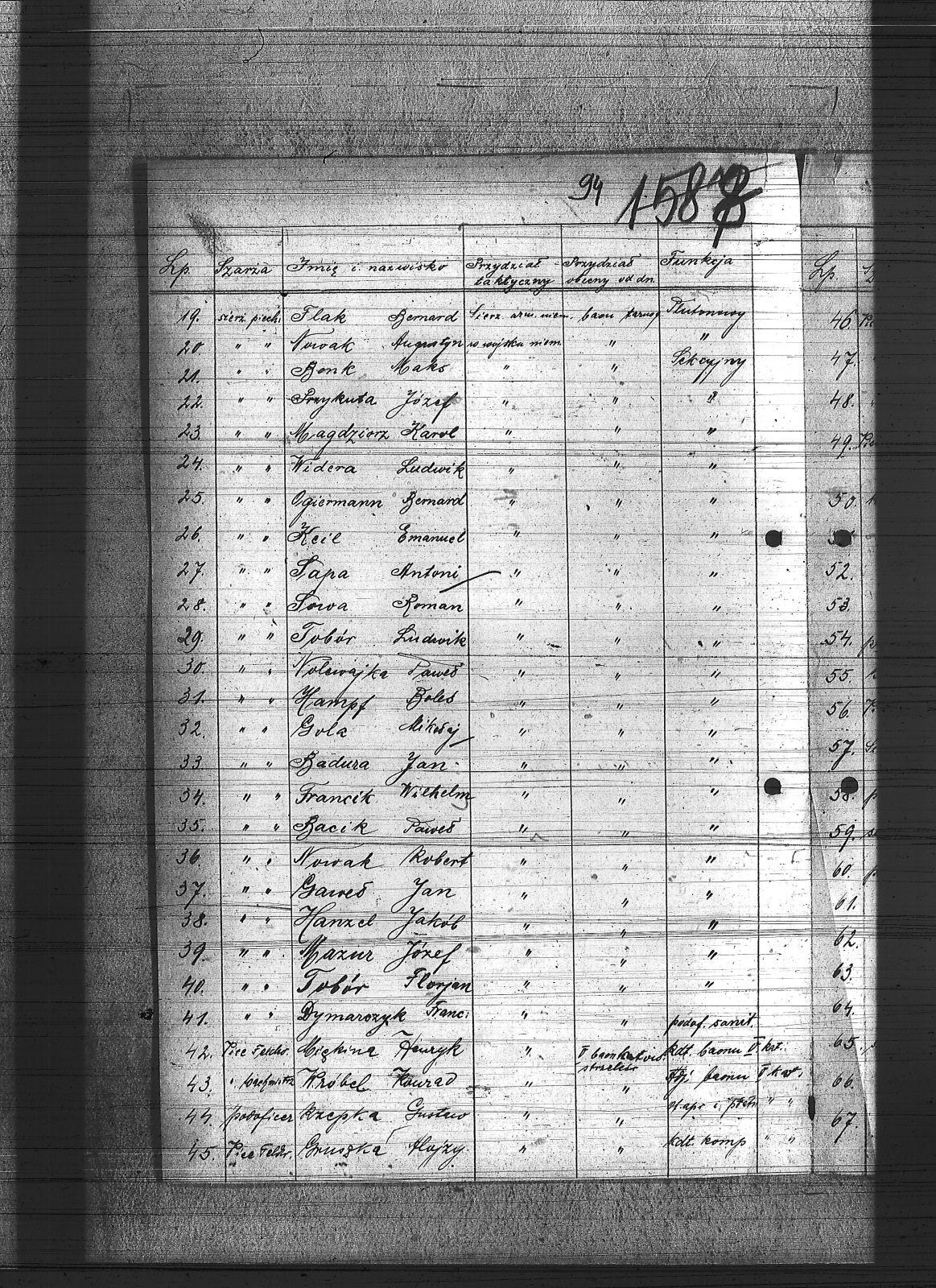 Adamieczki, Klemens; Anioł, Szczepan; Bacik, Paweł; Badura, Jan; Bonk, Maks; Burczyk, Karol; Czaja, Andrzej; Dymarczyk, Franciszek; Dziekan, Edward; Fachin, Karol; Flak, Bernard; Francik, Wilhelm; Gabor, Karol; Gajda, Alojzy; Gaweł, Jan; Głos, Bartłomiej; Gola, Mikołaj; Gola, Wincenty; Gruszka, Alojzy; Gwiżdż, Robert; Hajok, Paweł; Hampf, Bolesław; Hanzel, Ignacy; Henzel, Jakub; Kafka, Hieronim; Kapica, Herman; Keil, Emanuel; Kost, Franciszek; Kotlarz, Tomasz; Krupa, Augustyn; Kuchta, Leopold; Lalurek, August; Ledwoń, Franciszek; Łapa, Antoni; Magdziorz, Karol; Markiefka, Jan; Matejczyk, Paweł; Mazur, Józef; Miedner, Jan; Miękina, Henryk; Miglus, Jan; Musialik, Piotr; Nendza, Maks; Nolewajka, Paweł; Nowak, Augustyn; Nowak, Paweł; Nowak, Robert; Nowak, Stefan; Nowak, Teodor; Ogiermann, Bernard; Paliga, Franciszek; Passek, Teofil; Przykuta, Józef; Raiman, Franciszek; Rembalski, Franciszek; Rzepka, Gustaw; Salomon; Sitko, Wilhelm; Sowa, Roman; Szeliga, Piotr; Szlęga, Aleks; Szubert, Wojciech; Szylor, Józef; Śmigiel, Jan; Śmiłowski, Leopold; Tobór, Florian; Tobór, Ludwik; Tobór, Tomasz; Urbainczyk, Piotr; Waniczek, Emil; Widera, Ludwik; Wieczorek, Józef; Wojtyszka, Alojzy; Wrodarczyk, Paweł; Wróbel, Konrad; Zejer, Jan; Ziemba, Tomasz; |