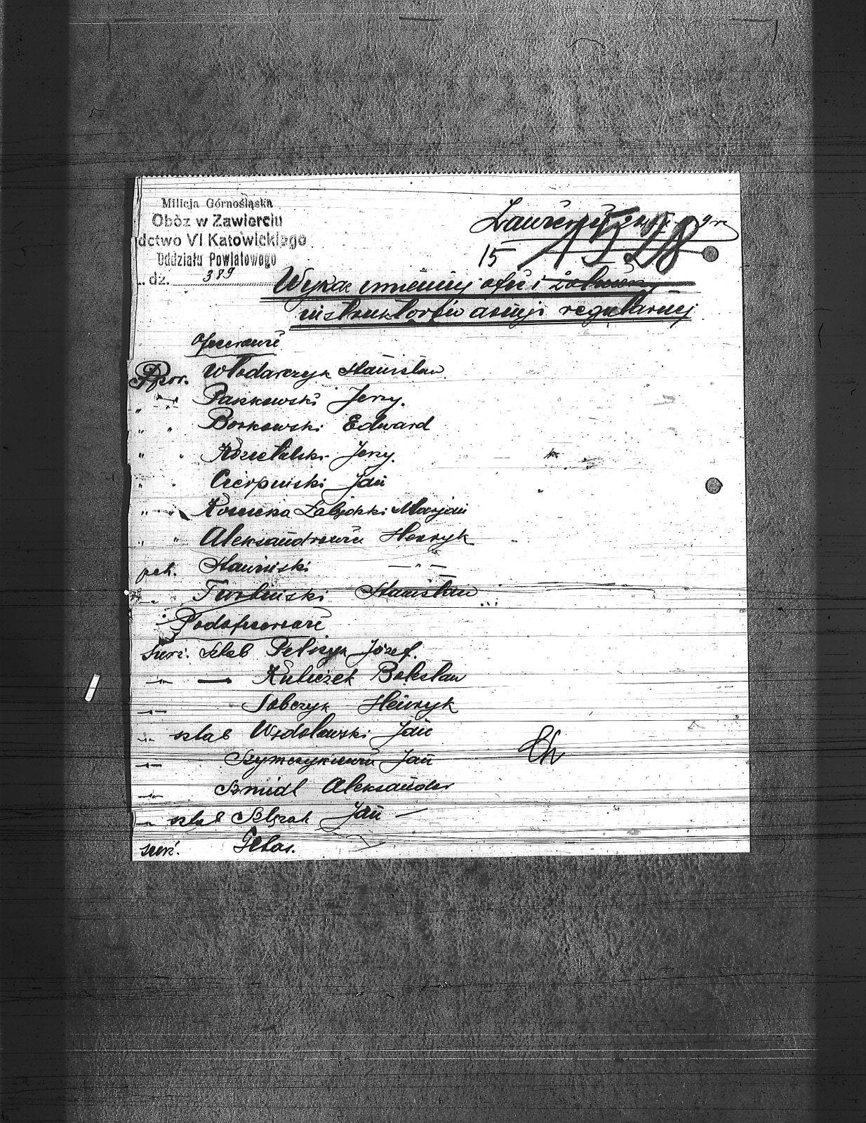 Aleksandrowicz, Henryk; Babicki, Kazimierz; Baranowski, Stanisław; Borkowski, Edward; Chmiel, Roman; Cierpnicki, Jan; Gelas ; Grym, Bogusław; Gwiazda, Zygmunt; Haniwski; Knieja, Aleksander; Kozietulski, Jerzy; Kralewski, Antoni; Kuliczek, Bolesław; Łabędzki, Marian; Niezmecki, Władysław; Paczkowski, Jerzy; Pelczyn, Józef; Ranecki, Zygmunt; Sobczyk, Henryk; Stosz; Szlęzak, Jan; Szmidt, Aleksander; Szubert, Franciszek; Szymczykiewicz, Jan; Turliński, Stanisław; Wędolewski, Jan; Włodarczyk, Stanisław; Ziembicki, Roman; |