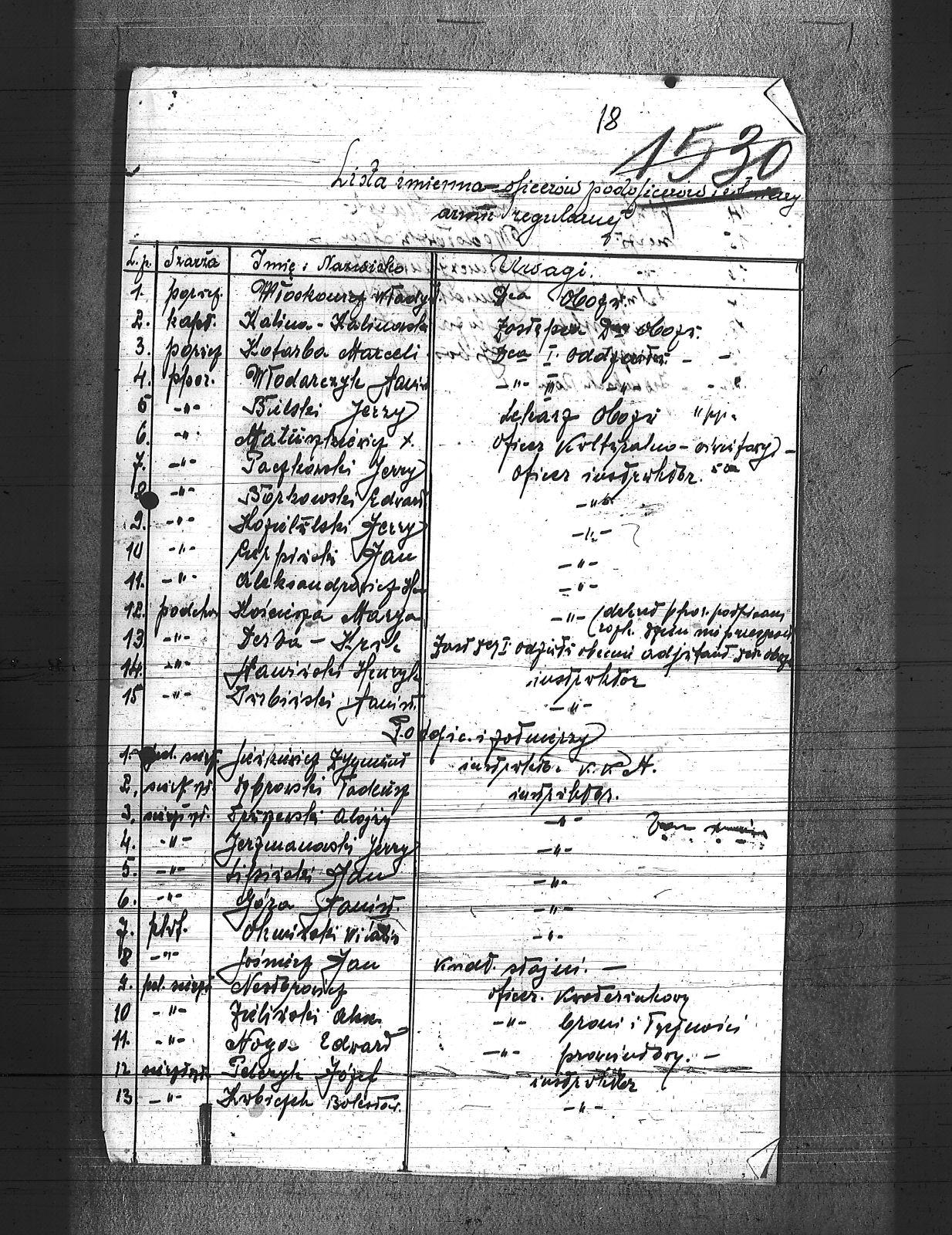 Aleksandrowicz; Babiński, Stanisław; Bielski, Jerzy; Borkowski, Edward; Czerpiński, Jan; Dąbrowski, Tadeusz; Derba-Kruk; Gibos ; Jerzmanowski, Jerzy; Jóra, Stanisław; Kalina-Kalinowski, ; Kościerza, Marian; Kotarba, Marceli; Kozietulski, Jerzy; Kubiczek, Bolesław; Lipiński, Jan; Matuszkiewicz; Nestorowicz; Noga, Edward; Okwiński, Witalis; Paczkowski, Jerzy; Pelczyk, Józef; Sienkiewicz, Zygmunt; Sobczyk, Henryk; Sośnierz, Jan; Stawiński, Henryk; Szmiał; Szymczykiewicz, Jan; Ślązak, Jan; Trurzewski, Alojzy; Wędołowski, Jan; Włodarczyk, Stanisław; Włoskowicz, Władysław; Zieliński, Aleksander; Ziembicki, Roman; |