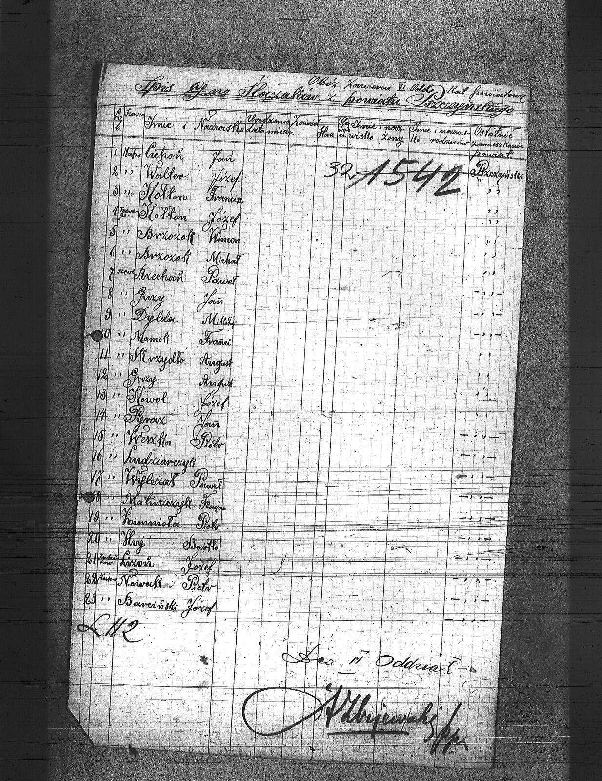 | Osoby | Barciński, Józef; Brzozok, Michał; Brzozok, Wincent; Cichoń, Jan; Dylda, Mikołaj; Guzy, August; Guzy, Jan; Jomnioła, Piotr; Kołton, Franciszek; Kołton, Józef; Kowol, Józef; Leży, Bartłomiej; Lizon, Józef; Ludziarczyk; Mamok, Franciszek; Matuszczyk, Florian; Nowak, Piotr; Pyracz, Jan; Rzechań, Paweł; Skrzydło, August; Walter, Józef; Weszka, Piotr; Wyleżał, Paweł; |