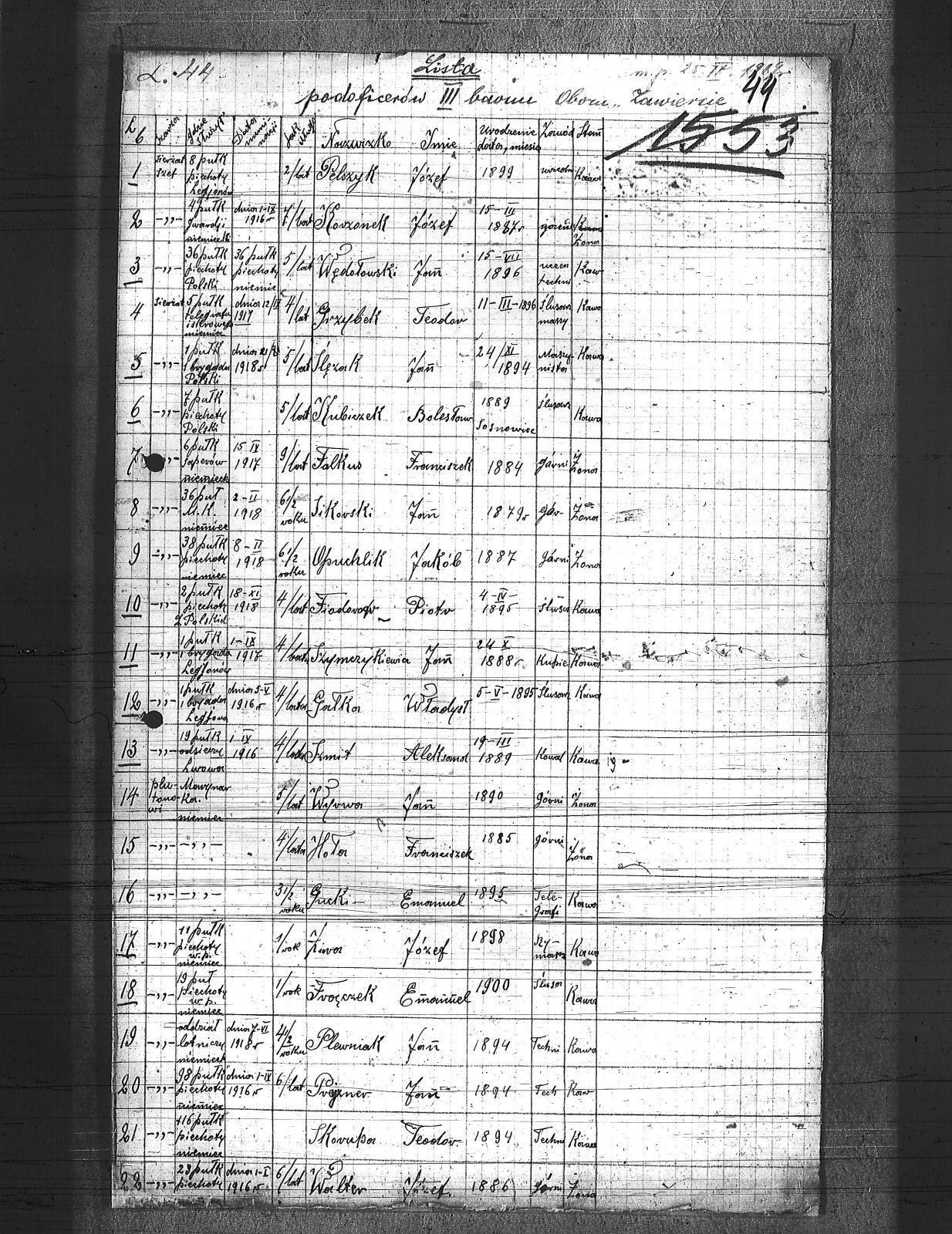 Abramowski, Stefan; Babicki, Kazimierz; Baranowski, Stanisław; Belkie, Teodor; Białek, Ludwik; Bonecki, Henryk; Brzaska, Jan; Celler, Antoni; Chmiel, Roman; Ciechoń, Jan; Czaja, Franciszek; Czech, Wilhelm; Czypionka, Alojzy; Dłubis, Franciszek; Ekiert, Józef; Falkus, Franciszek; Fiodorofr, Piotr; Frączek, Emanuel; Gałka, Władysław; Golda, Szczepan; Gruk, Józef; Grymm, Bogusław; Gucki, Emanuel; Gżybek, Teodor; Hoła, Franciszek; Hośnik, Ludwik; Jaromin, August; Juraszek, Paweł; Kałuża, August; Karkuciński, Eugeniusz; Kmit, Aleksander; Knieja, Aleksander; Kołton, Franciszek; Korolewski, Władysław; Korzonek, Józef; Kowalski, Melchior; Kubiczek, Bolesław; Kura, Józef; Kuzmecki, Władysław; Malich, Paweł; Miernik, Józef; Miller, Stanisław; Mocek, Jan; Mrowiec, August; Musiał, Wojciech; Nowak, Piotr; Opuchlik, Jakób; Pałasz, Józef; Pawłowski, Piotr; Pelszyk, Józef; Plewniak, Jan; Prejzner, Jan; Ranecki, Zygmunt; Sikorski, Jan; Skorupa, Teodor; Stanisławski, Stanisław; Stokosa, Teodor; Surnoga, Franciszek; Szczakowski, Stanisław; Szejdon, Adolf; Szubert, Franciszek; Szymczykiewicz, Jan; Ślęzak, Jan; Targowski, Adam; Urgosz, Franciszek; Walter, Józaf; Waszek, Konrad; Wendołowski, Jan; Wiechoczek, Walenty; Winczowski, Ryszard; Wolski, Władysław; Wójcik, Jakub; Wyrwa, Jan; Zgryzek, Piotr; Ziembicki, Roman; Znoch, Feliks; Zycha, Piotr; |