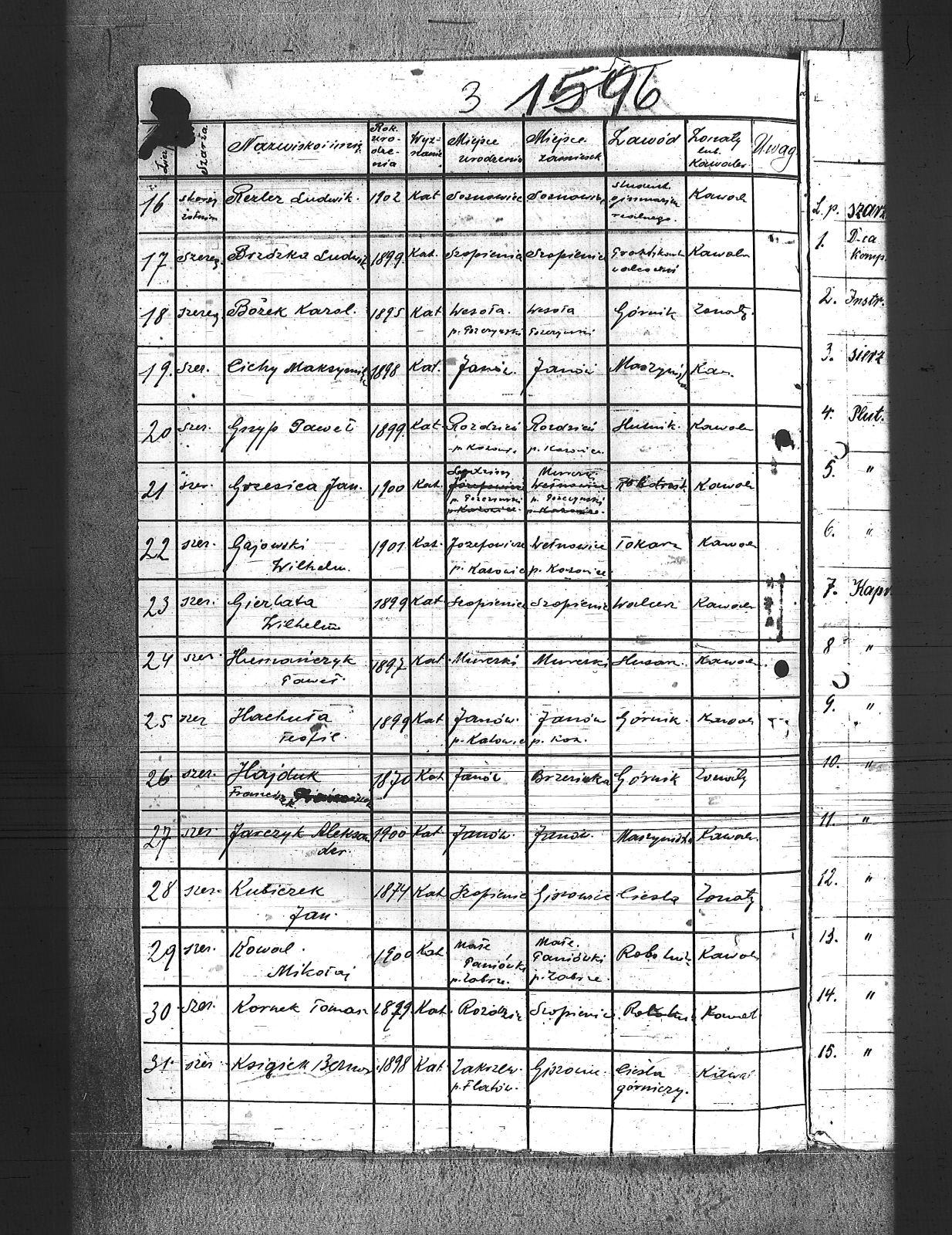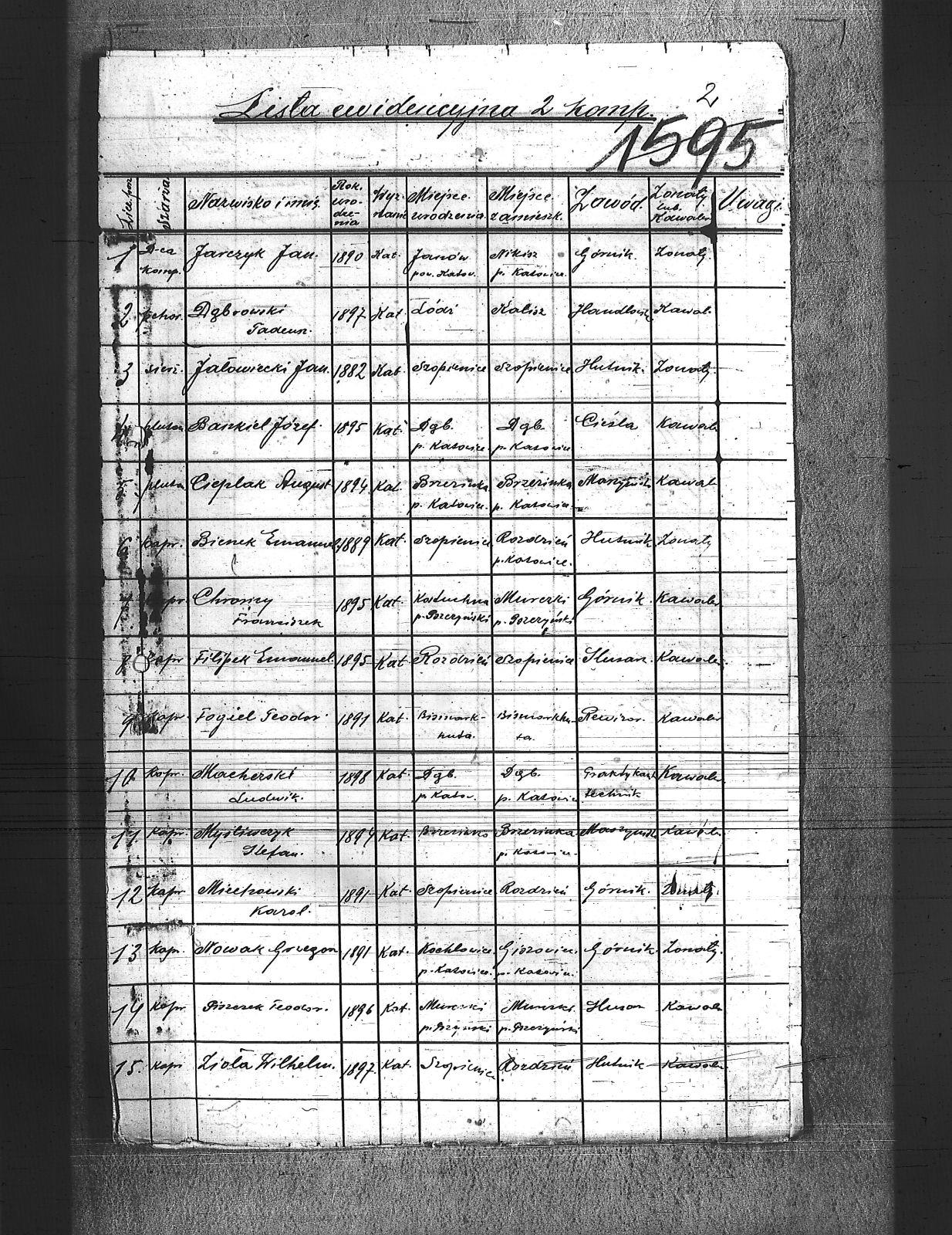 Baszkiel, Józef; Bienek, Emanuel; Bożek, Karol; Brzózka, Ludwik; Chromy, Franciszek; Cichy, Maksymilian; Cieplak, August; Dąbrowski, Tadeusz; Filipek, Emanuel; Fogiel, Teodor; Gajowski, Wilhelm; Gierlata, Wilhelm; Grzesica, Jan; Grzyp, Paweł; Hachuła, Teofil; Hajduk, Franciszek; Humańczyk, Paweł; Jałowiecki, Jan; Jarczyk, Aleksander; Jarczyk, Jan; Kornek, Tomasz; Kowal, Mikołaj; Książek, Bernard; Kubiczek, Jan; Machowski, Ludwik; Miechowski, Karol; Myśliwczyk, Stefan; Nowak, Grzegorz; Piszczek, Teodor; Rezler, Ludwik; Zioła, Wilhelm; |