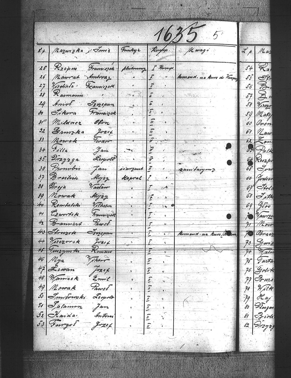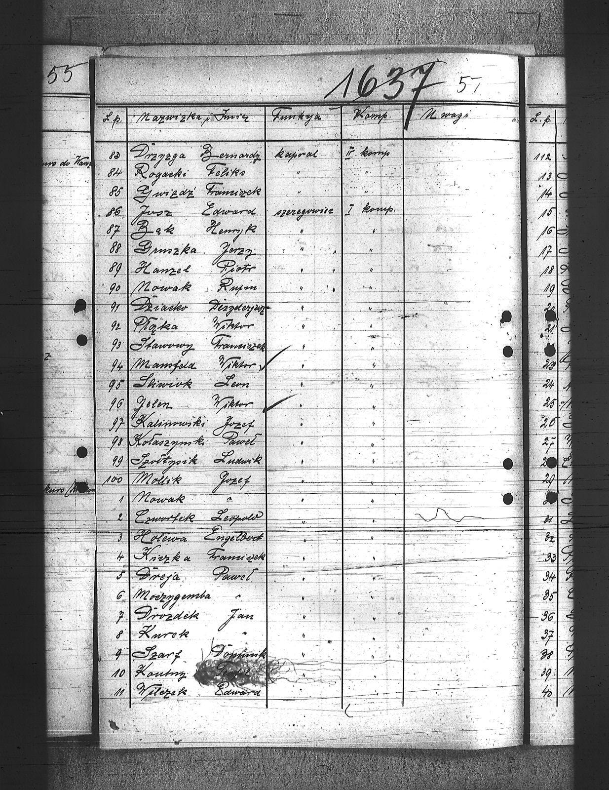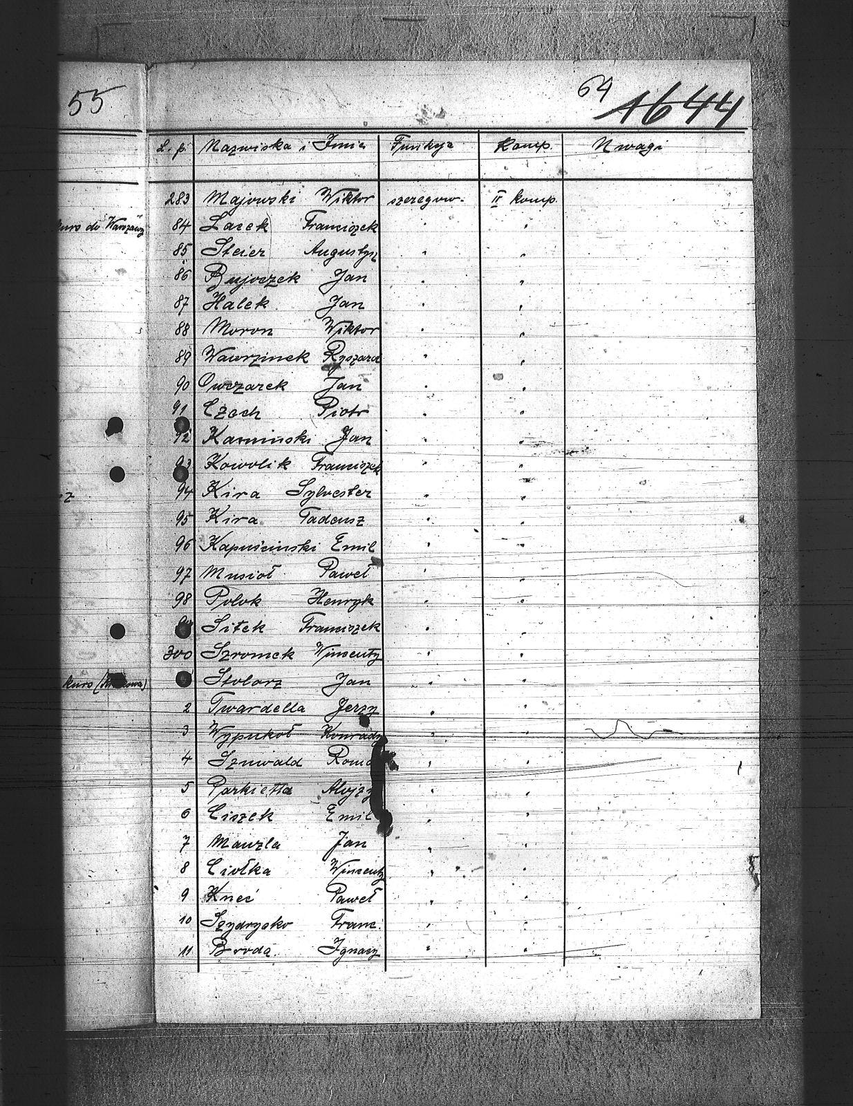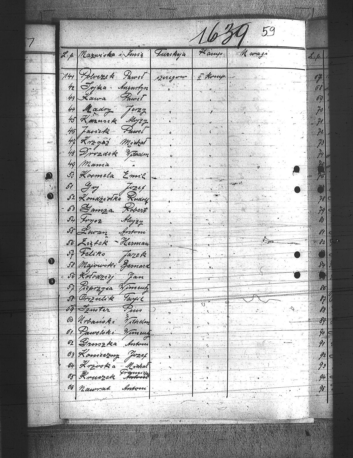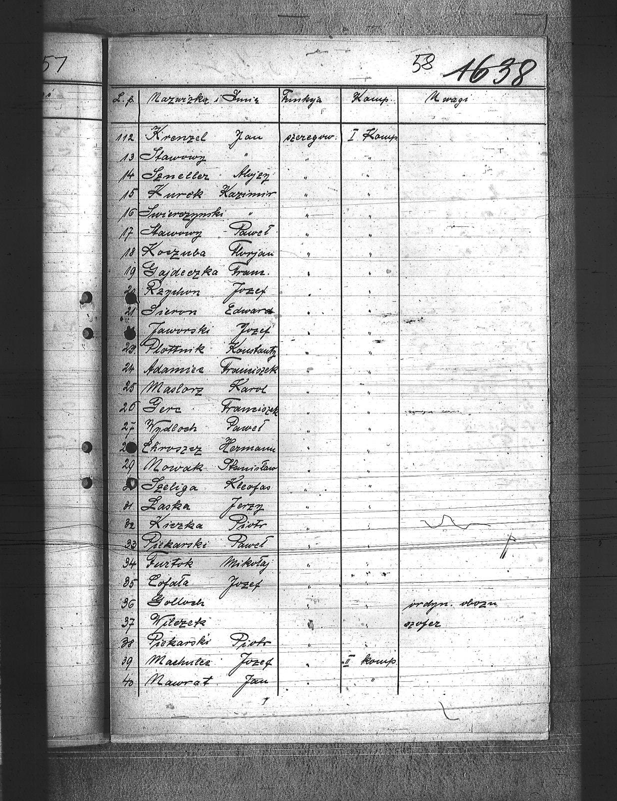 Adamiec, Franciszek; Anioł, Szczepan; Balicki, Edward; Baron, Paweł; Bartoszek, Henryk; Bawiert, Paweł; Bąk, Henryk; Bełkowski, Karol; Bełkowski, Wilhelm; Biolik, Paweł; Blaut, Józef; Brielich, Alojzy; Buchalis, Franciszek; Budarczyk, Józef; Bujoczek, Jan; Burczyk, Karol; Burda, Ignacy; Burek, Tadeusz; Bury, Paweł; Chroszcz, Herman; Ciołka, Wincenty; Ciszek, Emil; Cofała, Józef; Cyprys, Józef; Czaja, Wiktor; Czech, Piotr; Czwortek, Franciszek; Czwortek, Leopld; Czyż, Antoni; De Melane; Dimski, Stefan; Długaiczyk, Jerzy; Długaiczyk, Wojciech; Domogała, Wilhelm; Dreja, Paweł; Dreja, Wacław; Drozdek, Jan; Drozdek, Wilhelm; Drzyzga, Bernard; Drzyzga, Jan; Drzyzga, Leopold; Dylla, Aleksander; Dziacko, Dezyderiusz; Dziekan, Edward; Faltin, Karol; Feliks, Jacek; Filla, Jan; Friedrich, Bernard; Friedrich, Piotr; Frysz, Alojzy; Furgoł, Franciszek; Furgoł, Józef; Furtok, Mikołaj; Gabor, Karol; Gajdeczka, Franciszek; Galeja, Piotr; Gerc, Franciszek; Giełza, Robert; Gilge, Wilhelm; Głos, Bartłomiej; Goj, Józef; Golik, Józef; Golloch; Gorol, Paweł; Góralczyk, Piotr; Gregoracki, Józef; Gruszka, Alojzy; Gruszka, Antoni; Gruszka, Jerzy; Gruszka, Józef; Grzegorzek, Karol; Gwizdz, Robert; Gwiżdż, Franciszek; Haberla, Jan; Hadamik, Jan; Haj, Jan; Hajok, Paweł; Halek, Jan; Hanzel, Piotr; Holewa, Engelbert; Hołotta, Robert; Izydorczok, Franciszek; Janza, Robert; Jasiek, Paweł; Jasionek, Franciszek; Jaszulek, Jan; Jaworski, Jozef; Jeleń, Wiktor; Jezierski, Ludwik; Jochemczyk, Jan; Jusz, Edward; Kaczmarek, Wincenty; Kaczorowski, Jan; Kaida, Antoni; Kalinowski, Józef; Kamiński, Jan; Kapuściński, Emil; Kawa, Paweł; Kempski, Teofil; Kiczka, Franciszek; Kiczka, Piotr; Kira, Sylwester; Kira, Tadeusz; Kneć, Paweł; Koczuba, Florian; Koczubik, Augustyn; Koczurek, Alojzy; Kołaszyński, Paweł; Kołodziej, Jan; Kołodziejczyk, Jan; Kołtorz, Wiktor; Kondziołka, Rudolf; Koniarek, Józef; Konieczny, Edward; Konieczny, Józef; Kontny, Jan; Kontny, Teofil; Kosmala, Karol; Kosmela, Emil; Kost; Kostorz, Teodor; Kotlarz, Tomasz; Kowolik, Franciszek; Krenzel, Jan; Krenzel, Walenty; Kruczek, Franciszek; Krzoska, Michał; Krzyrz, Michał; Krzyścik, Jan; Kubiczek, Roman; Kulawik, Marian; Kurek, Jan; Kurek, Kazimierz; Kurzeja, Jan; Kwiatkowski, Jan; Kwiotek, Paweł; Labuś, Jan; Laska, Jerzy; Ledwoń, Franciszek; Lewań, Antoni; Lewań, Józef; Machulec, Józef; Maciński, Leopold; Maj, Stanisław; Majowski, Bernard; Majowski, Wiktor; Malajka, Karol; Malarek, Jan; Mania; Mansfeld, Wiktor; Manzla, Jan; Mańka, Ignacy; Mańka, Tomasz; Mańkut, Antoni; Markefka, Jan; Masny, Jan; Maślorz, Karol; Matejasik, Jan; Matuszka; Mądry, Jerzy; Mierzwa, Józef; Miękina, Henryk; Mildner, Oton; Miłek, Walenty; Moczygemba, Paweł; Moll, Franciszek; Mollik, Józef; Moroń, Wiktor; Mrozek, Wilhelm; Musioł, Jan; Musioł, Paweł; Mysior, Wincenty; Nawrat, Ambroży; Nawrat, Antoni; Nawrat, Emil; Nawrat, Jan; Nendza, Maks; Nestorowicz, Mieczysław; Nielaba, Robert; Nowak, Alfred; Nowak, Alojzy; Nowak, Jozef; Nowak, Paweł; Nowak, Rufin; Nowak, Stanisław; Nowak, Stefan; Nowak, Teodor; Nowicki, Bernard; Nyc, Wiktor; Obrączka, Józef; Olszowka, Wilhelm; Orendorz, Karol; Orendorz, Maks; Orszulik, Teofil; Owczarek, Jan; Pająk, Jan; Palka, Franciszek; Pampuch, Jerzy; Pandzik, Franciszek; Pandzik, Józef; Parkiełła, Alojzy; Pawelski, Wincenty; Pessel, Józef; Piecha, Teodor; Piekarski, Paweł; Piekarski, Piotr; Pieprzyna, Wincenty; Pietrecki, Jan; Plaża, Józef; Plottnik, Konstany; Pluta, Augustyn; Płąka, Wiktor; Podczaski, Stanisław; Pokładnik, Józef; Poloczek, Paweł; Polok, Henryk; Połednik, Robert; Pronobis, Jan; Przeliorz, Leopold; Przybyla, Maks; Puchałka, Józef; Raimann; Rataj, Paweł; Rechowicz, Antoni; Rembalski, Franciszek; Rembalski, Wilhelm; Rogacki, Feliks; Roszpondek, Stanisław; Russin, Jan; Rzepka, Gustaw; Rzepus, Franciszek; Rzeźniczek, Ludwik; Rzychoń, Jozef; Rzyłka, Paweł; Salamon, Jan; Salamon, Ludwik; Sarek, Franciszek; Sieroń, Edwrad; Sikora, Franciszek; Sitek, Franciszek; Sitko, Wilhelm; Smolarczyk, Hubert; Smolarek, Jan; Smolawa, Edward; Sobel, Jan; Sojka, Augustyn; Solorz, Roman; Sosna, Wilhelm; Sowa, Bernard; Spyra, Stanisław; Srteibel, Franciszek; Stachurski, Ignacy; Stalmach, Wincenty; Staroń, Teofil; Stawowy, Franciszek; Stawowy, Jan; Stawowy, Paweł; Stegman, Jan; Steier, Augustyn; Stolarczyk, Artur; Stolarz, Jan; Stolorz, Jan; Streibel, Karol; Streibel, Paweł; Strużek, Szczepan; Strzelczyk, Józef; Styś, Stanisław; Sussek, Alojzy; Swaczyna, Robert; Szafranek, Teodor; Szarf, Dominik; Szefer, Alojzy; Szefer, Maks; Szeliga, Kleofas; Szmaiduch, Franciszek; Szmatloch, Alfons; Szneider, Jan; Szneller, Alojzy; Szołtysik, Ludwik; Szromek, Wincenty; Szubert, Wojciech; Szuster, Pius; Szuwald, Roman; Szymonik, Stanisław; Śliwiok, Leon; Śmigiel, Jan; Śmigiel, Władysław; Śmiłowski, Leopold; Świerczyński, Kazimierz; Tartas, Franciszek; Tos, Roman; Tuszyński, Roman; Twardella, Jerzy; Tyka, Józef; Urbański, Wilhelm; Walus, Paweł; Wanicek, Emil; Wawrzinek, Ryszard; Wawrzinek, Teodor; Widera, Stanisław; Wiechuła, Franciszek; Wieczorek, Jerzy; Wieczorek, Józef; Wieczorek, Leopold; Wilczek, ; Wilczek, Edward; Wilk, Wilhelm; Właczawczyk, Karol; Wois, Alojzy; Woitala, Antoni; Wojtoń, Antoni; Wróbel, Antoni; Wróbel, Karol; Wróbel, Konrad; Wydloch, Paweł; Wypior, Piotr; Wypukoł, Konrad; Zdebel, Jan; Zdebel, Karol; Zieloski, Wilhelm; Ziętek, Herman; Zogala, Józef; Zontag, Emanuel; Zygmundzik, Konrad; Żoczek, Ludwik; Żok, Wiktor; |