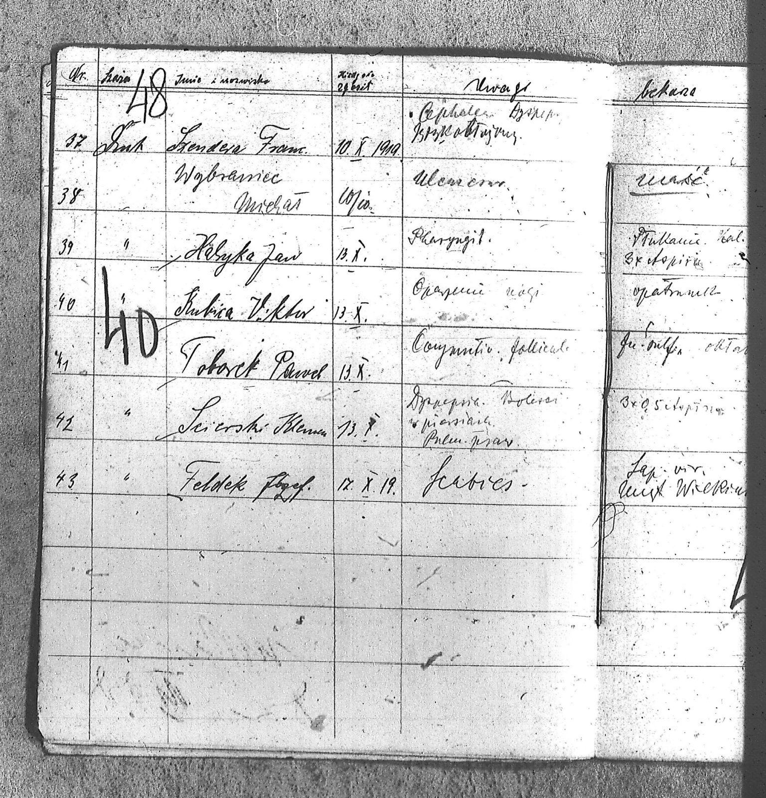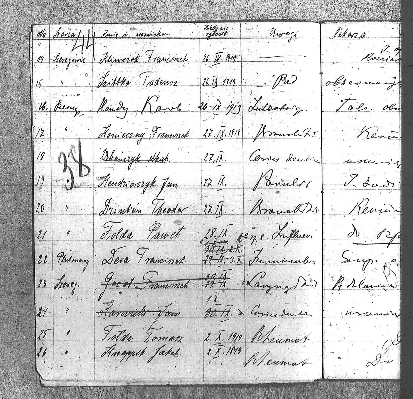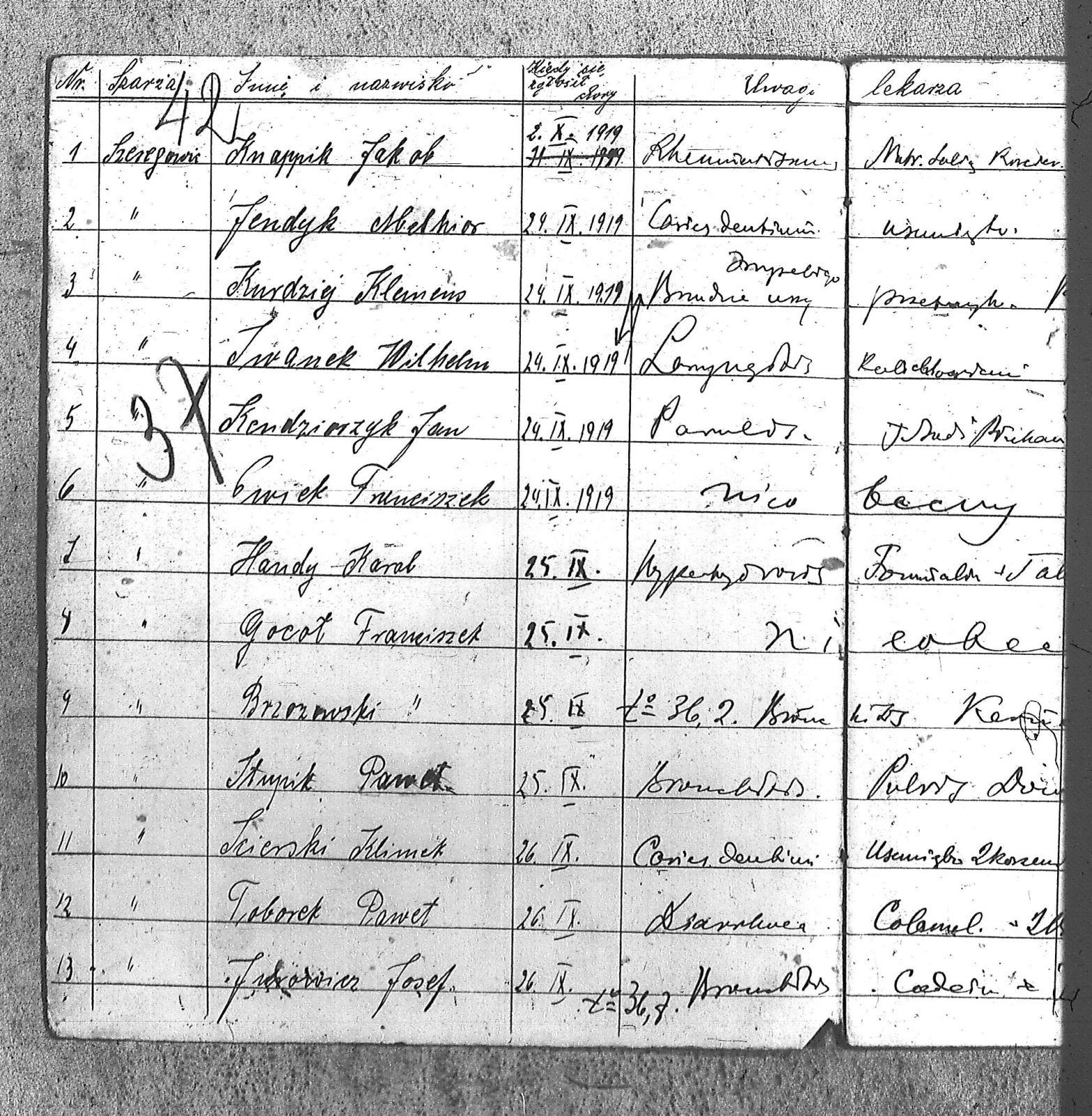 Brzozowski, Franciszek; Cwiek, Franciszek; Dera, Franciszek; Dzintun, Theodor; Feldek, Józef; Folda, Paweł; Fołda, Tomasz; Gocot, Franciszek; Habryka, Jan; Handy, Karol; Iwanek, Wilhelm; Jendyk, Melhior; Jurowicz, Josef; Jurowicz, Józef; Jurowik, Józef; Karwicki, Jan; Kendziorczyk, Jan; Kendziorzyk, Jan; Klimczok, Franciszek; Knappik, Jakob; Konieczny, Franciszek; Kubica, Wiktor; Kurdziej, Klemens; Stokossa, Jan; Stupik, Paweł; Szendera, Franciszek; Szittko, Tadeusz; Ścierski, Klemens; Ścierski, Klimek; Toborek, Paweł; Urbańczyk, Michał; Wybraniec, Michał; Wybranik, Michał; |