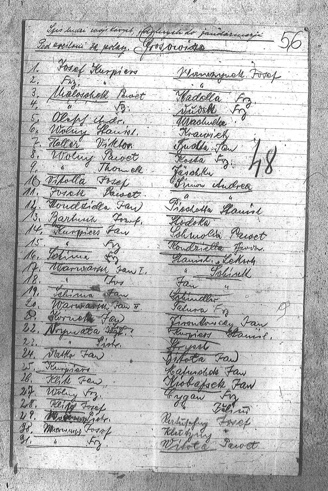 [Brymała], Piotr; [Vubik], Franciszek; Bartusik, Józef; Bednarek; Bednarek, Piotr; Bilota, Jan; Boschnitzka; Brymała, Ignacy; Buchta, Jan; Buchta, Paweł; Cygan, Franciszek; Cygan, Juliusz; Farzek; Fosek, Paweł; Gregosch, Stanisław; Gromotka, Gregor; Holler, Viktor; Hugo; Jaschka; Jaschkowitz, Alois; Jaschkowitz, Jul.; Jironkowski, Jan; Kadella, Franciszek; Kala, Jan; Karbowiok; Kazuba, Gregor; Kiobatsek, Jan; Klik, Jan; Klik, Josef; Kondziella, Jacob; Kondziella, Jan; Kondziella, Stanisław; Kornek, Jan; Kosta, Franciszek; Kowol, Józef; Krawietz; Krupop; Kurpierz; Kurpierz, Franciszek; Kurpierz, Jan; Kurpierz, Józef; Kurpierz, Stanisław; Kurz, Piotr; Langosek, Josef; Lekwa, Stanisław; Łazoka, Piotr; Łazoka, Roy; Matuschek, Jan; Mieloschek, Franciszek; Mieloschek, Paweł; Morciński; nieczytelne, Andrea; Passon; Passon, Haller; Passon, Jacub; Passon, Józef; Pichotta; Piechotta, Stanisław; Scheschnoik, ; Schima, Franciszek; Schima, Jan; Schimel, Richard; Schindler; Schink, Stanisław; Schmolier, Paweł; Singer; Sobinek, Jan; Sobinek, Stanisław; Sowietzky; Springer; Standt, Peter; Talura, Franciszek; Ubitko, Jan; Vitolla, Josef; Warwaszek, Jan I; Warwaszek, Jan II; Warwaszek, Josef; Warwaszek, Paweł; Wawrzynek, Józef; Wilota, Paweł; Wolny, Franciszek; Wolny, Paweł; Wolny, Stanisław; Wolny, Tomasz; Woschek, Alfons; |