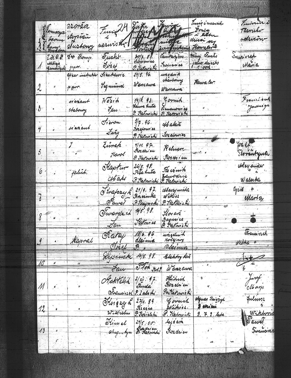 | Osoby | Achtelik, Franciszek; Fuchs, Józef; Kaptur, Maks; Kimel, Augustyn; Krafczyk, Paweł; Księżyk, Wilhelm; Lipiński, Jan; Rataj, Józef; Sienkiewicz, Zygmunt; Sieroń, Jerzy; Twardzik, Jan; Wozik, Jan; Żurek, Karol; |