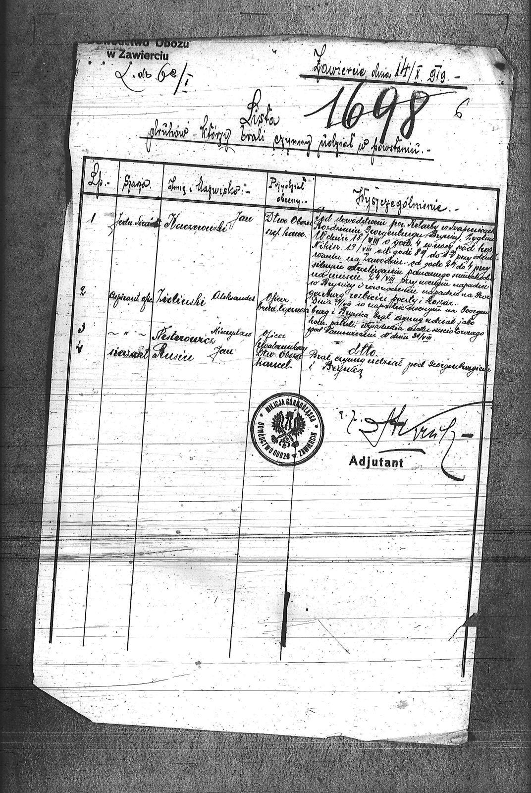 Osoby Kaczorowski, Jan; Nesterowicz, Mieczysław; Rusin, Jan; Zieliński, Aleksander;