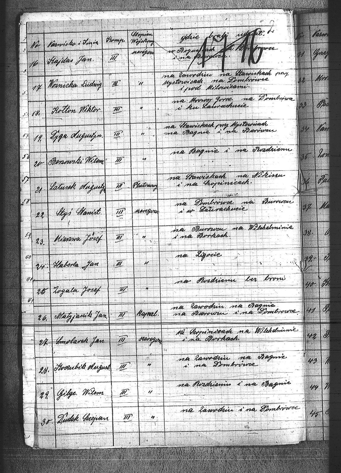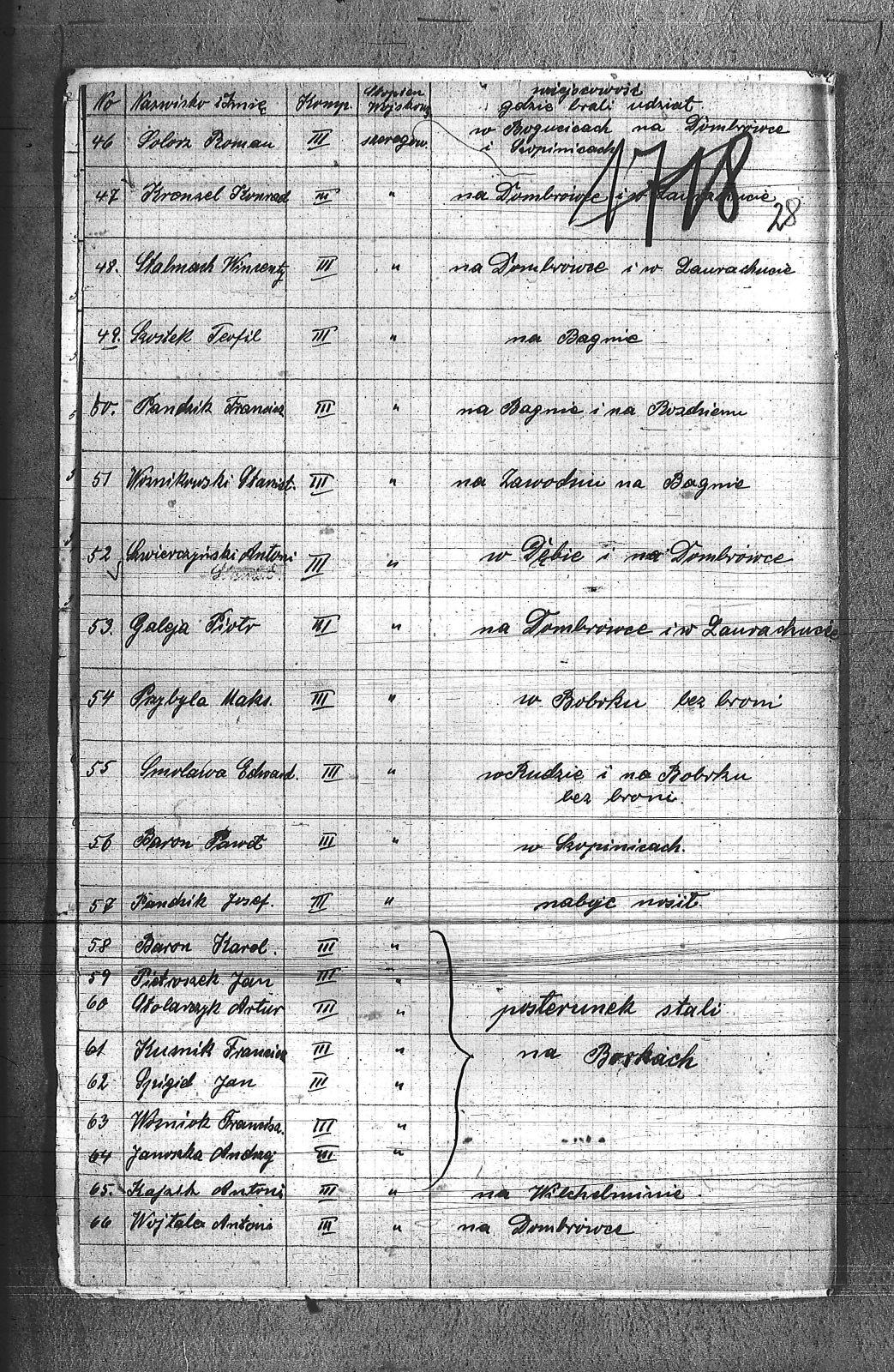 Balicki, Edward; Baron, Karol; Baron, Paweł; Berzowski, Wilem; Drendorz, Karol; Dudek, Szczepan; Dyga, Augustyn; Dylla, Aleksander; Fajkis, Józef; Fridrich, Bernard; Galeja, Piotr; Gilge, Wilem; Gnida, Teodor; Gruszka, Alojzy; Grzegorzak, Karol; Haberla, Jan; Janoszka, Andrzej; Jarek, Paweł; Jaryga, Emanuel; Kajach, Antoni; Kajdas, Jan; Koczubik, Augustyn; Kołtun, Wiktor; Kronzel, Konrad; Kronzel, Walenty; Kusnik, Franciszek; Latusek, Augustyn; Mańka, Ignacy; Matyjasik, Jan; Mierzwa, Józef; Miłek, Emanuel; Miłek, Walenty; Mrozek, Konstanty; Mrozek, Wilem; Nawrat, Emil; Nendza, Maksymilian; Oleś, Robert; Palka, Franciszek; Pandzik, Framciszek; Pandzik, Józef; Passel, Józef; Pietrecki, Jan; Piotroszek, Jan; Prugiel, Jan; Przybyla, Maksymilian; Puchalka, Józef; Reszpondek, Józef; Smolarek, Jan; Smolawa, Edward; Solorz, Roman; Sowa, Bernard; Stalmach, Wincenty; Stolarczyk, Artur; Styś, Stanisław; Szostek, Teofil; Śmigiel, Jan; Śmigiel, Władysław; świerczyński, Antoni; Widera, Stanisław; Wojtala, Antoni; Woznicha, Ludwig; Woźnikowski, Stanisław; Woźniok, Franciszek; Wróbel, Antoni; Zogala, Józef; Zontag, Emanuel; |