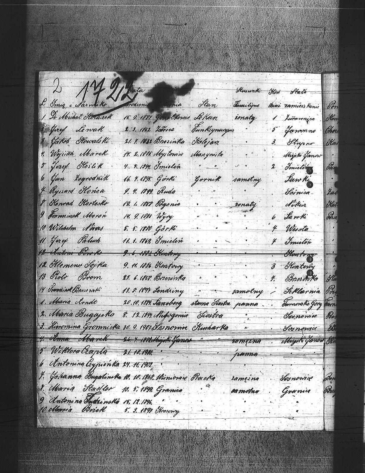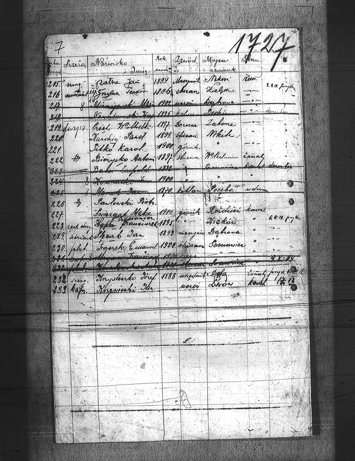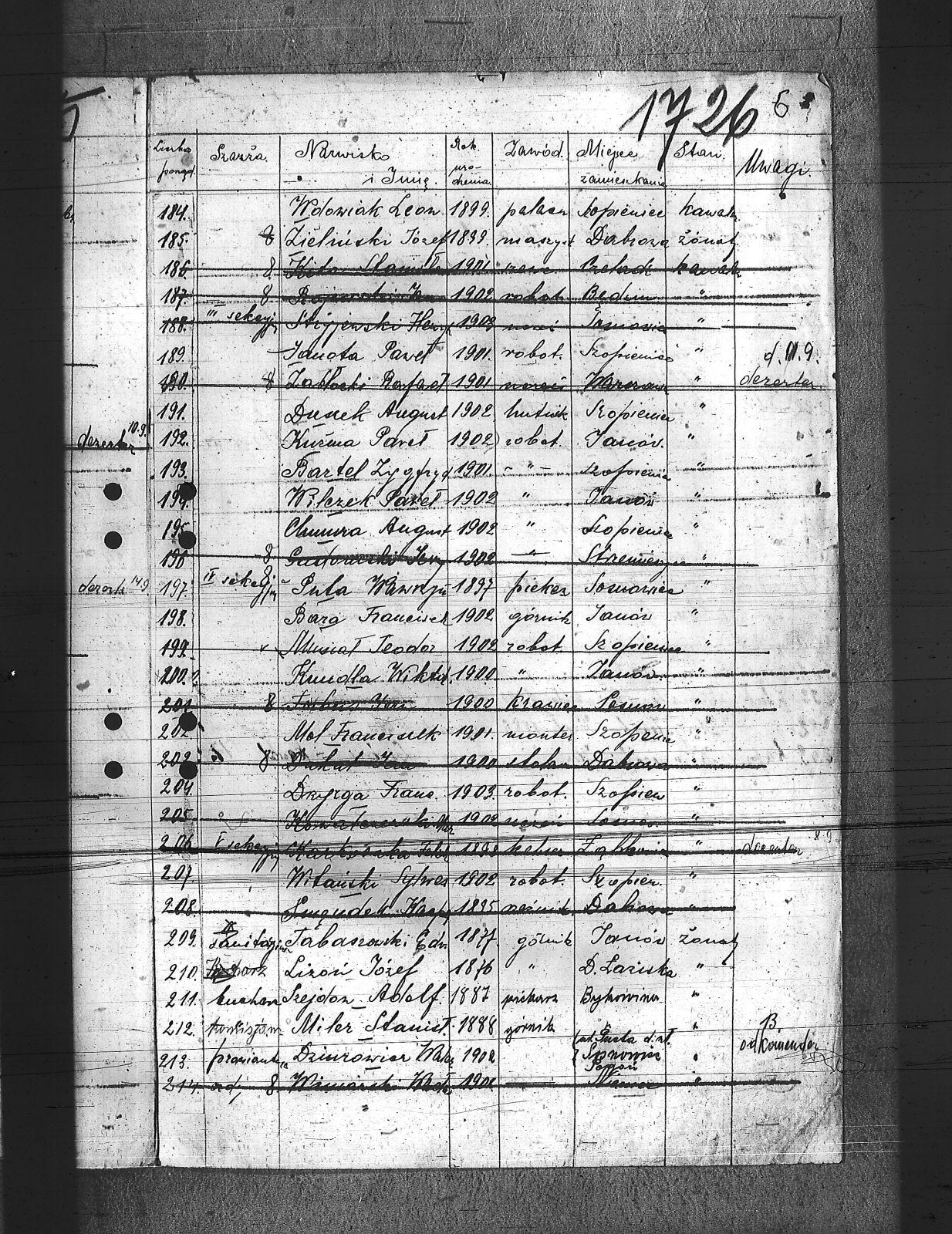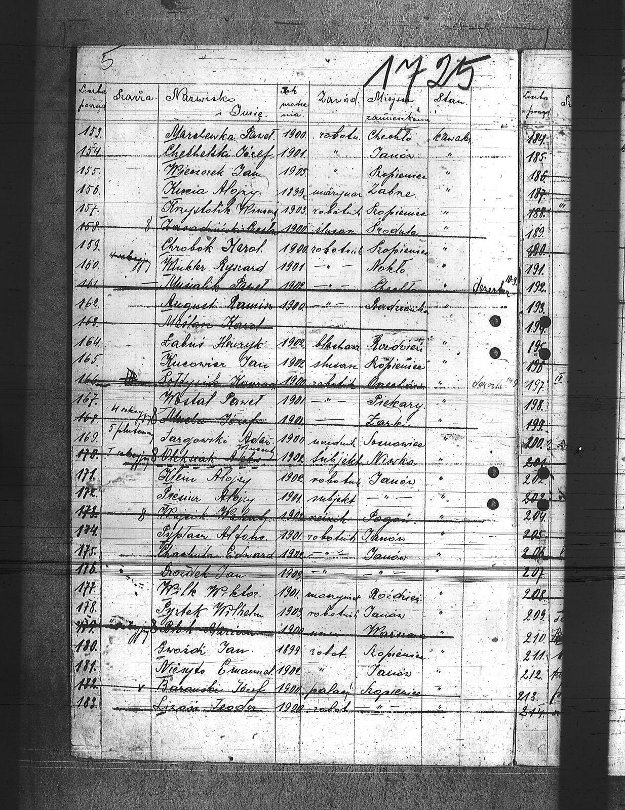 Arndt, Maria; Barański, Józef; Bartel, Zygfryd; Baza, Franciszek; Bierzysko, Antoni; Bożek, Maria; Brom, Piotr; Brzozowski, Franciszek; Bugajska, Maria; Bugalińska, Joanna; Chachuła, Edward; Chechelski, Józef; Chmura, August; Chrobok, Karol; Cyka, Franciszek; Czapla, Wiktora; Czech, Wilhelm; Czynowicz, Franciszek; Czypiońka, Antonina; Drozdek, Jan; Drzyzga, Franciszek; Duszek, August; Dziurowicz, Walenty; Figura, Józef; Franek, Emanuel; Fudała, Rudolf; Fuks, Konrad; Gałuszka, Jan; Gońdzik, Józef; Gromnicka, Hieromina; Grzybek, Teodor; Gwóżdz, Jan; Janota, Paweł; Kircia, Alojzy; Klein, Alojzy; Knapik, Antoni; Kolaczek, Michał; Końca, Ryszard; Kortecko, Konrad; Kowalski, Alojzy; Kowalski, Jakub; Kowalski, Jan; Koźlik, Józef; Krzycholik, Wincenty; Krzysteczko, Józef; Krzywiecki, Jan; Kucowicz, Jan; Kundla, Wiktor; Kurdziej, Paweł; Kusek, Józef; Kużma, Paweł; Lewak, Józef; Lizoń, Józef; Lizoń, Teodor; Łabuś, Henryk; Łazgowski, Adam; Marchewka, Paweł; Marek, Anna; Marek, Wojciech; Marzec, Józef; Miler, Stanisław; Mol, Franciszek; Moroń, Franciszek; Musialik, Paweł; Musioł, Teodor; Niebiś, Józef; Niesyto, Emanuel; Noras, Wilhelm; Nowakowski, Józef; Oleksiak, Aleksander; Ostrowski, Zbigniew; Paluch, Józef; Pałka, Jan; Pawłowski, Piotr; Prenier, Alojzy; Pula, Wawrzyn; Purek, Wilhelm; Pyrtek, Stanisław; Pyrtek, Wilhelm; Pytałacz, Alfons; Ramisz, August; Sitko, Karol; Sojka, Klemens; Sołtysik, Konrad; Stadler, Maria; Synowiec, Emanuel; Szejdon, Adolf; Szoslek, Ludwik; Szyjewski, Henryk; Ślęzak, Jan; świergot, Maksymilian; Tobaszowski, Edward; Ulman, August; Ulman, Wilhelm; Waskal, Paweł; Wdowiak, Leon; Wiakler, Ryszard; Wieczorek, Jan; Wilański, Sylwester; Wilczek, Paweł; Wilk, Wiktor; Wójcik, Walenty; Wroński, Wiktor; Zabłocki, Rafael; Zagrodnik, Jan; Zielnicki, Józef; Ziora, Józef; Zudzińska, Antonina; |