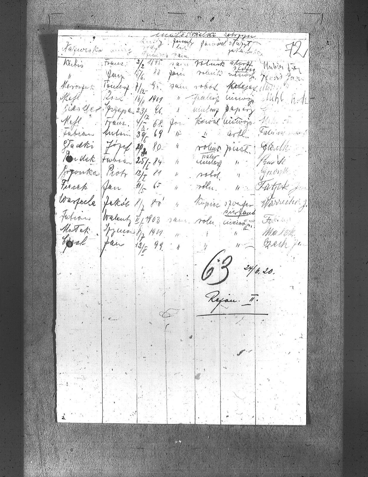 | Osoby | Czech, Jan; Dudek, Fabian; Fabian, Antoni; Fabian, Walenty; Fiecek, Jan; Giesler, Szczepan; Gładki, Józef; Kubis, Franciszek; Kubis, Jan; Małek, Szymon; Maroszek, Tomasz; Mehl, Franciszek; Mehl, Roch; Szponka, Piotr; Warzecha, Jakób; |