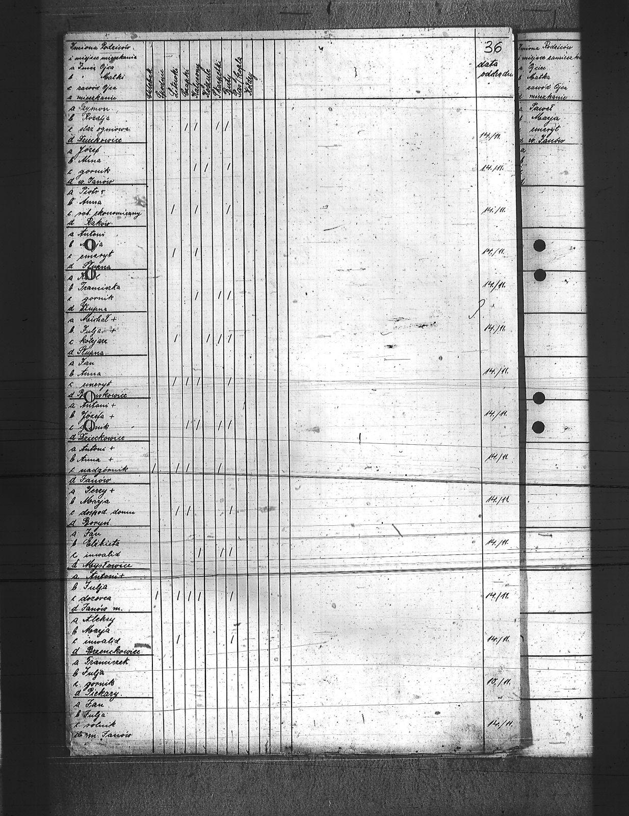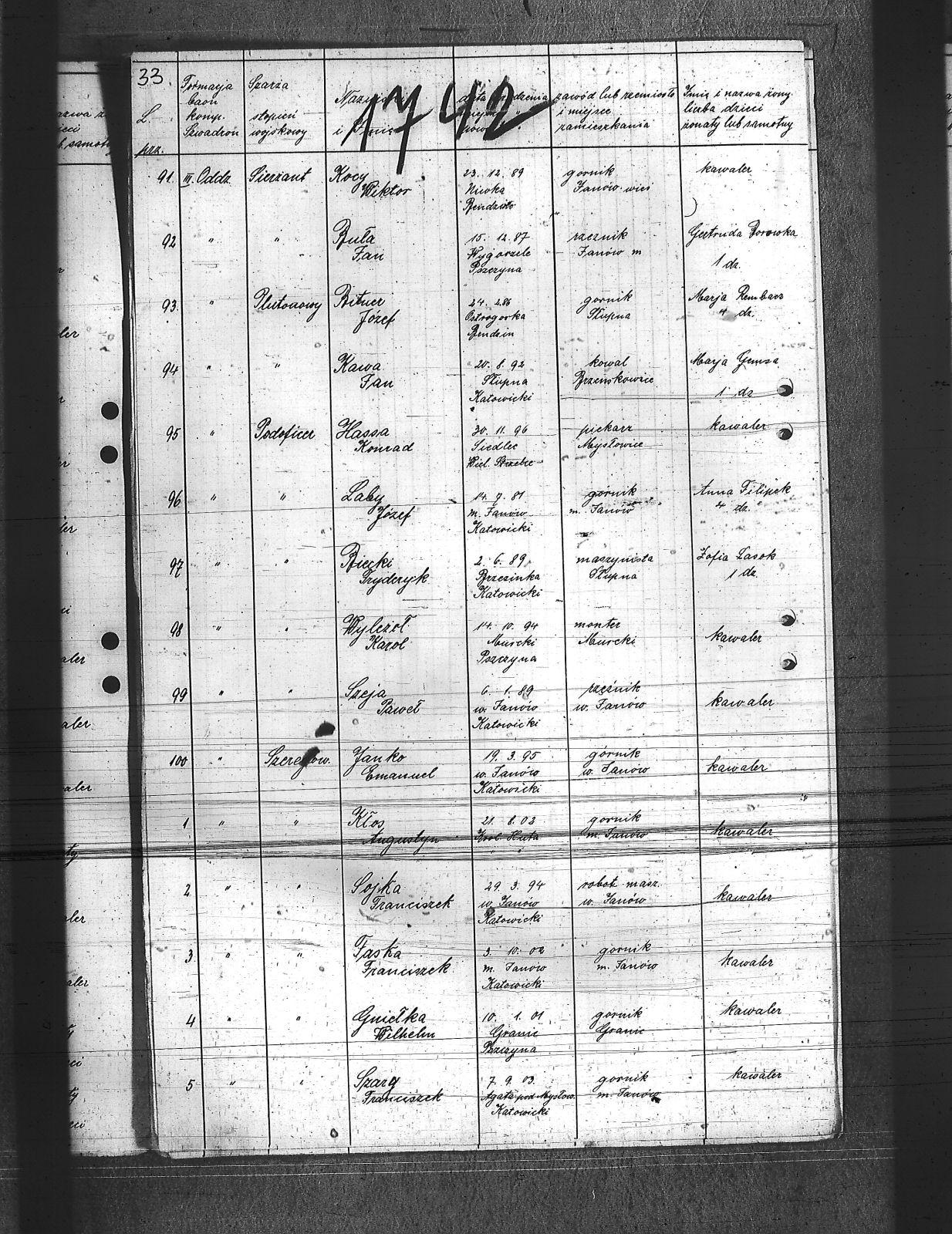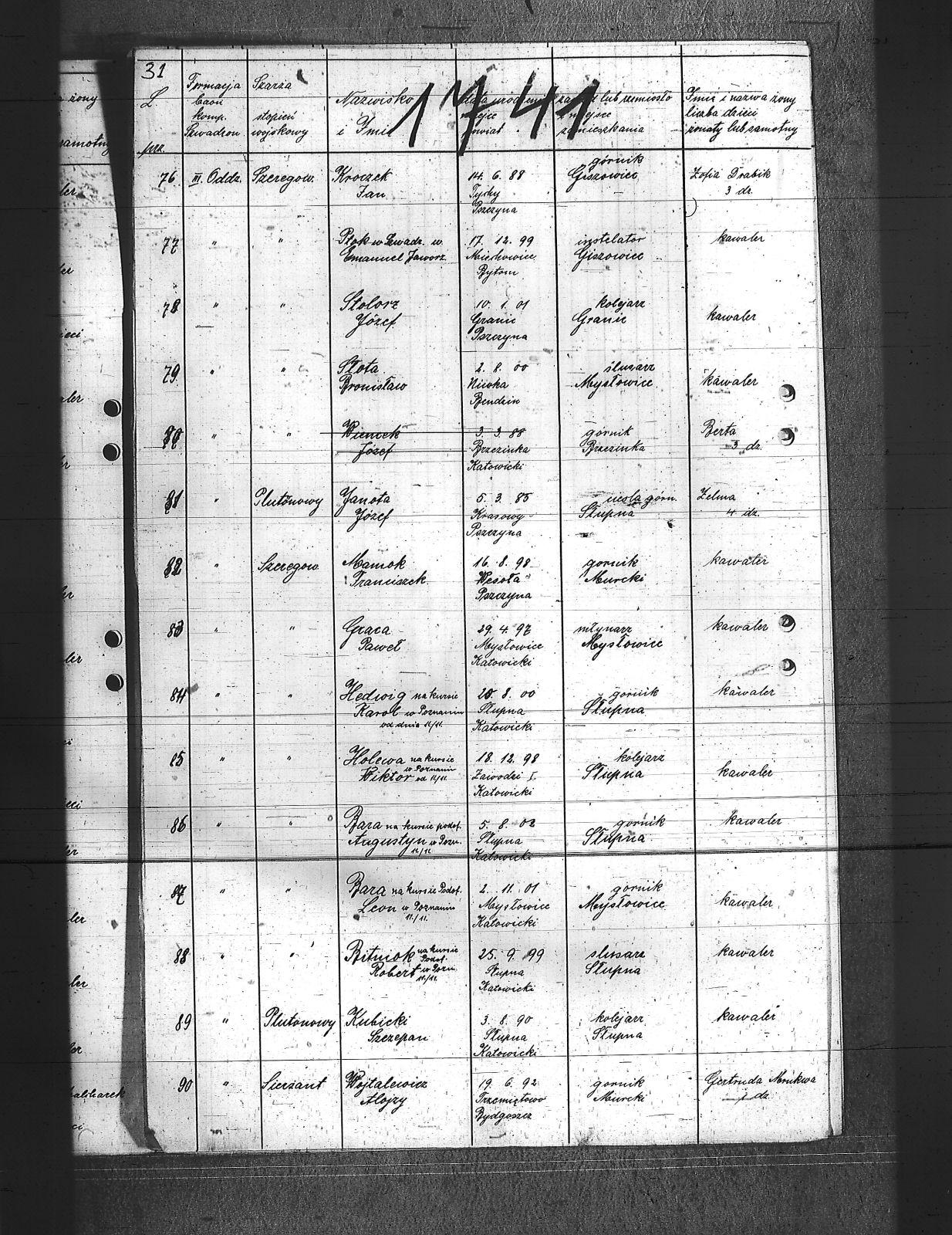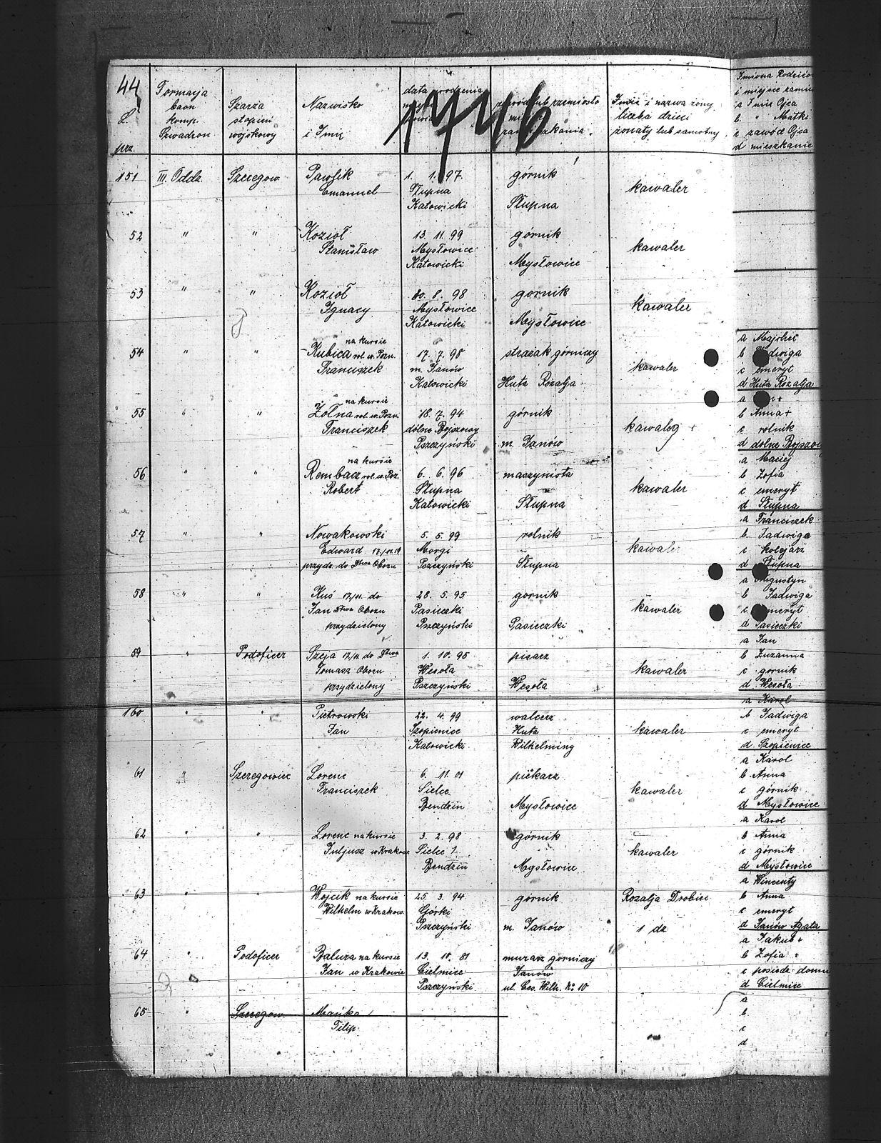 Augustyniak, Jan; Balski, Ryszard; Balura, Jan; Baza, Augustyn; Baza, Jan; Baza, Leon; Ben, Józef; Biecki, Fryderyk; Bielanik, Jan; Bieniek, Józef; Bitner, Augustyn; Bitner, Józef; Bitniok, Augustyn; Bitniok, Paweł; Bitniok, Robert; Bittniok, Piotr; Brzoska, Leopold; Buła, Jan; Cwik, Karol; Danisz, Henryk; Dejas, Stanisław; Dombek, Franciszek; Dreja, Józef; Drobiec, Franciszek; Drobiec, Józef; Durzy, Augustyn; Faska, Franciszek; Fołda, Jan; Fołda, Paweł; Gancorz, Józef; Gniełka, Wilhelm; Goj, Filip; Gołosz, Franciszek; Grabka, Benedykt; Graca, Paweł; Gwóźdź, Augustyn; Habryka, Karol; Habryka, Paweł; Habryka, Stanisław; Habryka, Tomasz; Hajnol, Jerzy; Hassa, Konrad; Hedwig, Jan; Hedwig, Karol; Hetmański, Jakub; Hetmański, Tomasz; Holewa, Wiktor; Hołota, Szczepan; Homańczyk, Karol; Jamrozy, Franciszek; Janko, Emanuel; Janota, Józef; Jelonek, Franciszek; Josz, Emanuel; Karpiczak, Ignacy; Kawa, Franciszek; Kawa, Jan; Kern, Paweł; Kłos, Augustyn; Kocy, Wiktor; Konieczny, Jakub; Konieczny, Karol; Kontny, Tomasz; Kortyczko, Konrad; Kowalski, Augustyn; Kowalski, Franciszek; Kozioł, Ignacy; Kozioł, Jan; Kozioł, Stanisław; Kroczek, Jan; Krumplok, Leon; Krzempek, Józef; Krzykowski, Jan; Krzyżowski, Alfons; Kubica, Franciszek; Kubicki, Szczepan; Kucharski, Antoni; Kurdziej, Teodor; Kuś, Jan; Laby, Józef; Langer, Wincenty; Lasok, Wincenty; Lelonek, Karol; Lorenc, Franciszek; Lorenc, Juliusz; Łaska, Jan; Magdziorz, Aleksy; Mamok, Franciszek; Mańka, Filip; Marszoł, Teodor; Maślarz, Franciszek; Mazur, Augustyn; Mazur, Jan; Mokry, Konrad; Mruczek, Robert; Musialik, Augustyn; Niemczyk, Konrad; Nowakowski, Antoni; Nowakowski, Edward; Nowrotek, Adam; Owczarek, Paweł; Papoń, Edmund; Patałong, Tomasz; Pawlik, Emanuel; Pilorz, Józef; Piotrowski, Jan; Ptok, Emanuel; Pypłacz, Jan; Rembacz, Teodor; Richter, Antoni; Rojek, Augustyn; Rombacz, Robert; Rozkoszny, Jan; Ryszka, Wiktor; Rzepka, Wojciech; Saternus, Bartłomiej; Sieroński, Roman; Sitko, Piotr; Skolik, Bolesław; Słota, Bronisław; Sojka, Franciszek; Sokołowski, Wilhelm; Sorek, Alfons; Spis, Ludwik; Starka, Jan; Stolorz, Augustyn; Stolorz, Jan; Stolorz, Józef; Szary, Franciszek; Szary, Mateusz; Szeja, Antoni; Szeja, Józef; Szeja, Paweł; Szeja, Tomasz; Szejda, Karol; Szwaik, Jan; Szwajnork, Teofil; Szwejcok, Karol; Ślachcic, Karol; Śliwa, Piotr; Toborek, Antoni; Tomala, Leopold; Tuszyński, Bernard; Tuszyński, Józef; Urbanek, Jan; Urbanek, Karol; Wała, Bernard; Wandziura, Józef; Winiarski, Teofil; Wocka, Jerzy; Wocka, Wilhelm; Wojtalewicz, Alojzy; Wojtalewicz, Jan; Wola, Jan; Wójcik, Wilhelm; Wrobel, Franciszek; Wrona, Franciszek; Wrona, Ludwik; Wyleżoł, Karol; Zacki, Jan; Zajonc, Karol; Żelazny, Antoni; Żok, Jan; Żołna, Franciszek; |