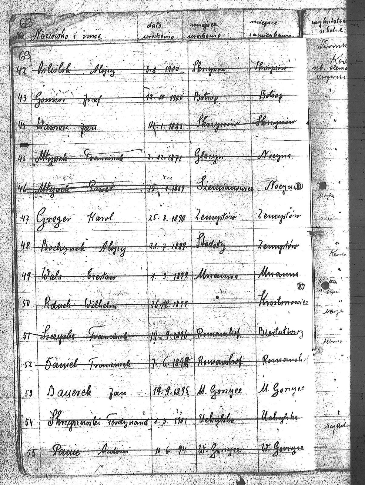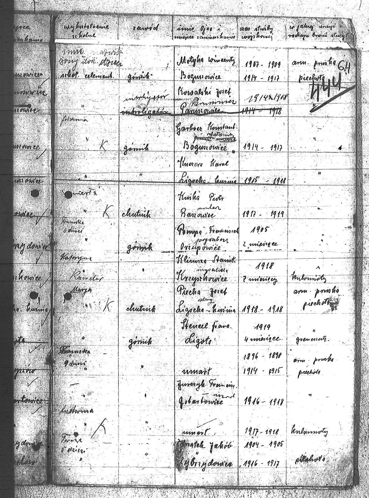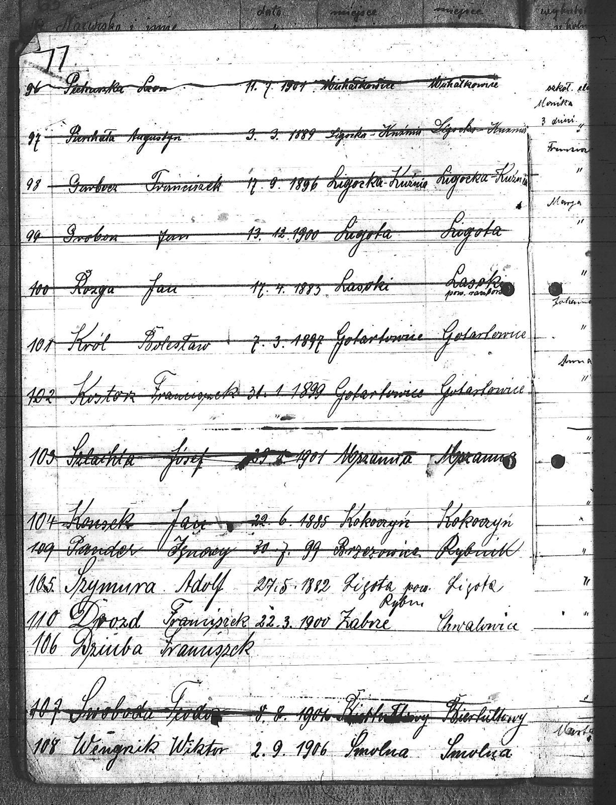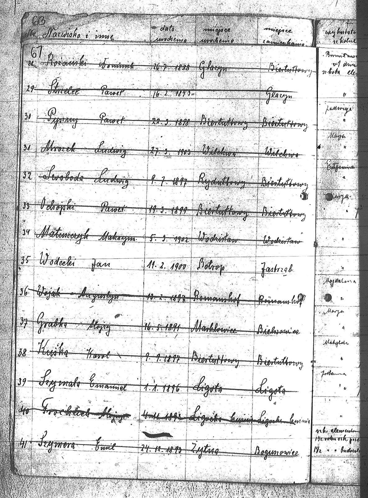 Bauerek, Jan; Białecki, Józef; Bytomski, Paweł; Czarniecki, Wincenty; Drozd, Franciszek; Dziuba, Franciszek; Garbocz, Fryderyk; Garbocz, Wilhelm; Greger, Karol; Gruszka, Henryk; Klinisza, Antoni; Kowalski, Edward; Kucharczyk, Alojzy; Kucharczyk, Ludwig; Marek, Alojzy; Matera, Ludwig; Motyka, Wilhelm; Motyka, Wincenty; Mura, Wilhelm; Piecha, Antoni; Piecha, Ignacy; Rduch, Teodor; Smułka, Józef; Spander, Paweł; Szczepański, Florian; Szlachter, Ludwig; Szymura, Adolf; Wala, Stanisław; Wengnik, Wiktor; Werber, Augustyn; Wodecki, Jan; |
