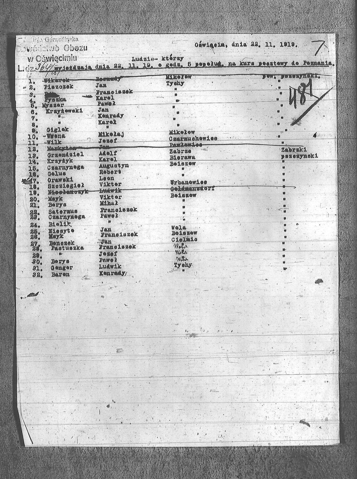 | Tytuł teczki | Lista zwolnionych lub komenderowanych obozu Oświęcim |