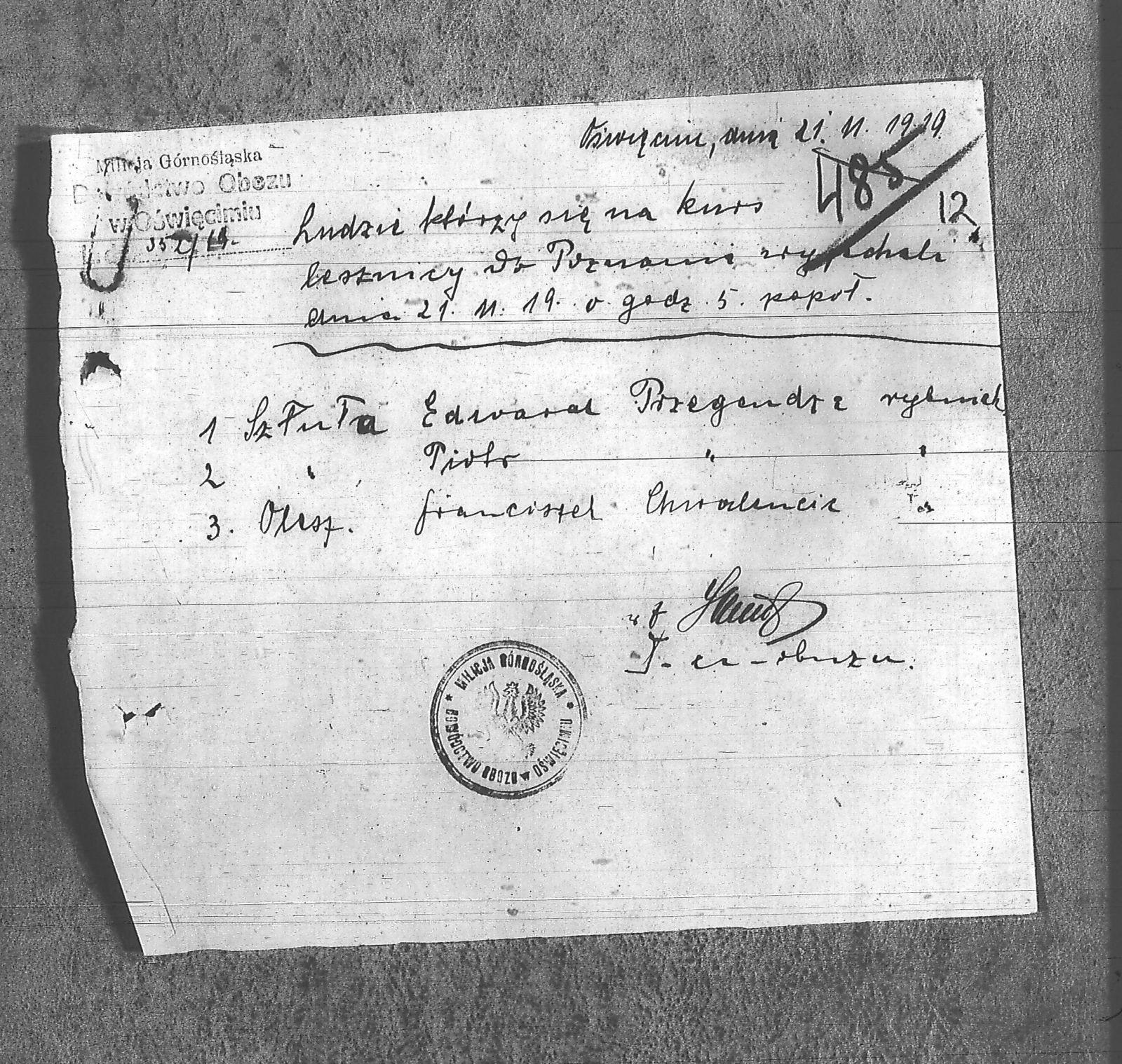 | Tytuł teczki | Lista zwolnionych lub komenderowanych obozu Oświęcim |