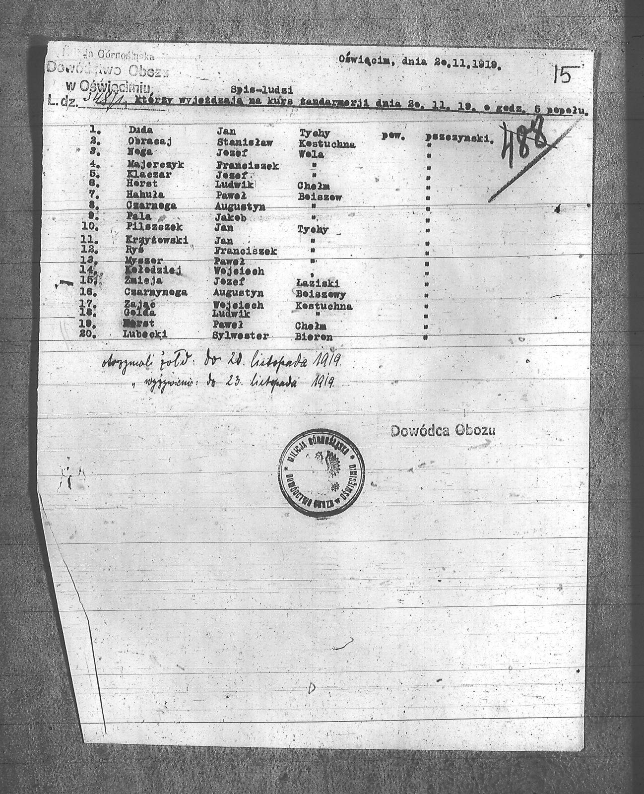 | Tytuł | Spis ludzi, którzy wyjeżdżają na kurs żandarmerii |