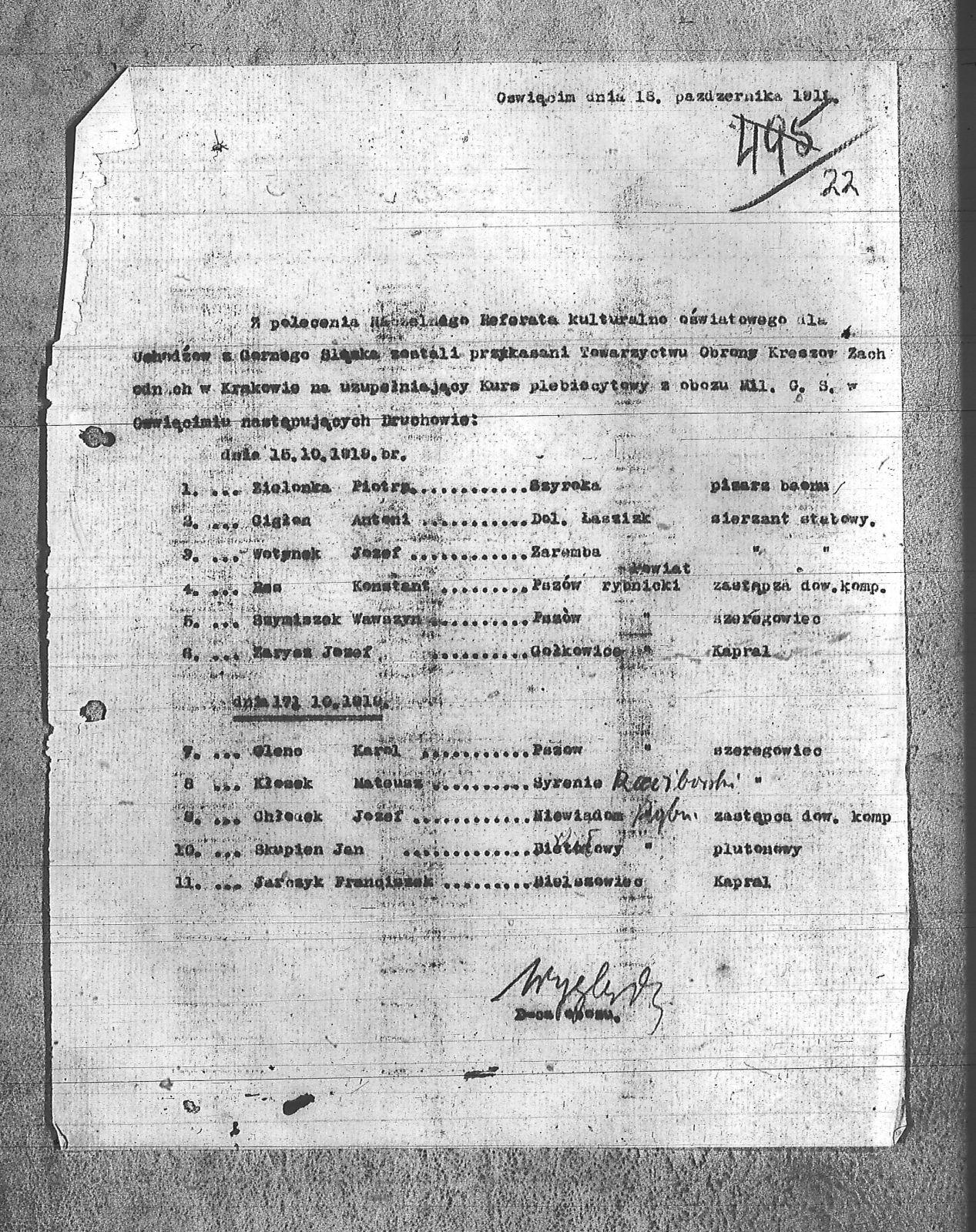 | Osoby | Chłonek, Józef; Cigłon, Antoni; Glenc, Karol; Jarczyk, Franciszek; Kłosek, Mateusz; Skupień, Jan; Szymiszek, Wawrzyn; Wotynek, Józef; Zarysz, Józef; Zas, Konstanty; Zielonka, Piotr; |