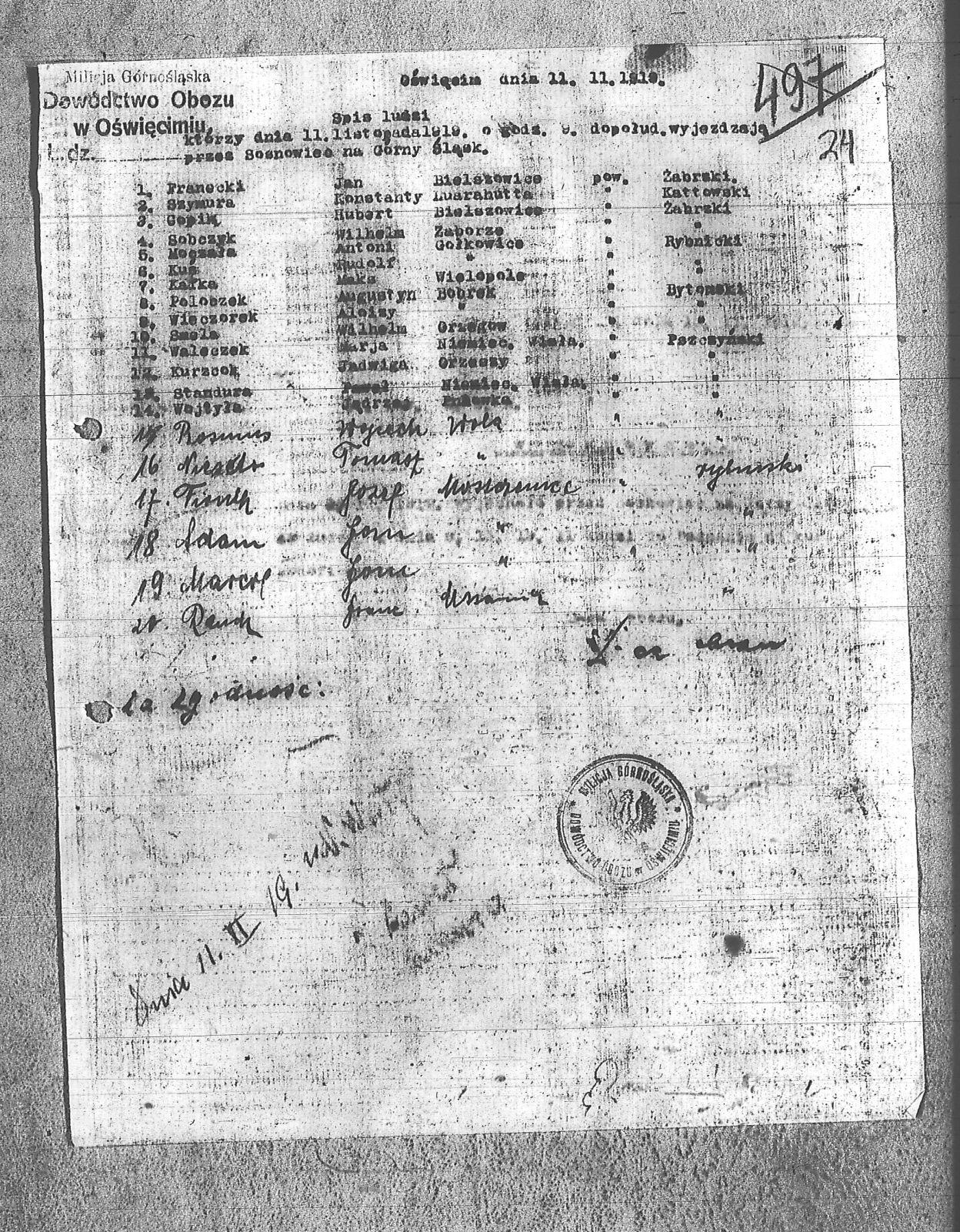| Tytuł teczki | Lista zwolnionych lub komenderowanych obozu Oświęcim |